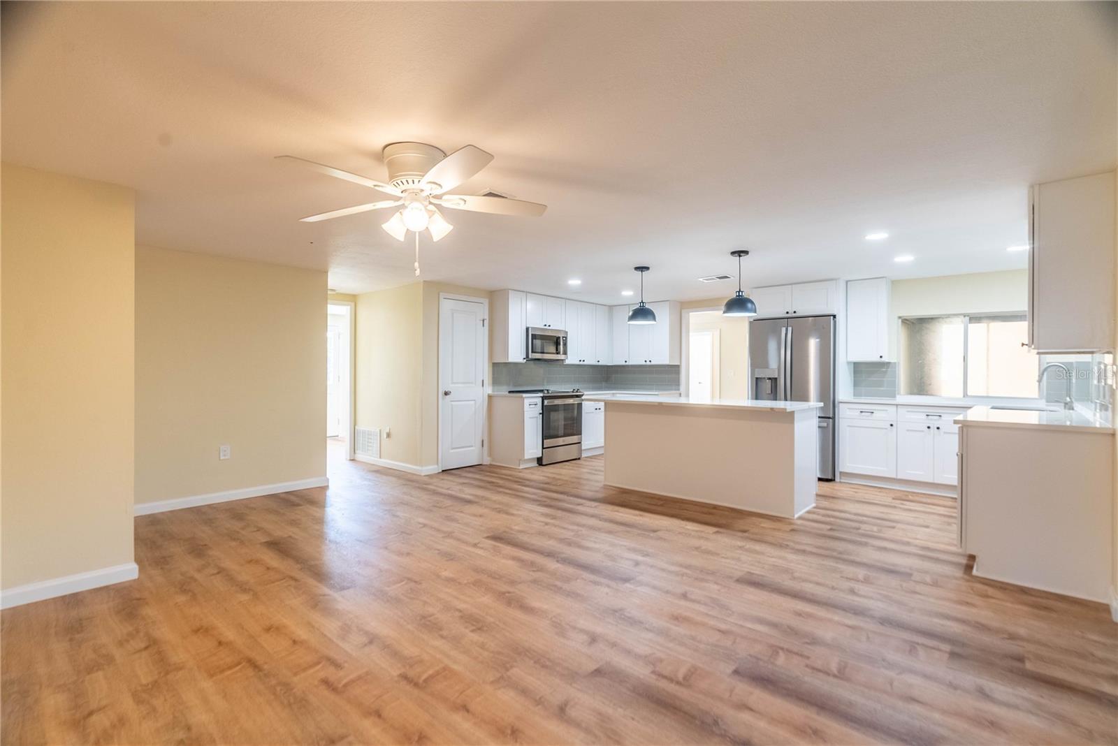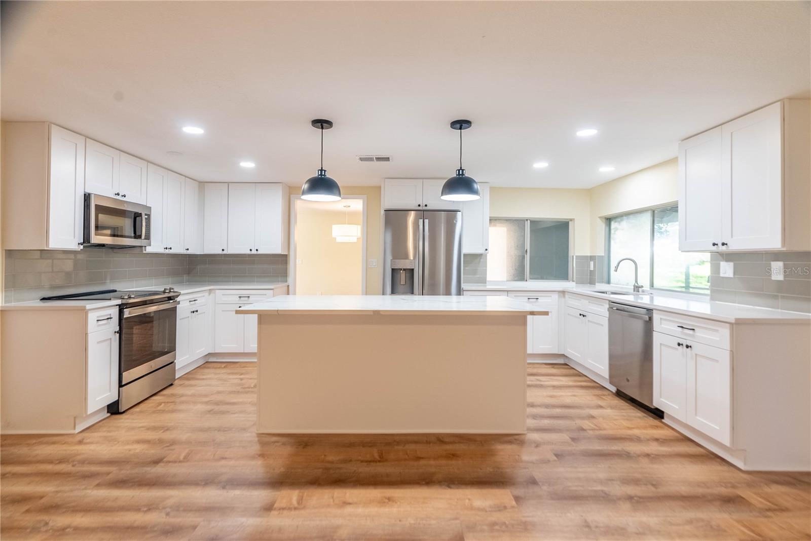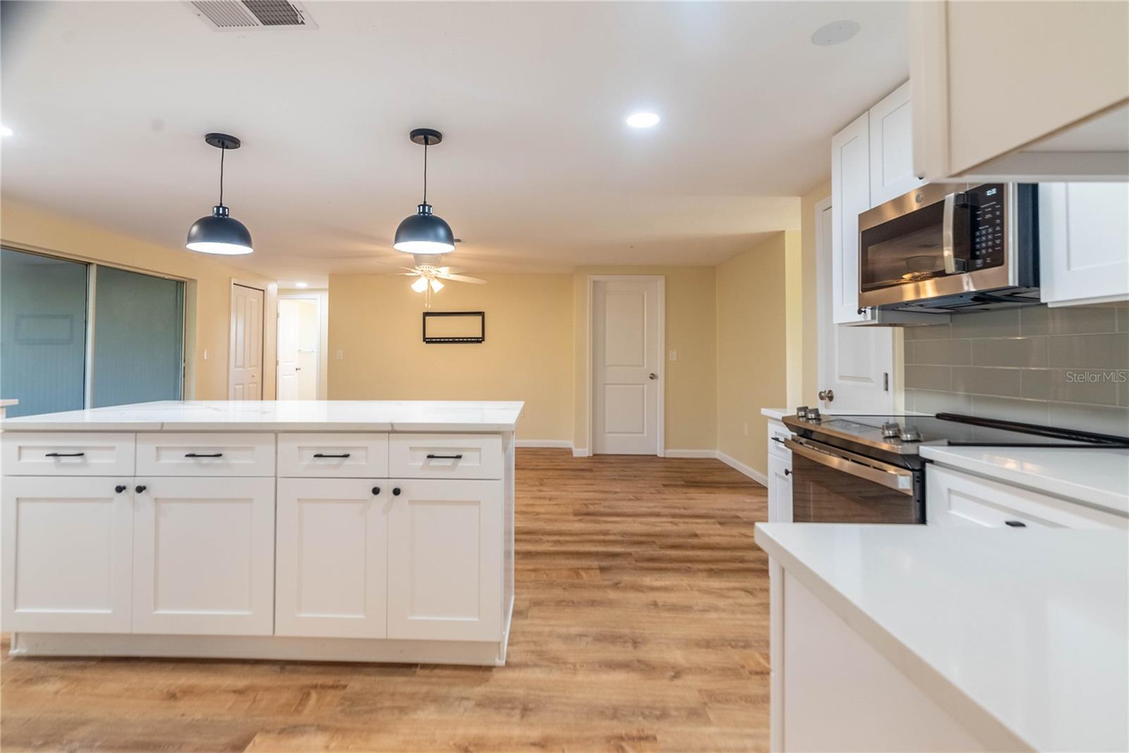 Step into this completely updated 4-bedroom, 3-bathroom gem nestled in the desirable Beacon Woods community. This home boasts a bright, open-concept layout perfect for both everyday living and entertaining. The stunning kitchen features brand-new stainless steel appliances, solid wood cabinetry, and sleek quartz countertops. From the kitchen, sliding glass doors lead you out to a screened-in lanai, offering a peaceful retreat surrounded by mature trees. The spacious primary suite includes a fully renovated ensuite bath and a walk-in closet. Three additional bedrooms are generously sized and share two updated full bathrooms. A new roof was installed in 2022, giving you peace of mind for years to come. New hurricane windows will be installed in all 4 bedrooms and a new front door is also being installed. Additional features include an attached two-car garage and a convenient laundry room. Located in a golf course community, residents enjoy access to a clubhouse, pool, tennis and basketball courts, shuffleboard, and more—plenty of options to stay active and social!