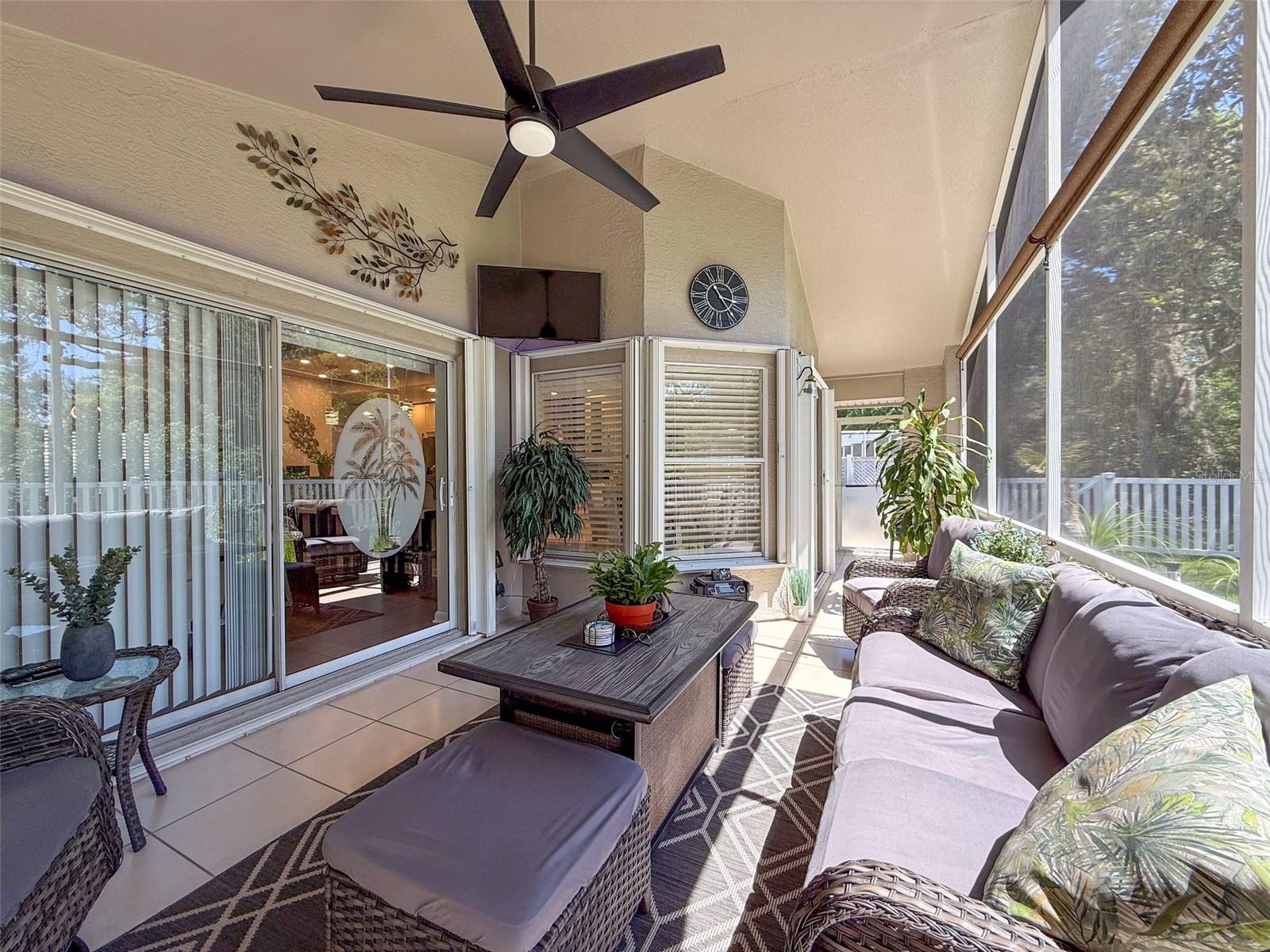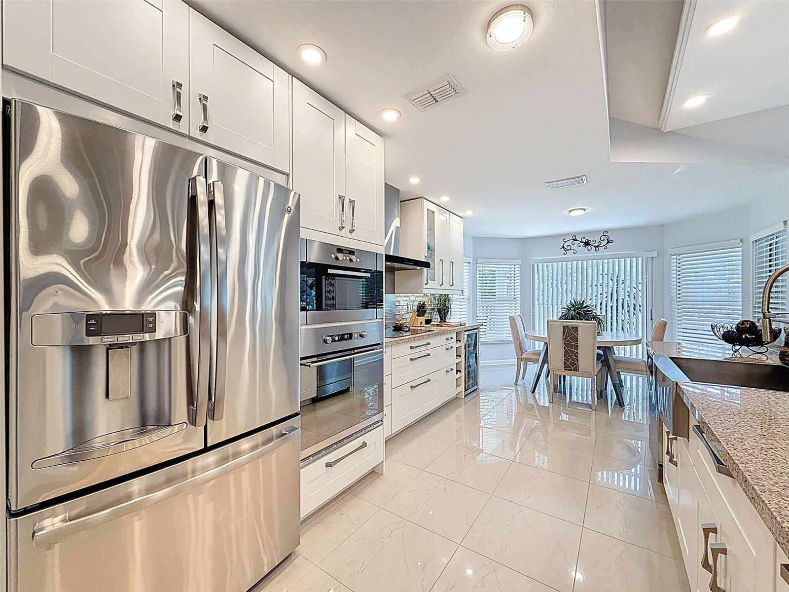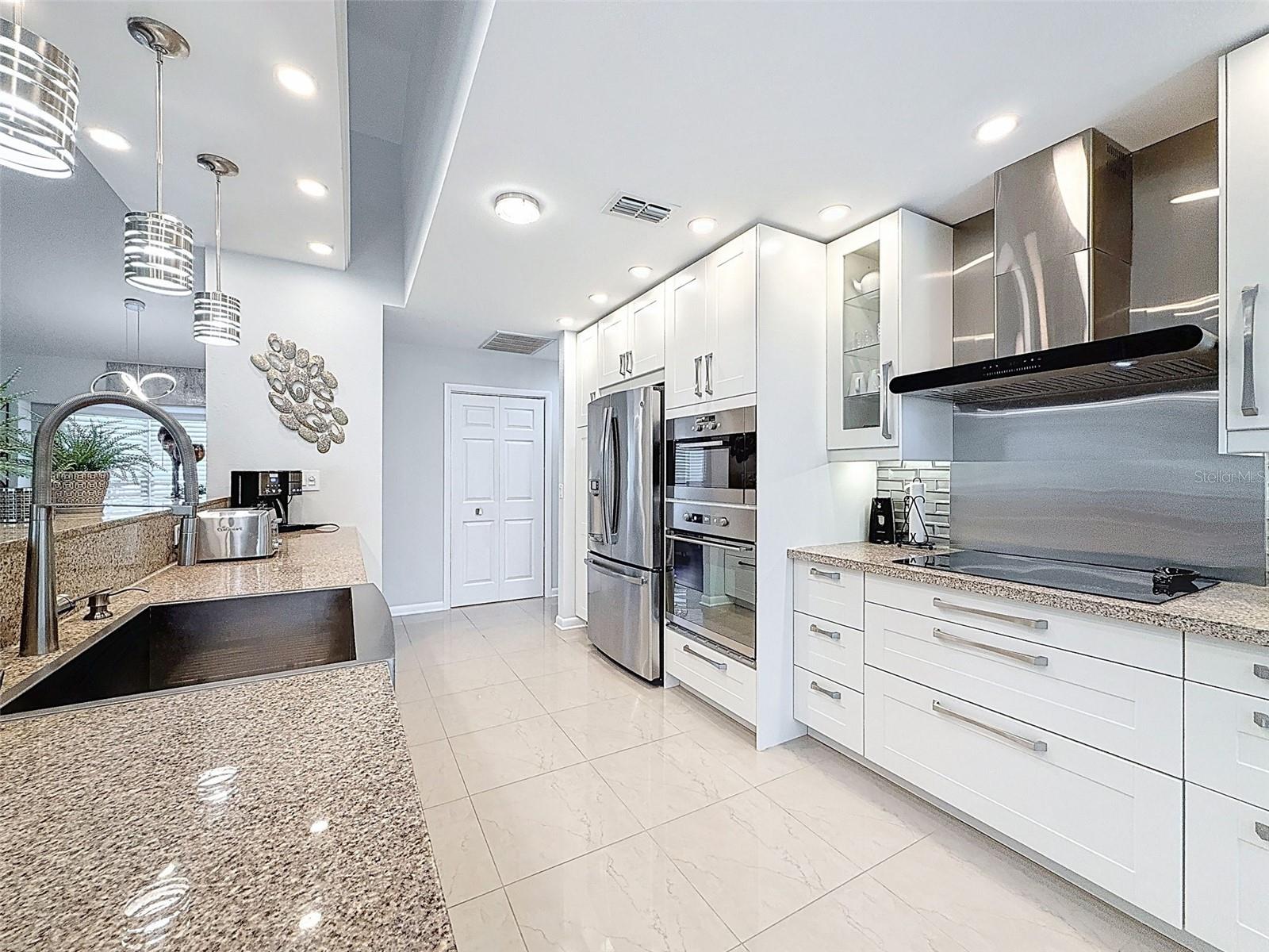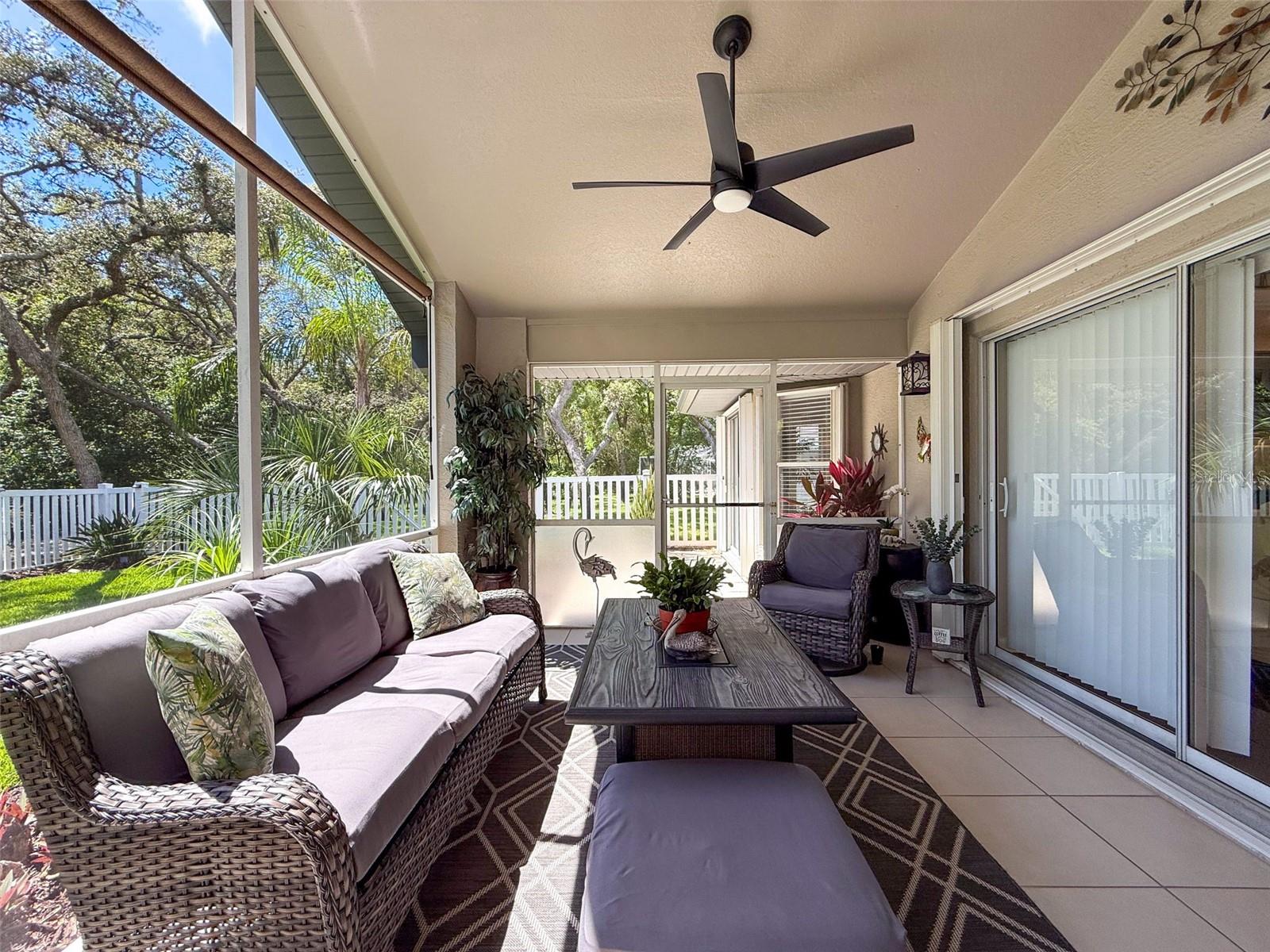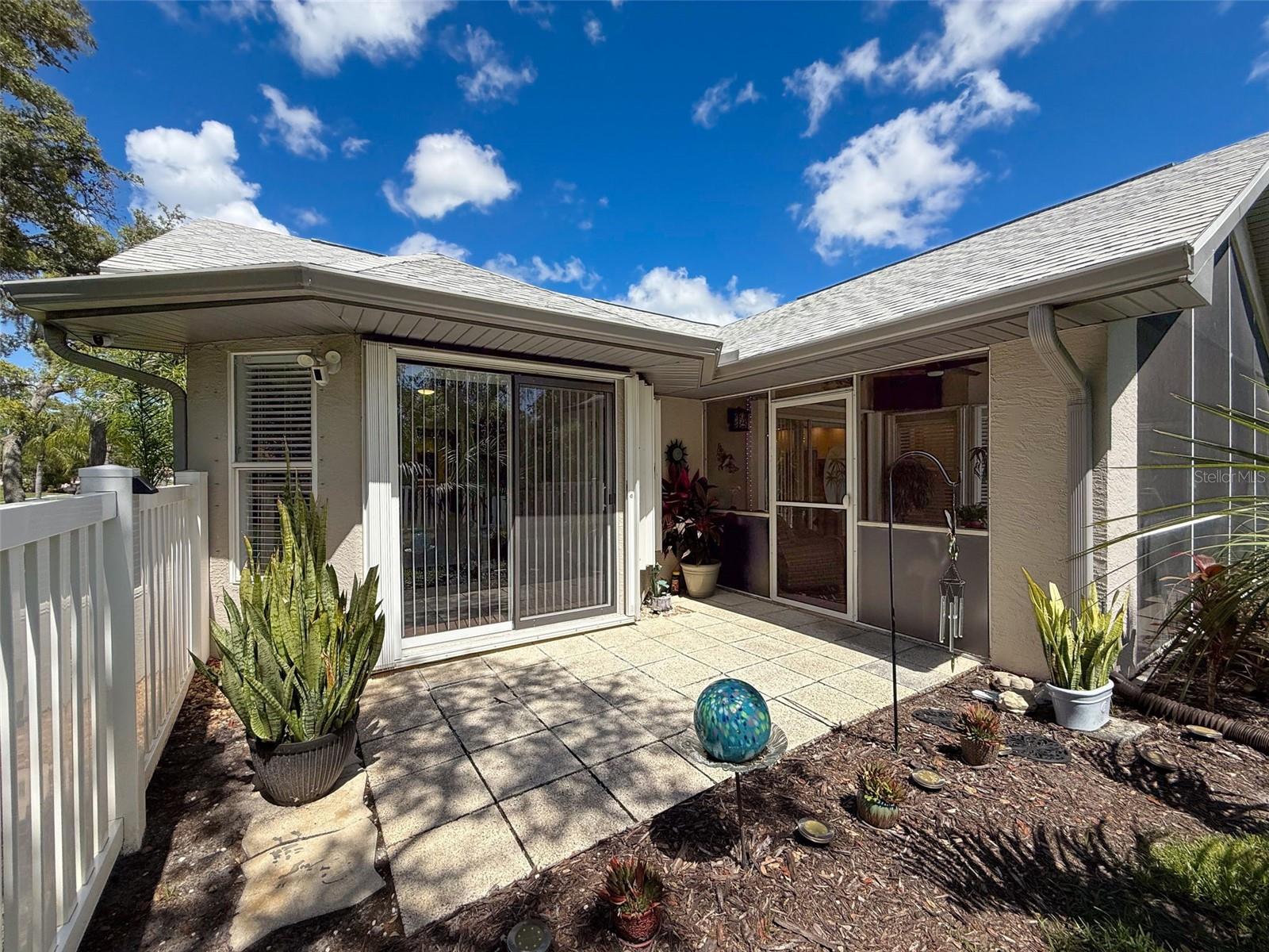 As you enter this lovely home you see Pride of Ownership. Freshly painted inside, this home has been upgraded from top to bottom. Open floor plan with a breakfast bar, eat-in kitchen with white designer shaker cabinets, soft close doors and drawers. Let's not forget the refrigerated wine cooler and separate wine rack, built in oven and microwave, induction cook top. Complete kitchen with granite countertops. Great Room has built-in shelves designed for your TV and flat glass electric fireplace. Both baths have granite or designer tile countertops and jetted tubs in both baths with tiled step in shower in the master ensuite. Home was designed on a split plan, Primary on one side of the house and 2 bedrooms on the opposite side. Engineered hardwood floors in main living areas and lighter porcelain tiled floors in kitchen and baths. All the rear rooms view the screened lanai, 2 side patios and the oversized private, peaceful, fenced backyard. All doors and windows have hurricane shutters. Low HOA dues provide a beautiful clubhouse, fitness center, pool and ping pong tables, pool, pickleball, basketball, tennis courts, bocci and shuffleboard. Located 45 minutes from Tampa International Airport, 2 miles to the Gulf of America. Pack your fishing rod and kayaks, don't forget the golf clubs to play on the abundant number of public courses nearby.