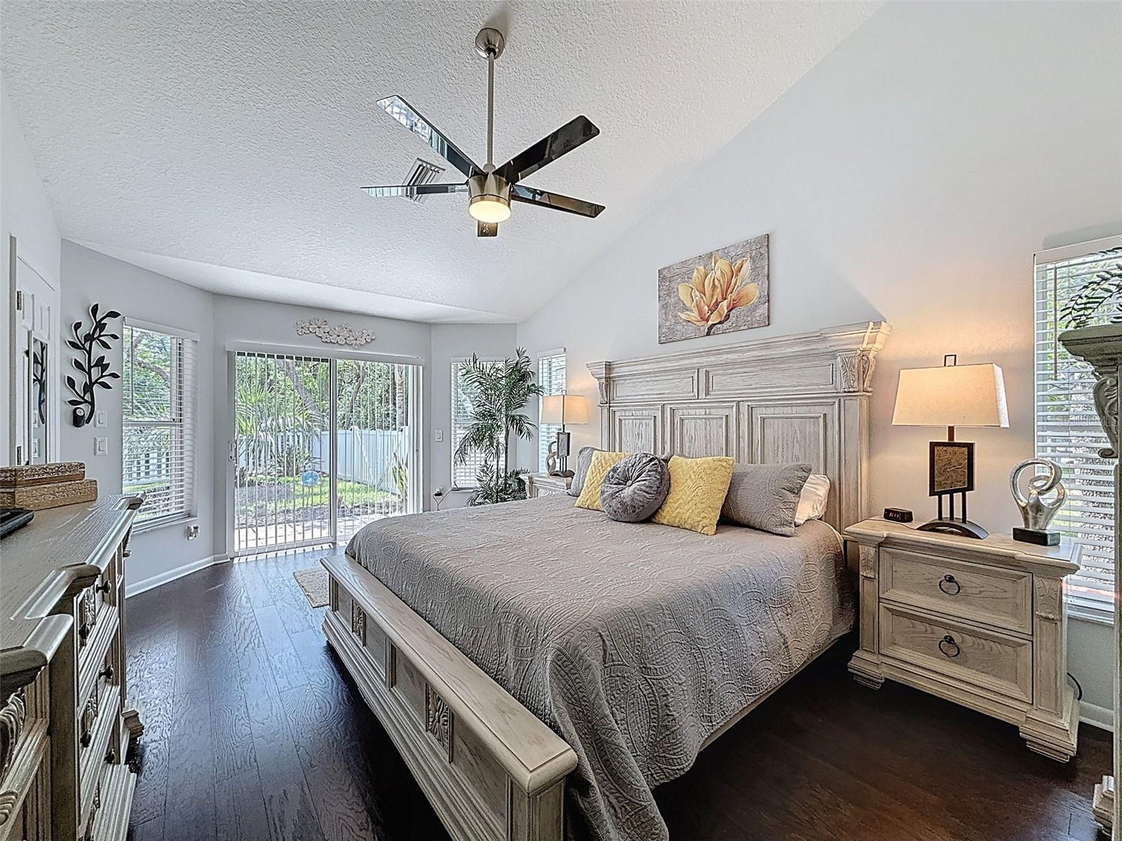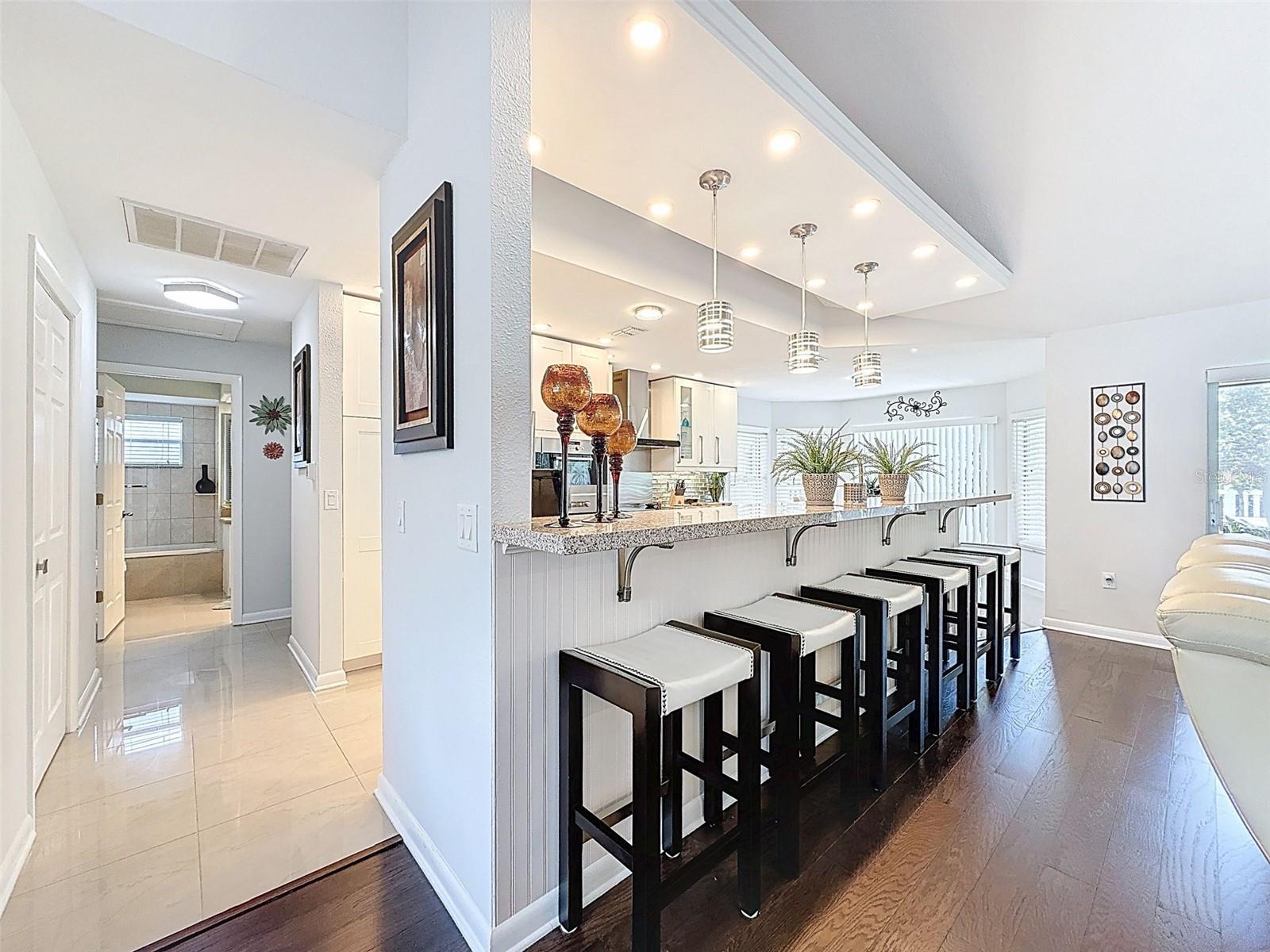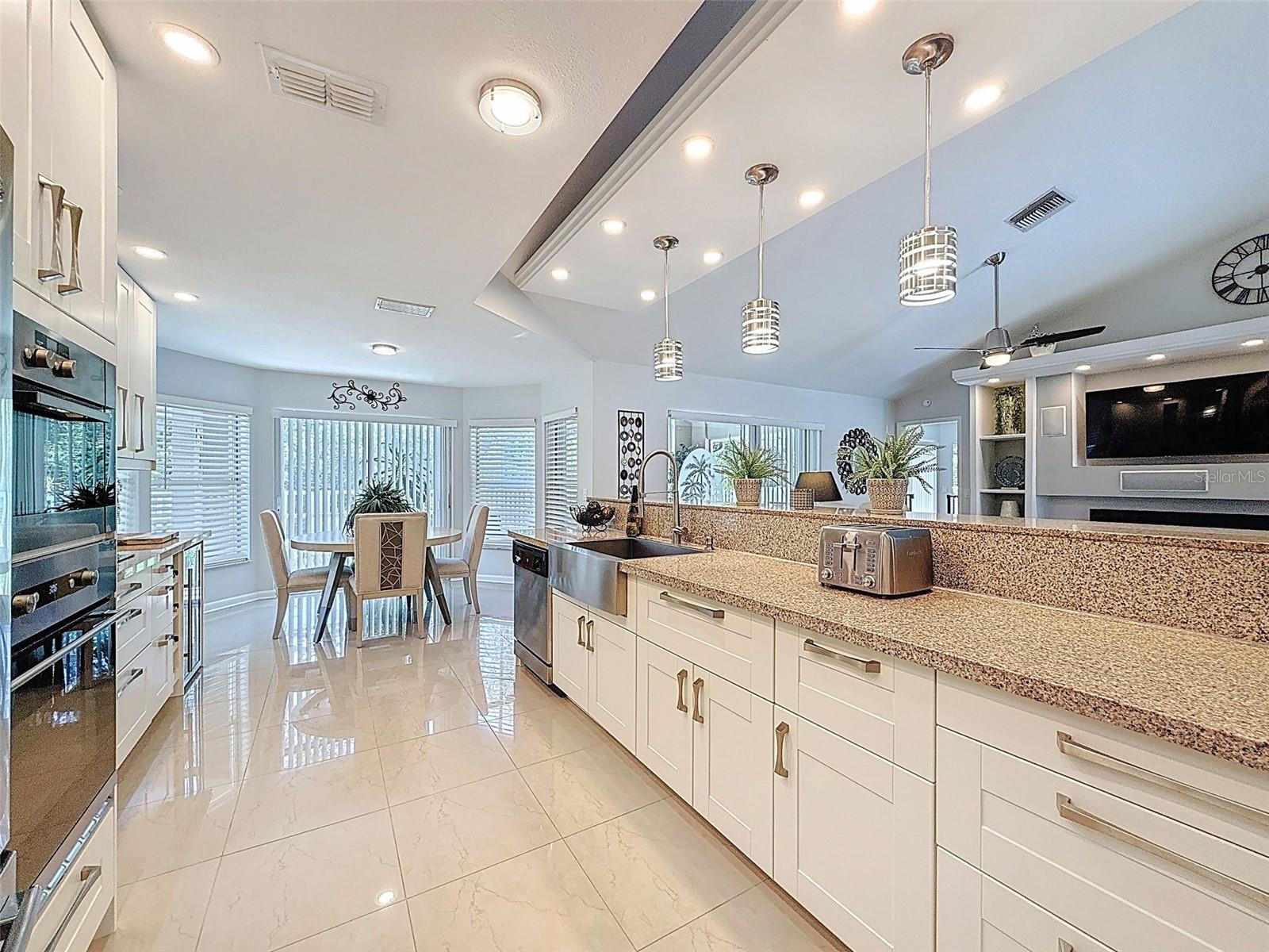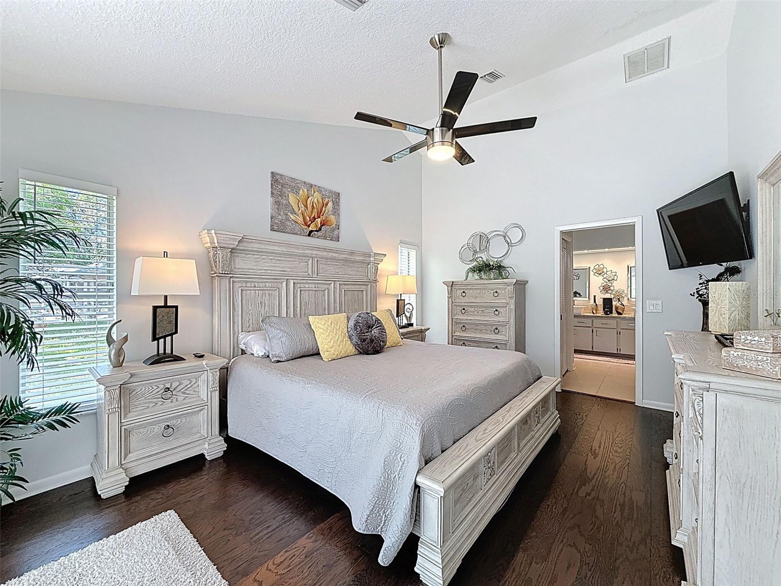 As you enter this lovely home you see Pride of Ownership. Freshly painted inside, this home has been upgraded from top to bottom. Open floor plan with a breakfast bar, eat-in kitchen with white designer shaker cabinets, soft close doors and drawers. Let's not forget the refrigerated wine cooler and separate wine rack, built in oven and microwave, induction cook top. Complete kitchen with granite countertops. Great Room has built-in shelves designed for your TV and flat glass electric fireplace. Both baths have granite or designer tile countertops and jetted tubs in both baths with tiled step in shower in the master ensuite. Home was designed on a split plan, Primary on one side of the house and 2 bedrooms on the opposite side. Engineered hardwood floors in main living areas and lighter porcelain tiled floors in kitchen and baths. All the rear rooms view the screened lanai, 2 side patios and the oversized private, peaceful, fenced backyard. All doors and windows have hurricane shutters. Low HOA dues provide a beautiful clubhouse, fitness center, pool and ping pong tables, pool, pickleball, basketball, tennis courts, bocci and shuffleboard. Located 45 minutes from Tampa International Airport, 2 miles to the Gulf of America. Pack your fishing rod and kayaks, don't forget the golf clubs to play on the abundant number of public courses nearby.