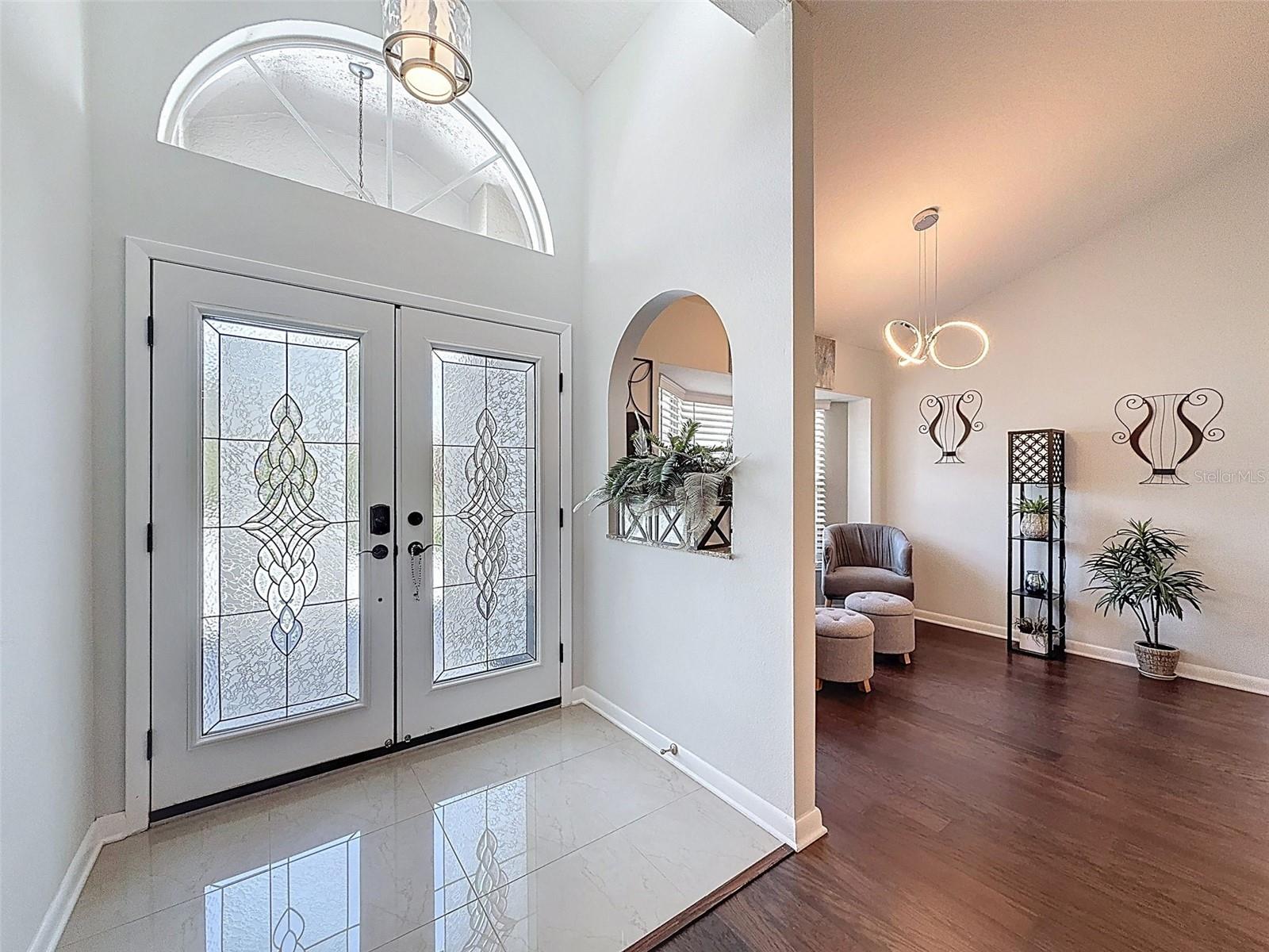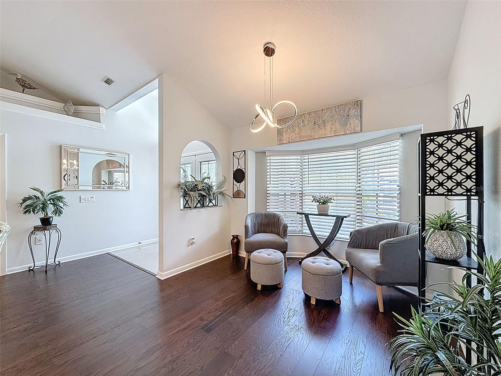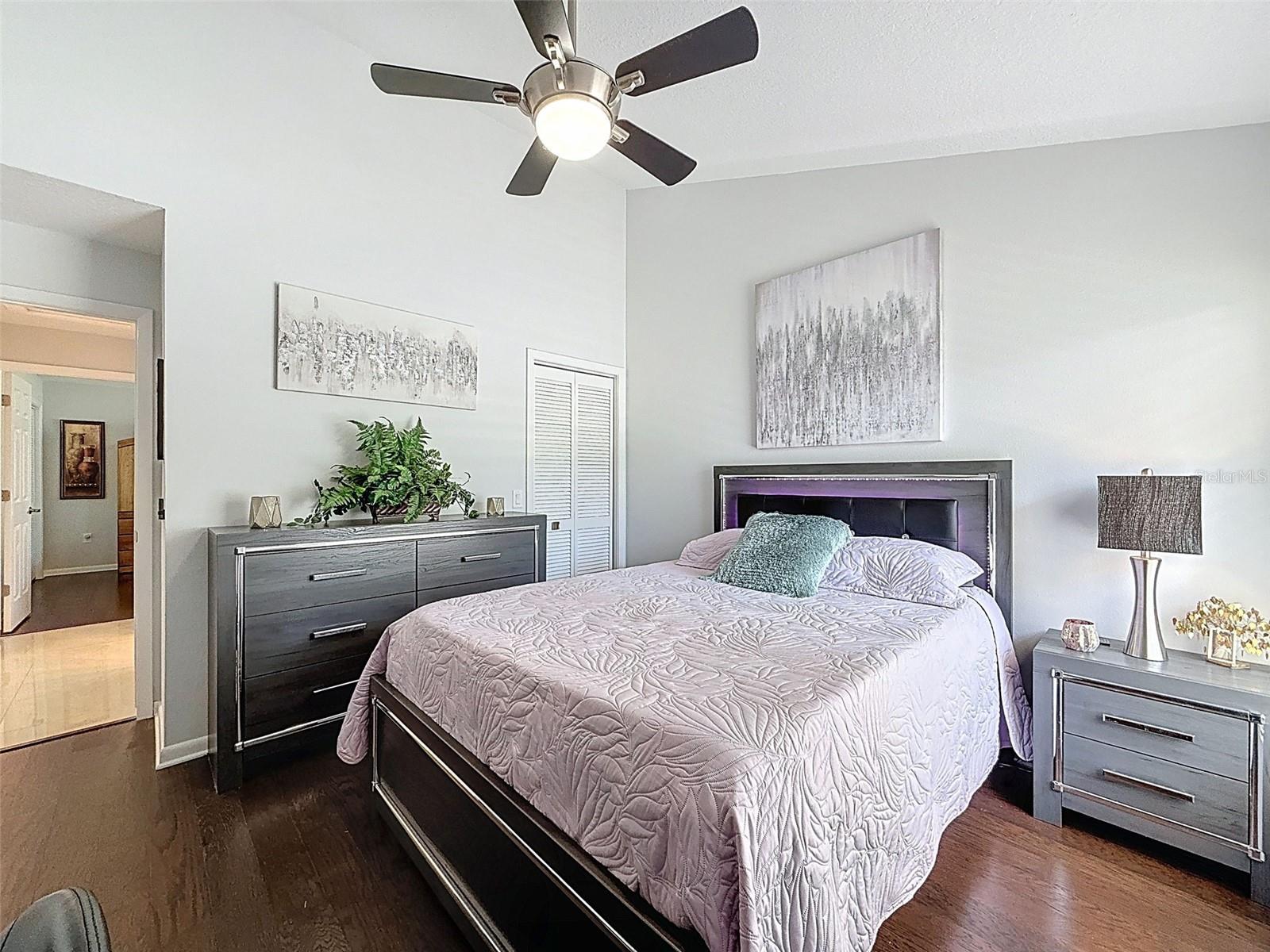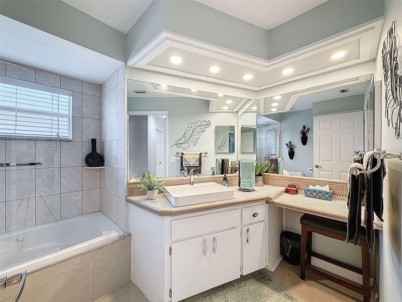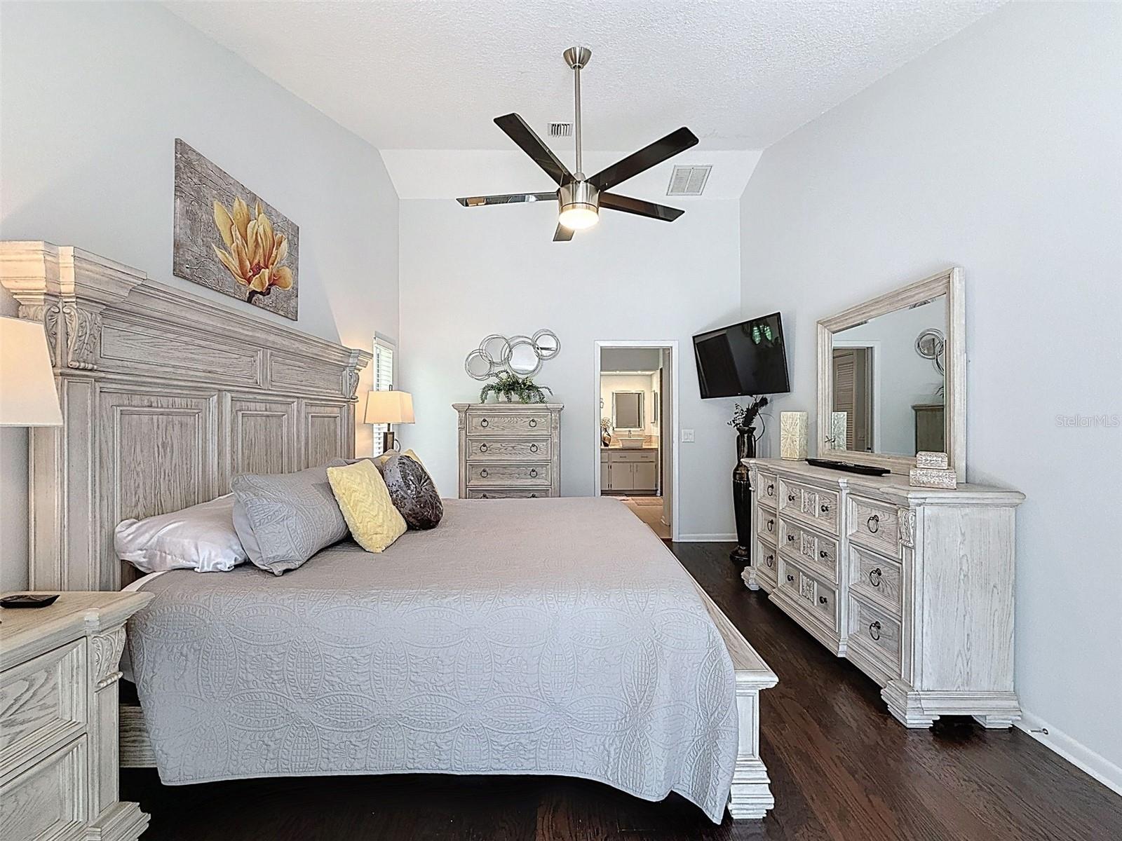 As you enter this lovely home you see Pride of Ownership. Freshly painted inside, this home has been upgraded from top to bottom. Open floor plan with a breakfast bar, eat-in kitchen with white designer shaker cabinets, soft close doors and drawers. Let's not forget the refrigerated wine cooler and separate wine rack, built in oven and microwave, induction cook top. Complete kitchen with granite countertops. Great Room has built-in shelves designed for your TV and flat glass electric fireplace. Both baths have granite or designer tile countertops and jetted tubs in both baths with tiled step in shower in the master ensuite. Home was designed on a split plan, Primary on one side of the house and 2 bedrooms on the opposite side. Engineered hardwood floors in main living areas and lighter porcelain tiled floors in kitchen and baths. All the rear rooms view the screened lanai, 2 side patios and the oversized private, peaceful, fenced backyard. All doors and windows have hurricane shutters. Low HOA dues provide a beautiful clubhouse, fitness center, pool and ping pong tables, pool, pickleball, basketball, tennis courts, bocci and shuffleboard. Located 45 minutes from Tampa International Airport, 2 miles to the Gulf of America. Pack your fishing rod and kayaks, don't forget the golf clubs to play on the abundant number of public courses nearby.