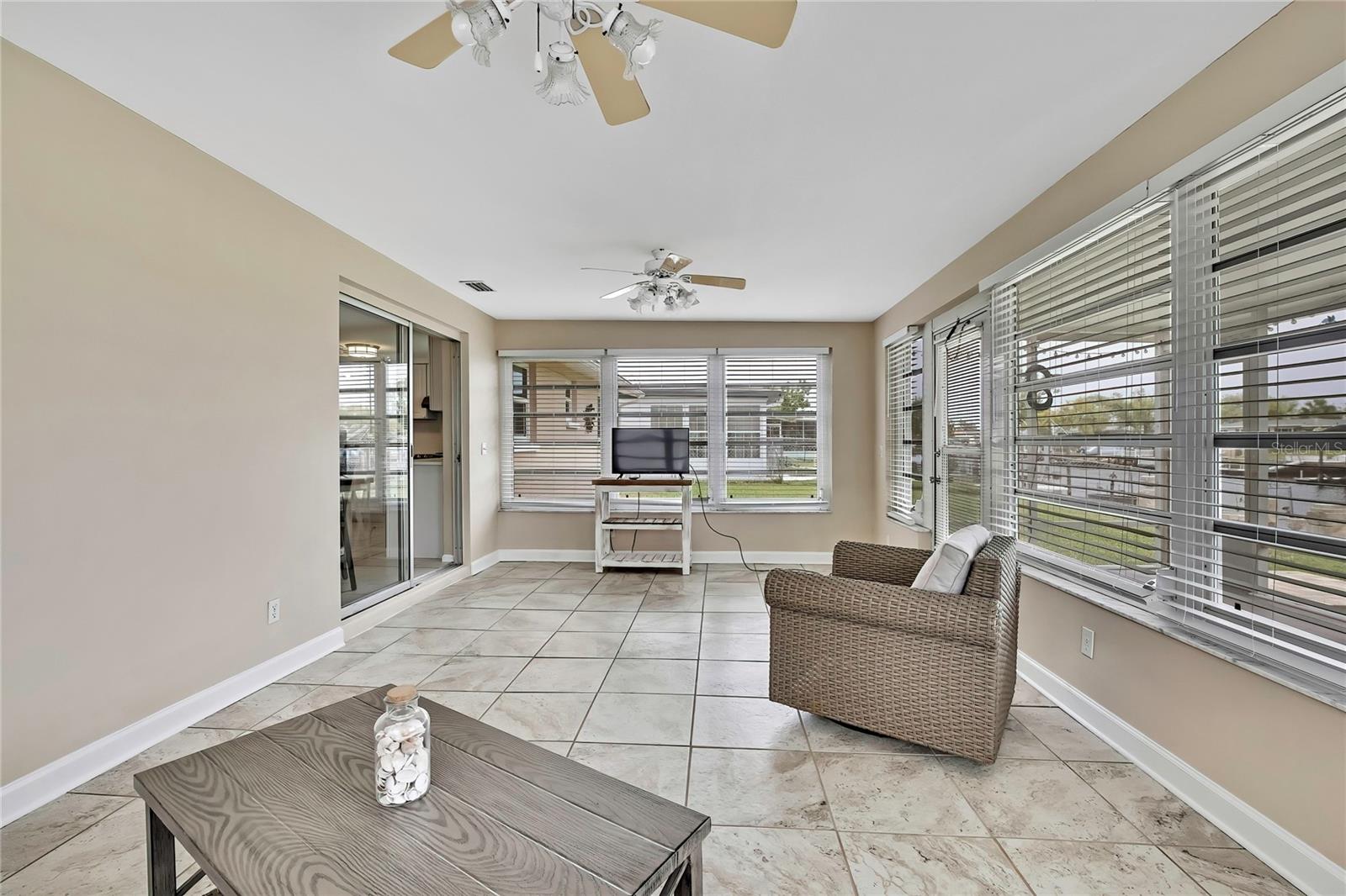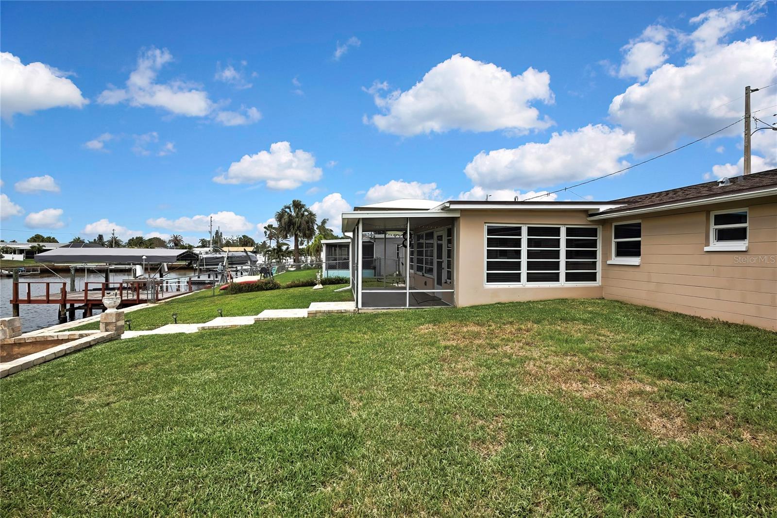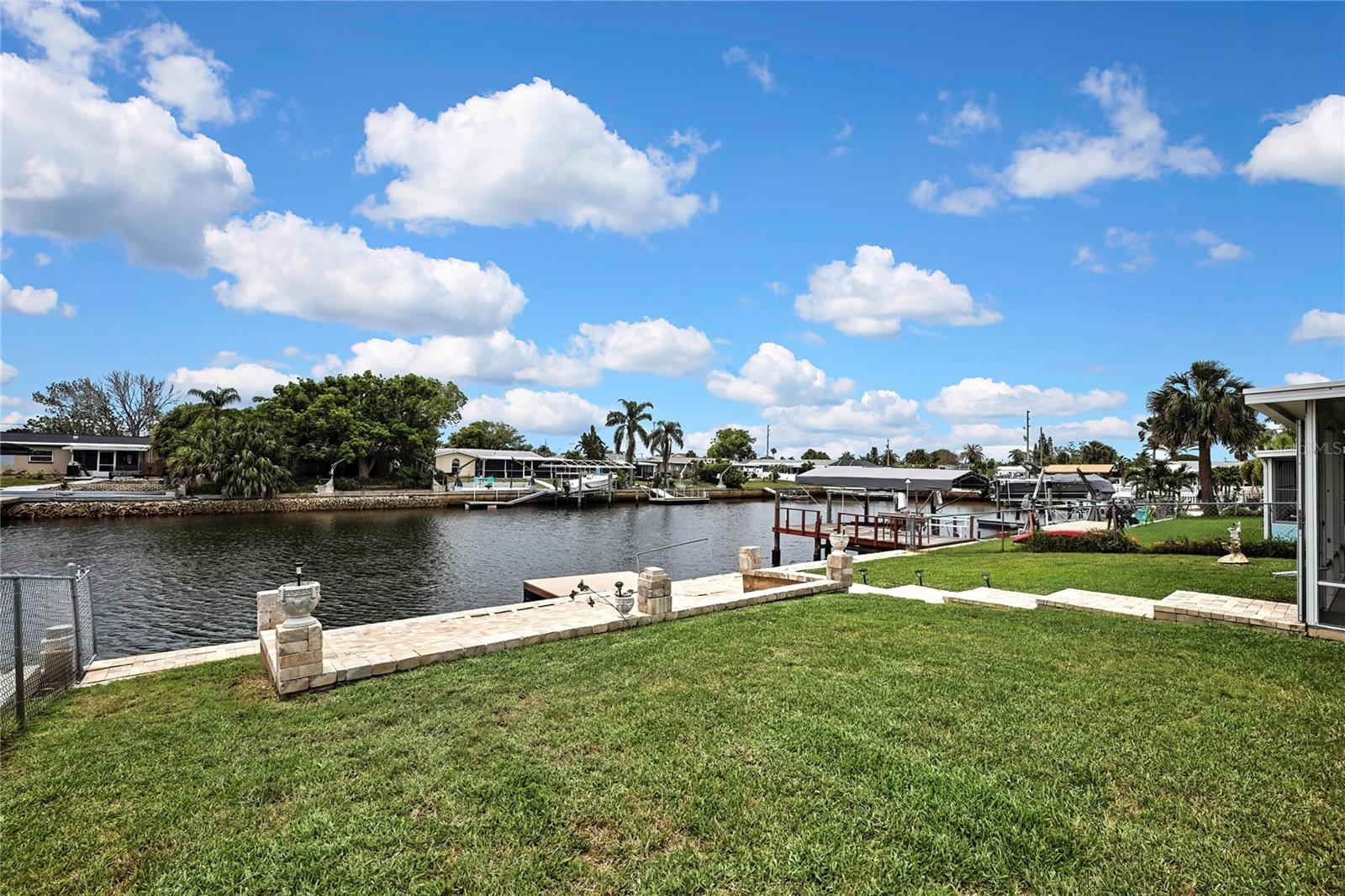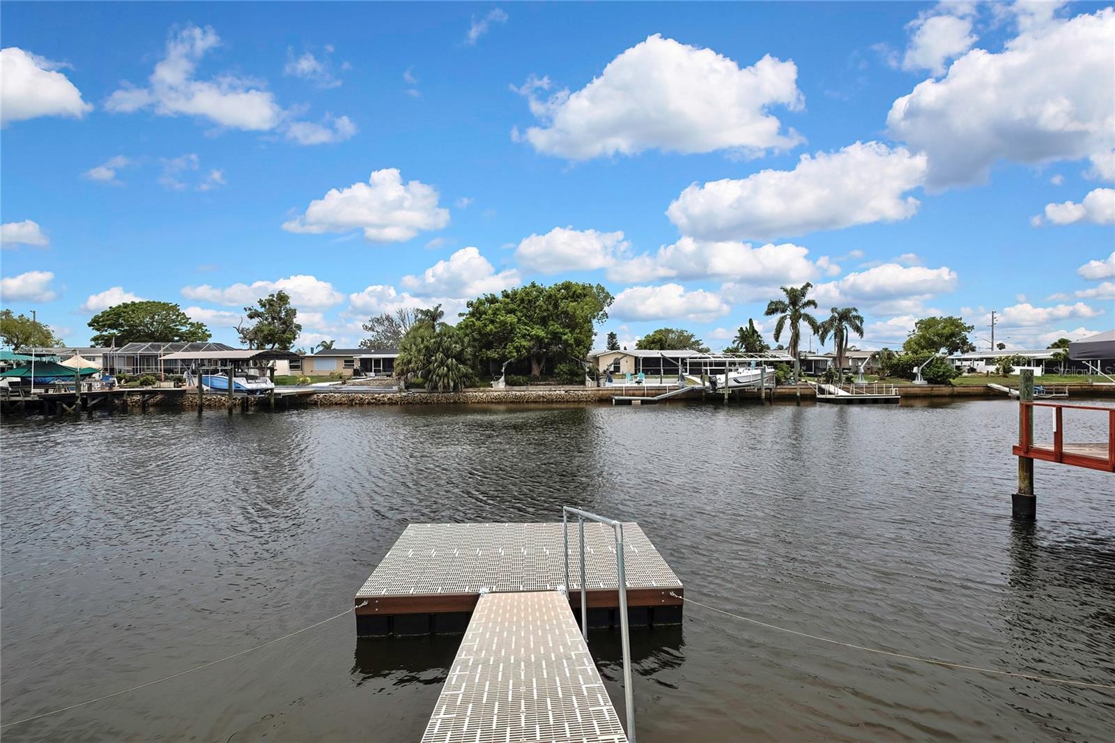 This home did NOT receive any damage during the recent storms! This Immaculate Waterfront Beauty is ready for it's new owners! From the moment you walk in the door, you will feel at home. This home has an open floor plan with plenty of natural light beaming through the updated (2020) Impact windows (main part of home). The neutral tones throughout the home will make this gem easy to decorate. The updated kitchen has white cabinets with sparkling Quartz countertops and Stainless Steel Appliances, including a beverage fridge and even a Coffee Bar! The main feature of this home is the location! As you exit the rear sliders and enter the expansive enclosed lanai, the Waterfront view is breathtaking. There is also a covered screened porch as you exit the enclosed lanai to enjoy the warm Florida weather and watch the evening sunsets. There is 60' of seawall and a floating dock. Untie the boat and head out to the gulf to hit some of those amazing fishing spots or just take the jet skis out for a spin. This home has many updates including but not limited to: Newer Roof (2020) with 3rd Nail added for insurance discount, some updated Electrical (2025), AC Unit (2022), Storm Door, Garage Service Door, Interior Doors, Hot Water Tank, Blinds, Toilet, Vanity, Medicine Cabinet, Partial Flooring, Pavers, etc. The list is too lengthy to mention but one thing is for sure, you will not regret scheduling a private viewing and submitting your offer on this stunning home with meticulous attention to detail!