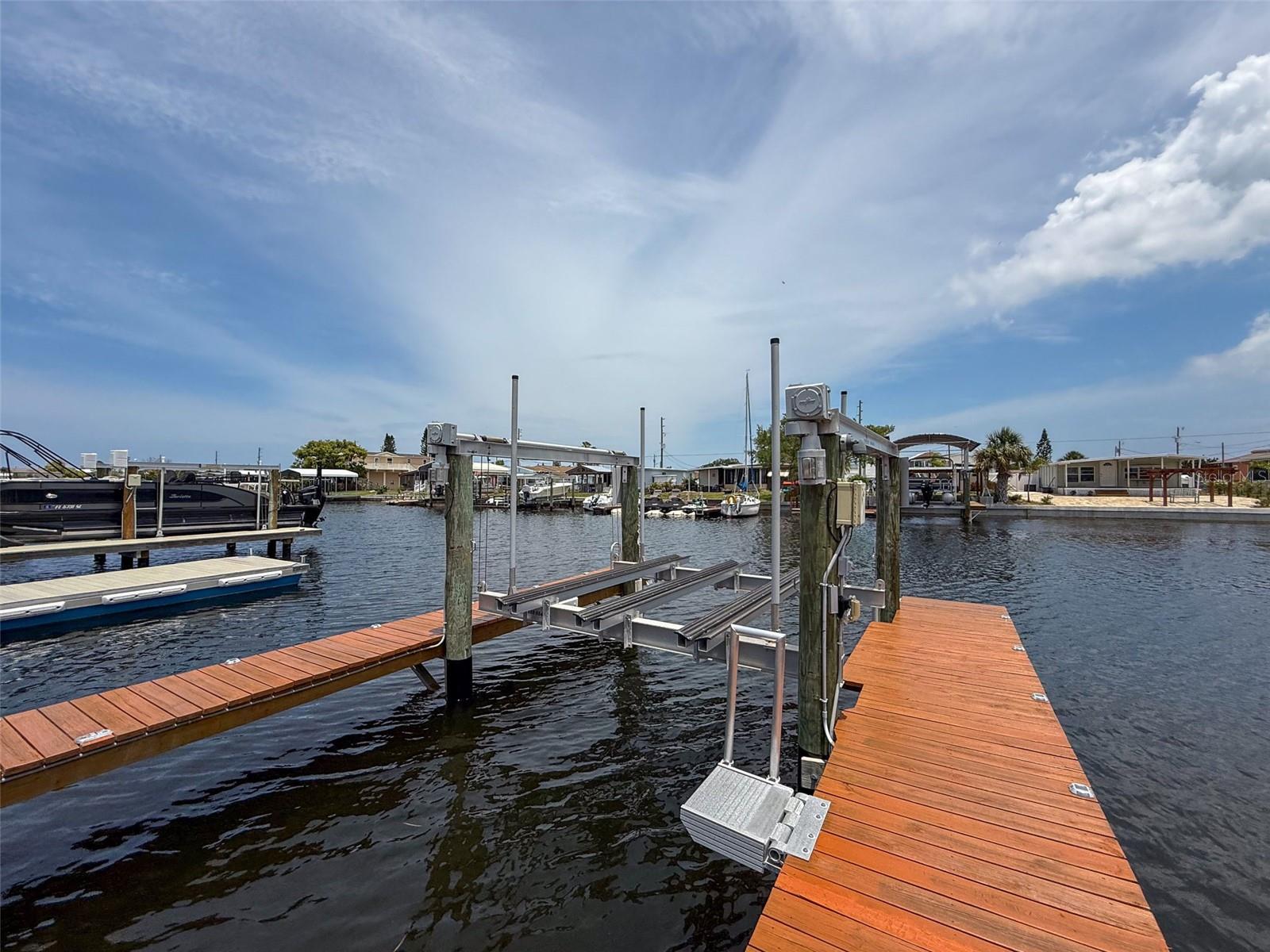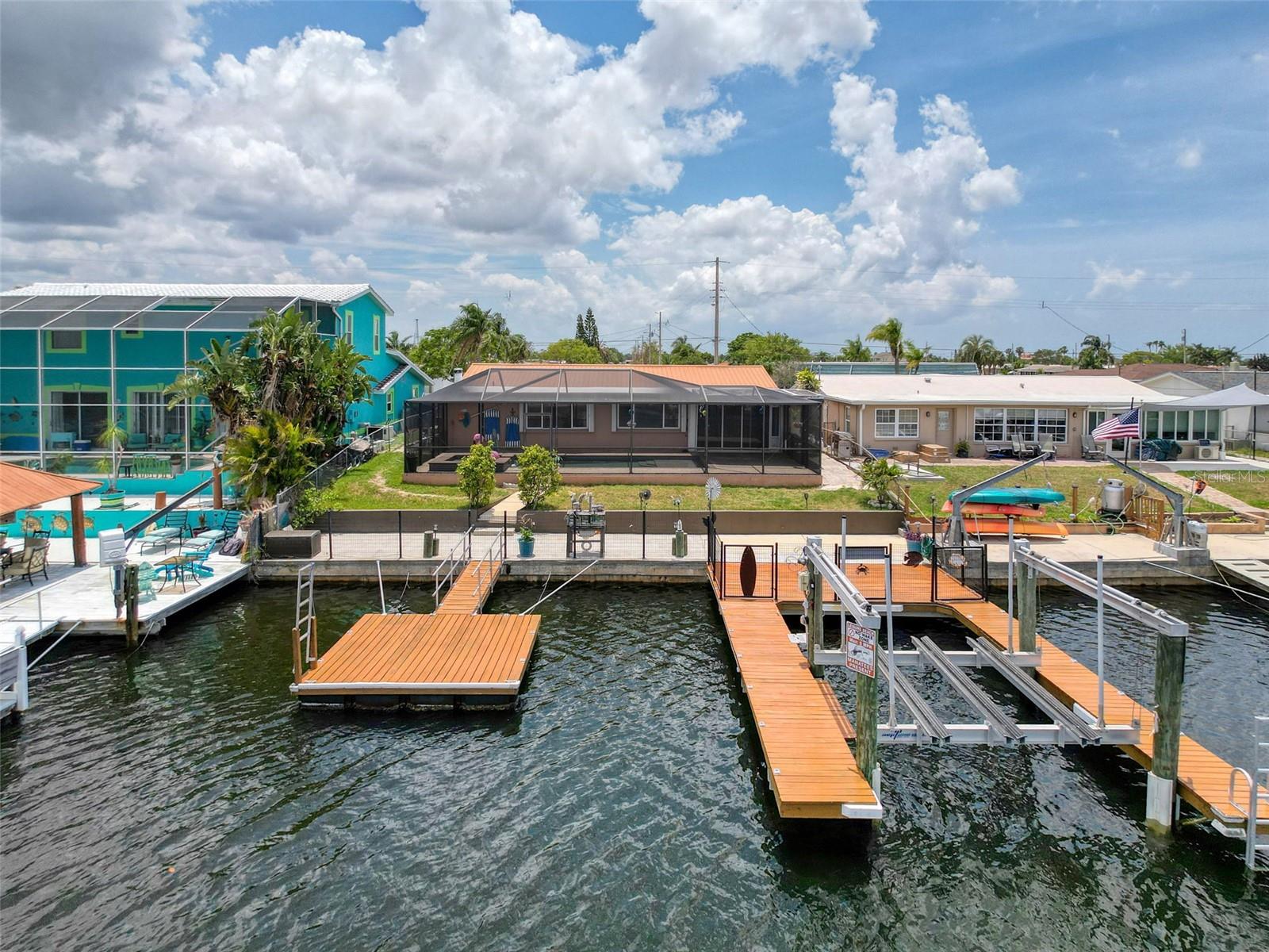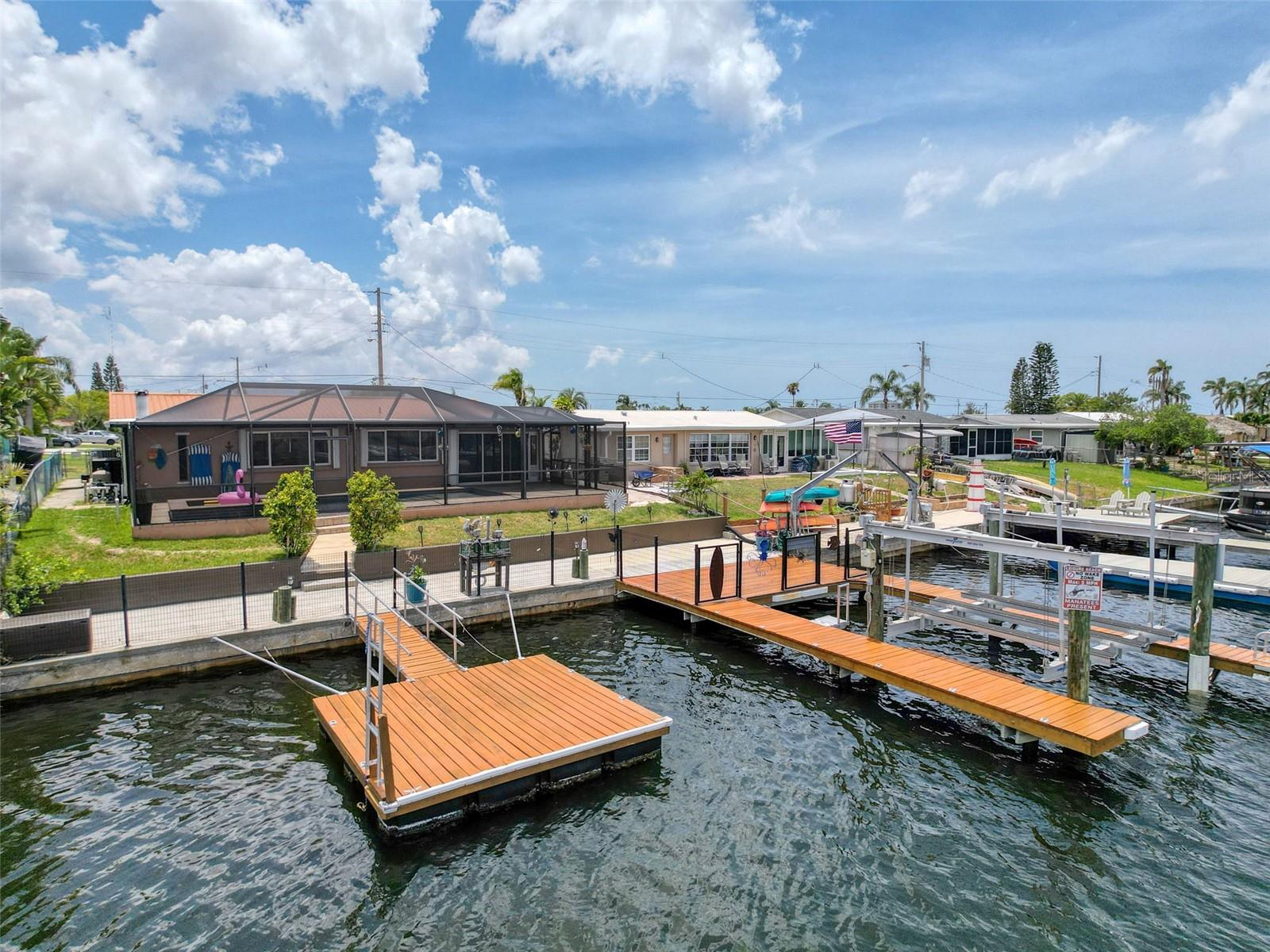 Live the ultimate salt life in this waterfront paradise with direct Gulf access, located in the vibrant boating community of Leisure Beach. This 2BR/2BA pool home features a new copper metal roof (2023), updated A/C ductwork (2024), hurricane shutters, reinforced garage door, and many more upgrades! Spend your days lounging in the saltwater pool and spa, entertaining in the screened lanai and covered patio, or hopping on your boat from the 10,000 lb lift and 12x12 floating dock. Cruise to waterfront restaurants like Hooters, Whiskey Joes, and Catches just to name a few. Or maybe you will choose to spend the day at Anclote Island, Durnkey or the Sand Bar. For the fishing enthusiast, cast off for world-class offshore fishing at the Middle grounds. Inside this waterfront beauty you will enjoy a stylish kitchen with granite countertops, black stainless appliances, updated bathrooms and beautiful barn look tile floors. All this plus a transferable flood policy at just $3,500/year. Leisure Beach has no HOA, no CDD, but you will find a fish loving community that has events like Chilli/Rib cook offs, a Spring Party, and simply the best neighbors ever! Hudson offers laid-back coastal charm just an hour from Tampa International Airport, 2 hours from Disney, —and best of all this home sustained no flood damage from recent storms! Call today to see this piece of paradise!