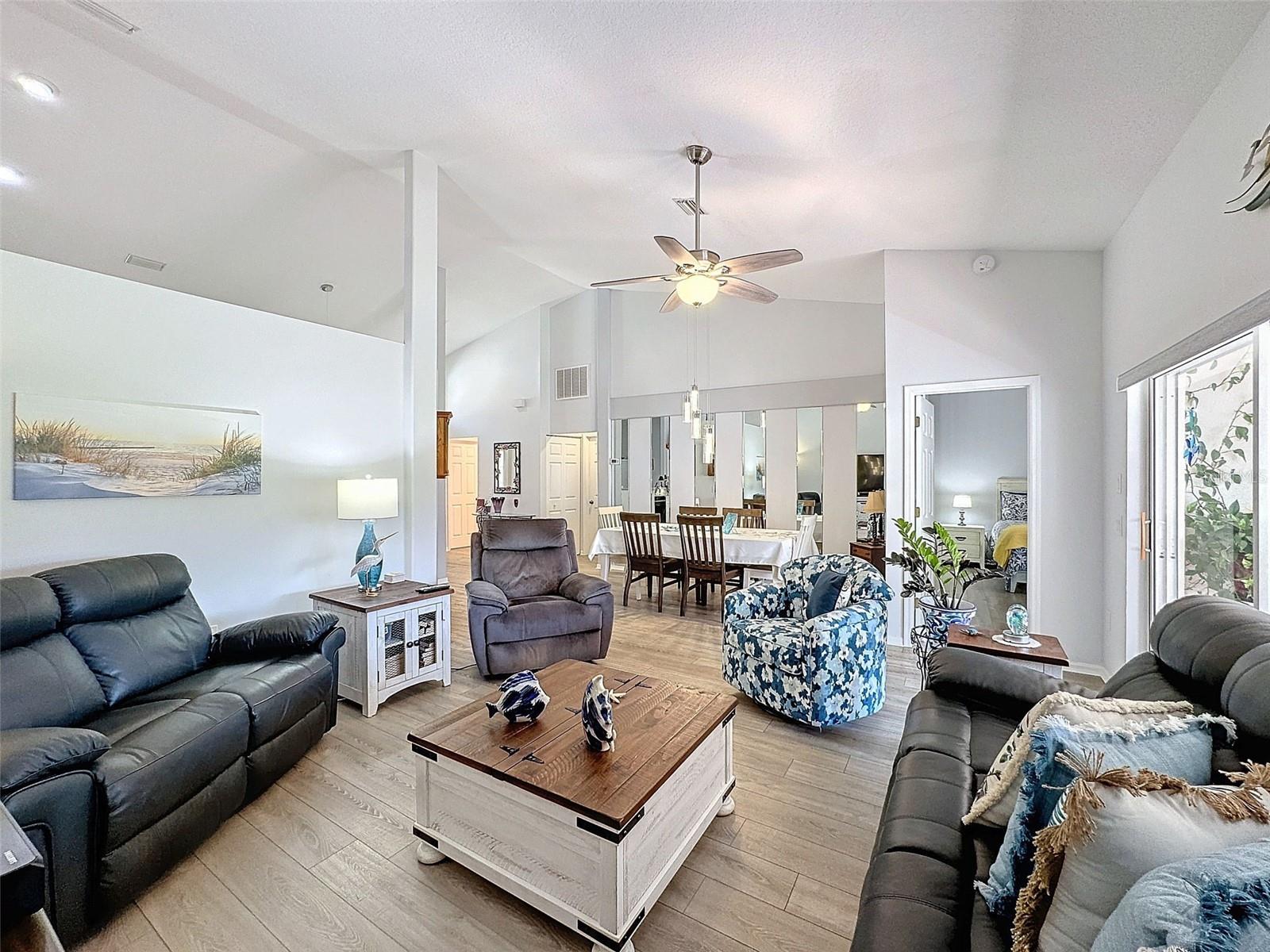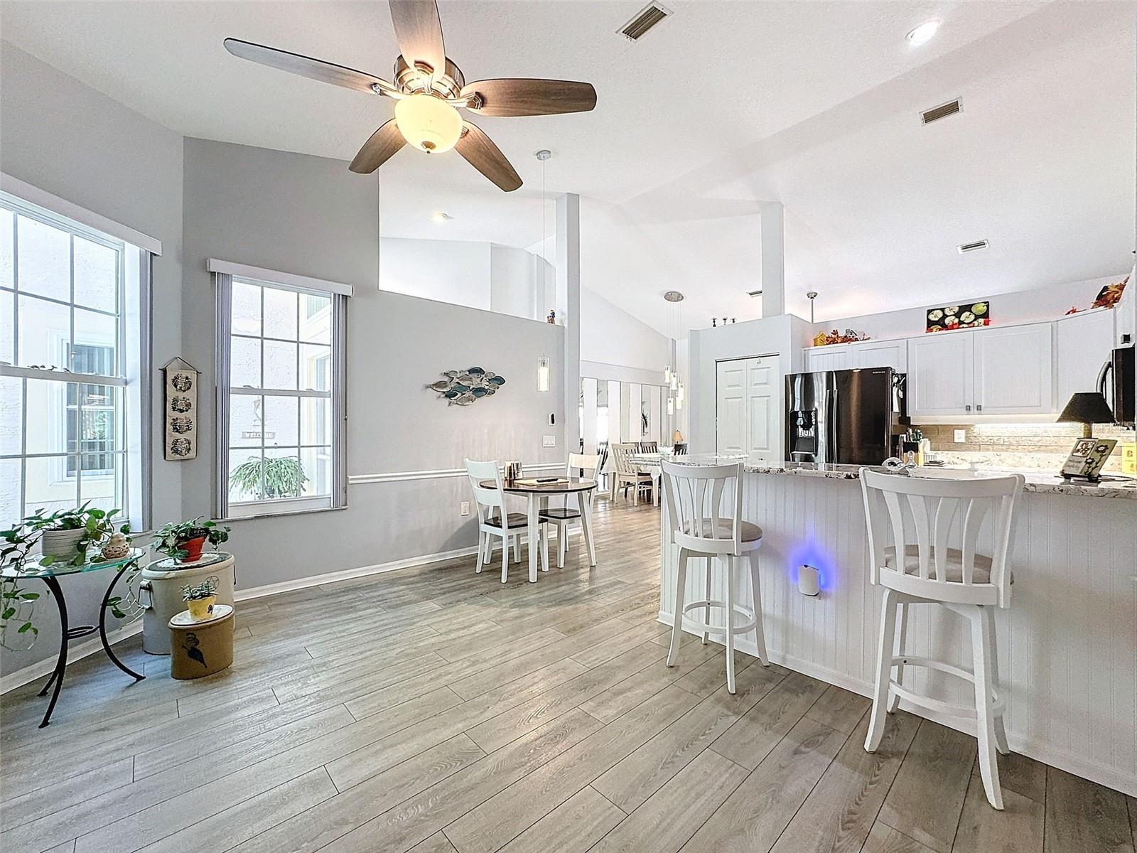 BACK ON THE MARKET AND THE SELLERS ARE MOTIVATED!!! Welcome to 7518 Mediterranean Ct, located in a micro villa community within Beacon Woods and has super low maintenance fees and has healthy reserves. The sellers purchased the villa in 2016 and have done extensive updates to the home to include luxury vinyl throughout the villa. The kitchen was completely remodeled in 2019. The cabinets have soft close drawers, beautiful granite countertops with a stunning backslash and all the kitchen appliances. The interior of the property was repainted 3 years ago. Windows were replaced in 2022. Light fixtures and ceiling fans have been replaced, and custom blinds have been installed. The A/C and washer and dryer were replaced in 2017. All you really need to move in is your personal belongings and this villa is truly in move in condition. This villa is ready for a new owner to enjoy. Land,