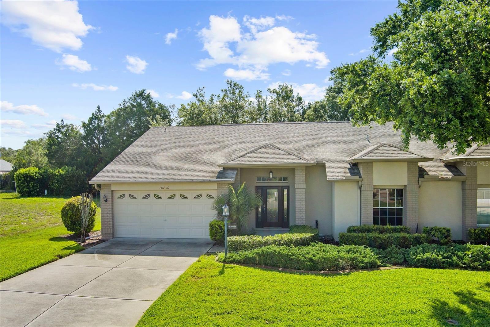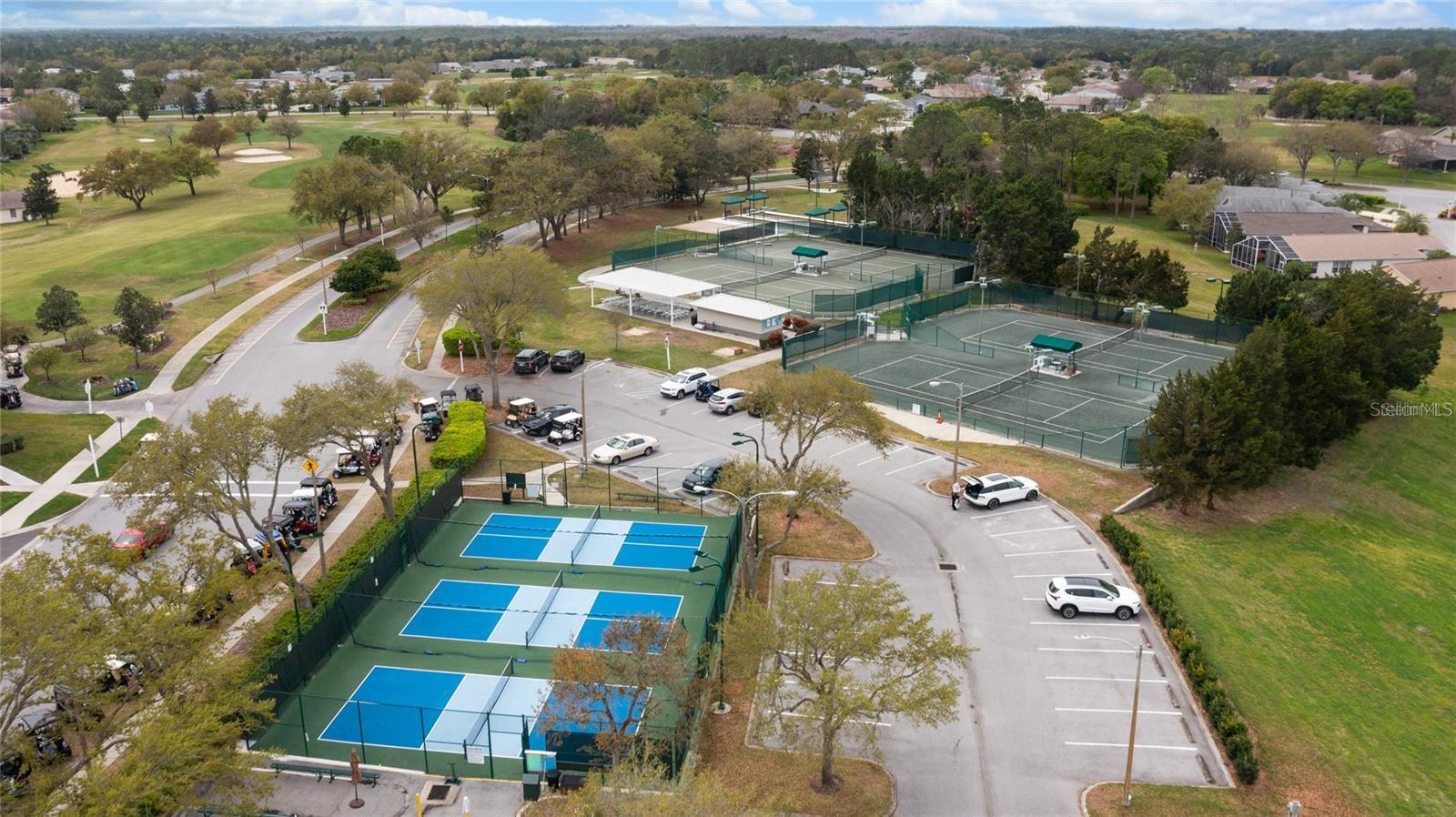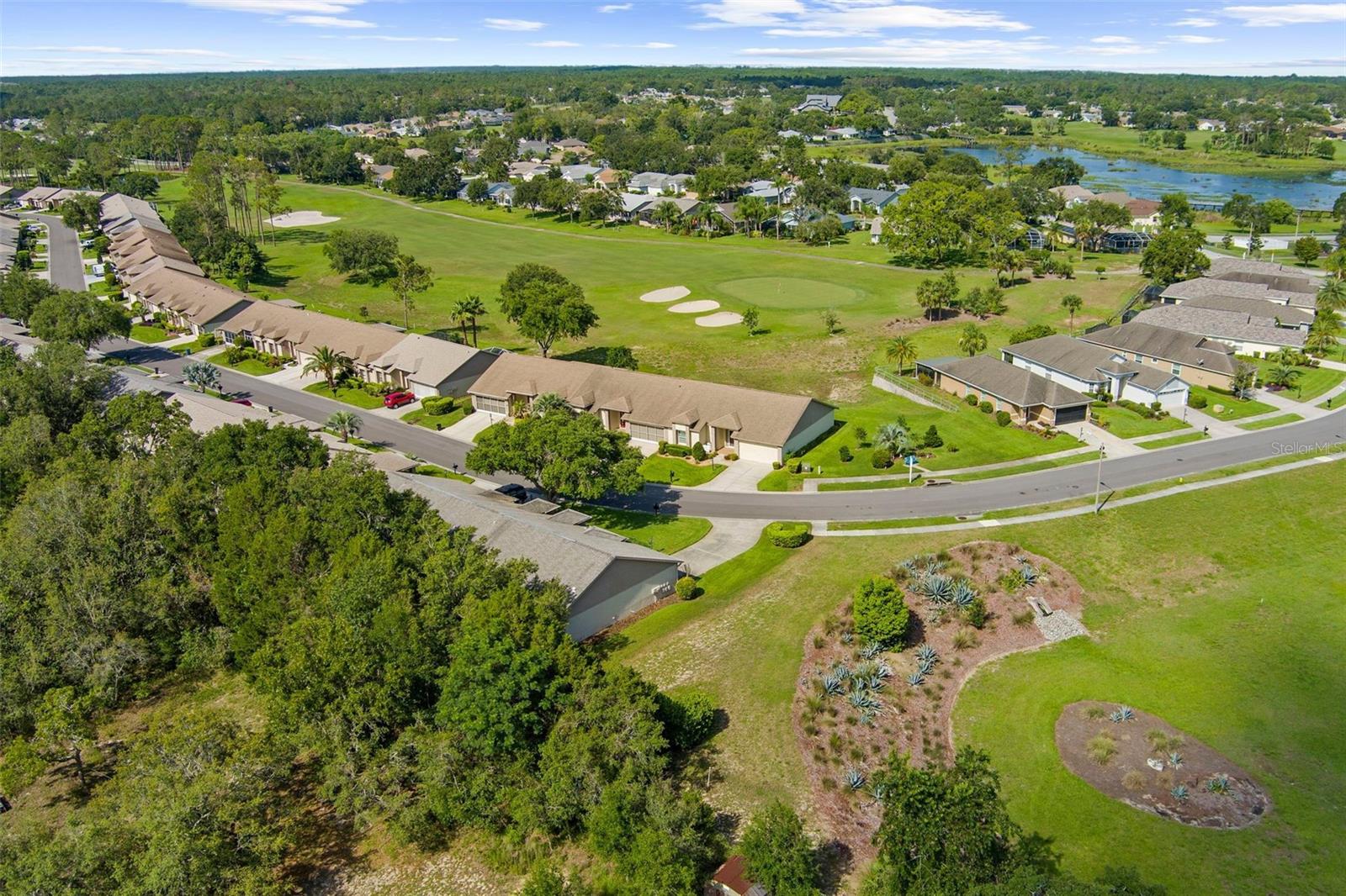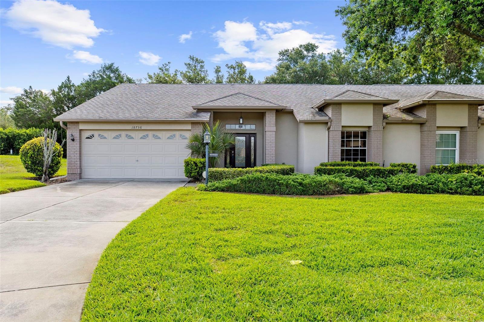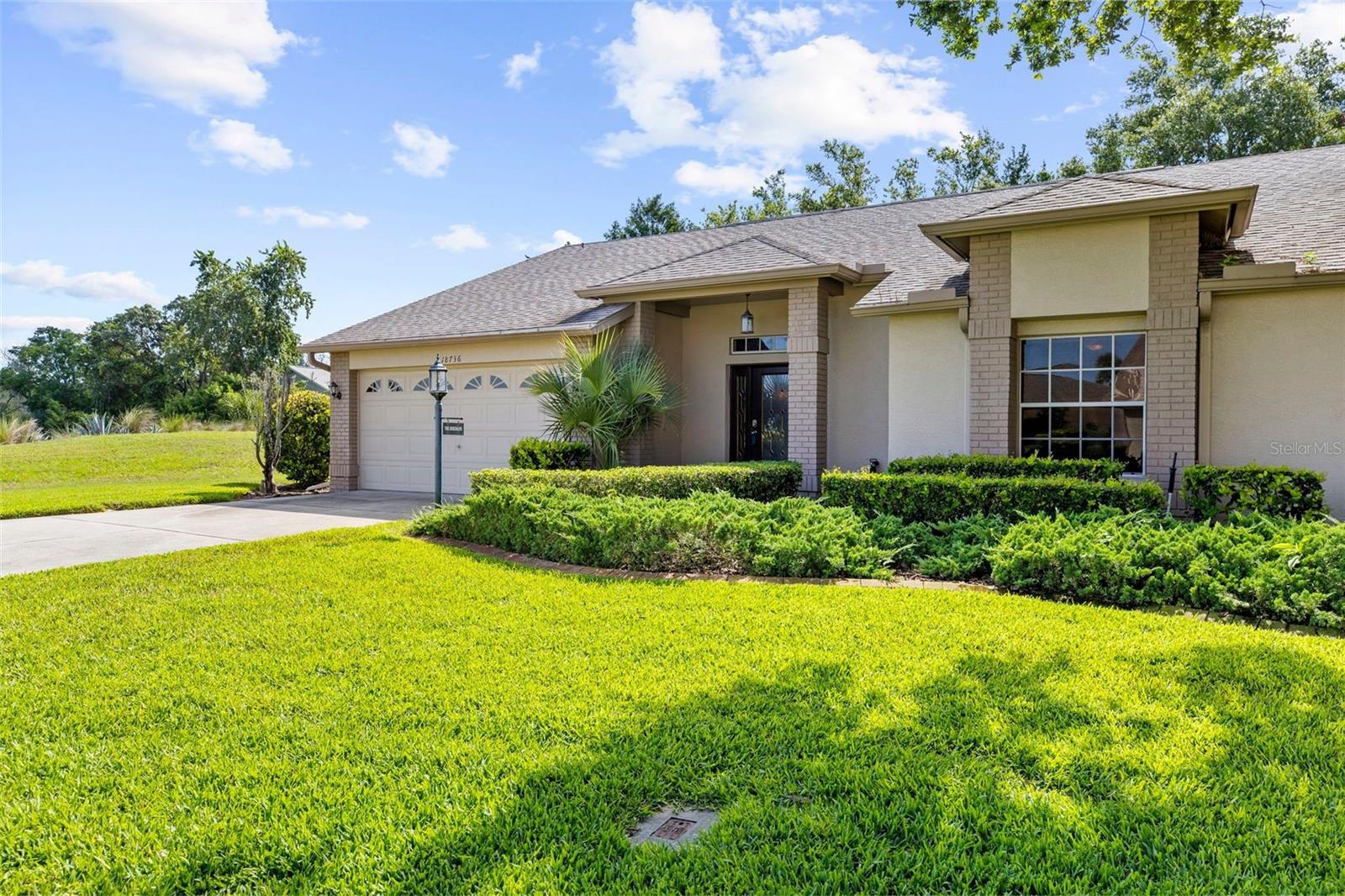 One or more photo(s) has been virtually staged. DESIRABLE END UNIT with extra long driveway, plenty of room for your guests to park in the active 55+ , gated private golf community of Heritage Pines. Looking for an active community !!! Low HOA fee covers cable, internet, exterior maintenance, lawn care, irrigation and exterior painting. ,fitness center, heated pool and spa, tennis, crafting, woodworking, pickleball and more. This 2 bedroom 2 bath end unit has a premier walk in shower in primary bath and a walk in tub in 2nd bath. AC installed in 2024.The sun room has been enclosed with new windows and opens up to living and dining area adding a larger open feel. No rear neighbors makes for lots of privacy on your back patio, Inside laundry off kitchen and garage with cabinets and counter space for folding.