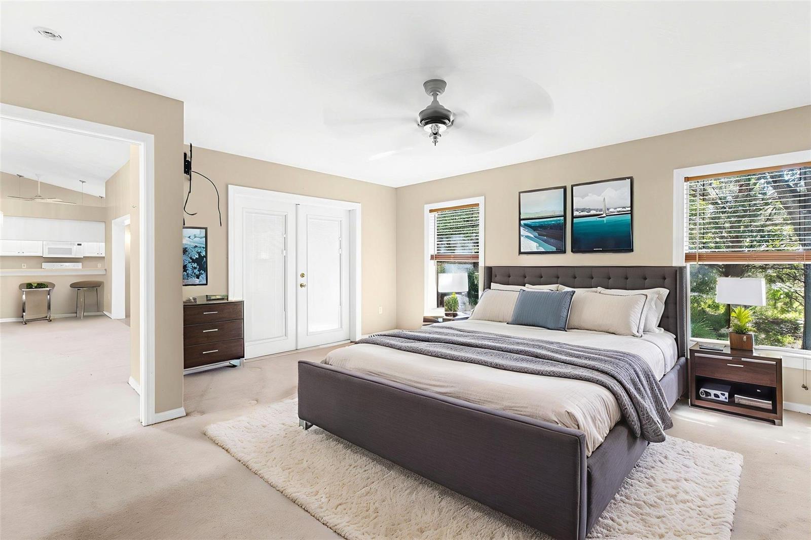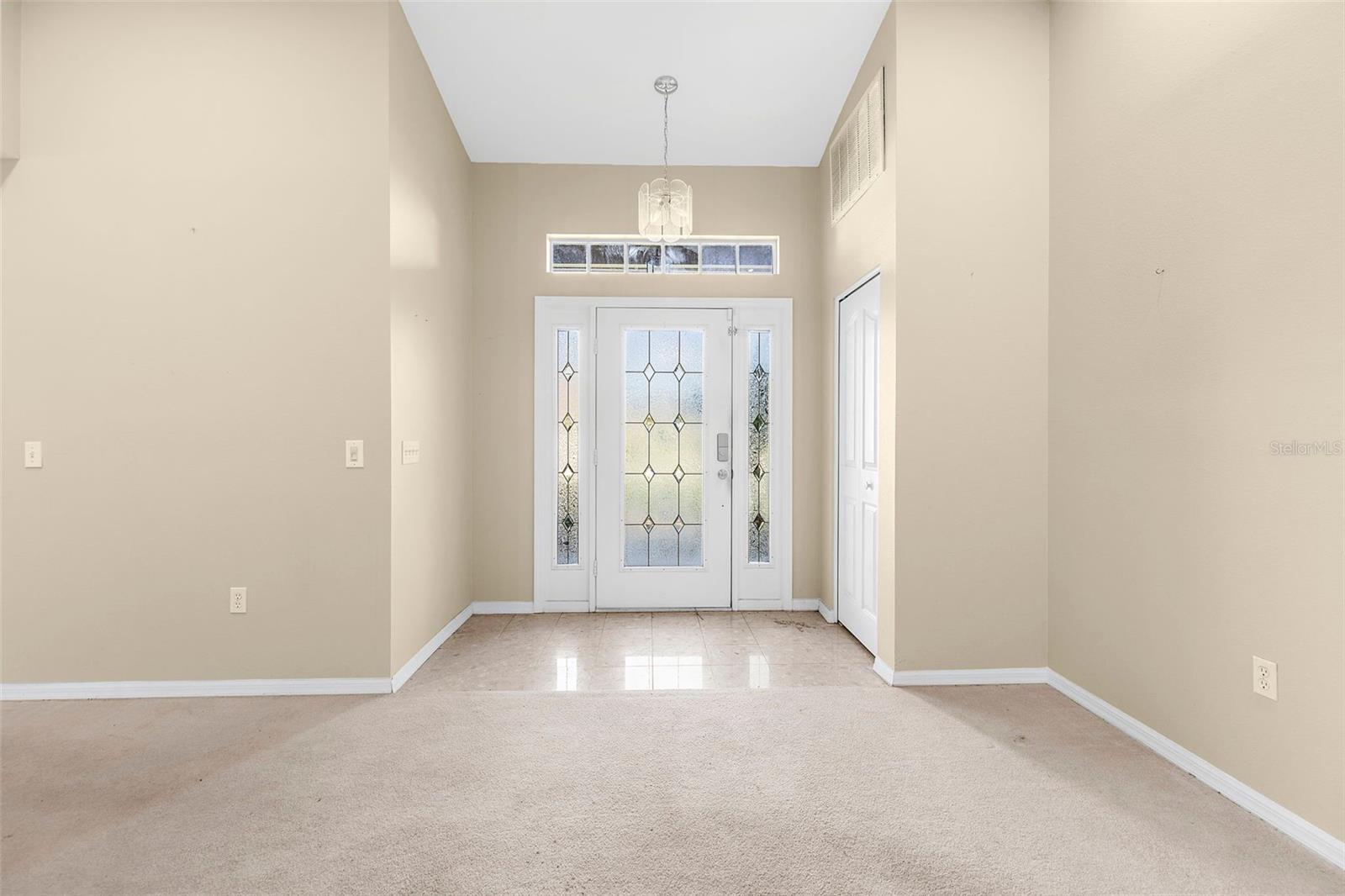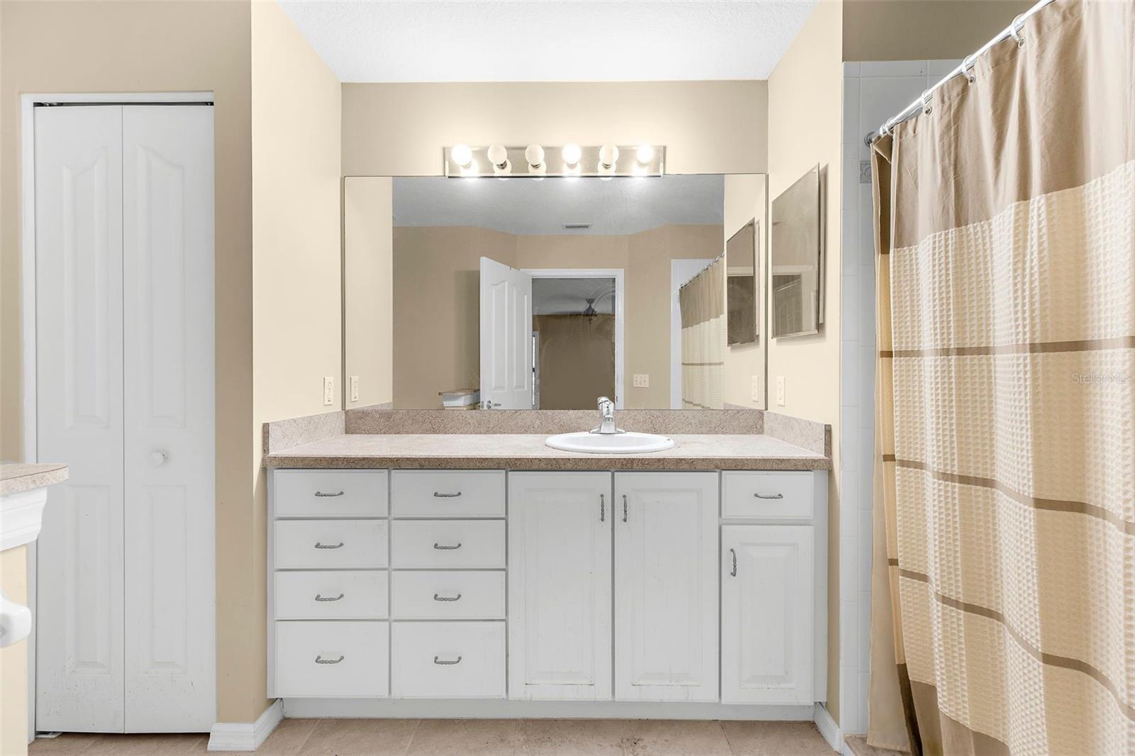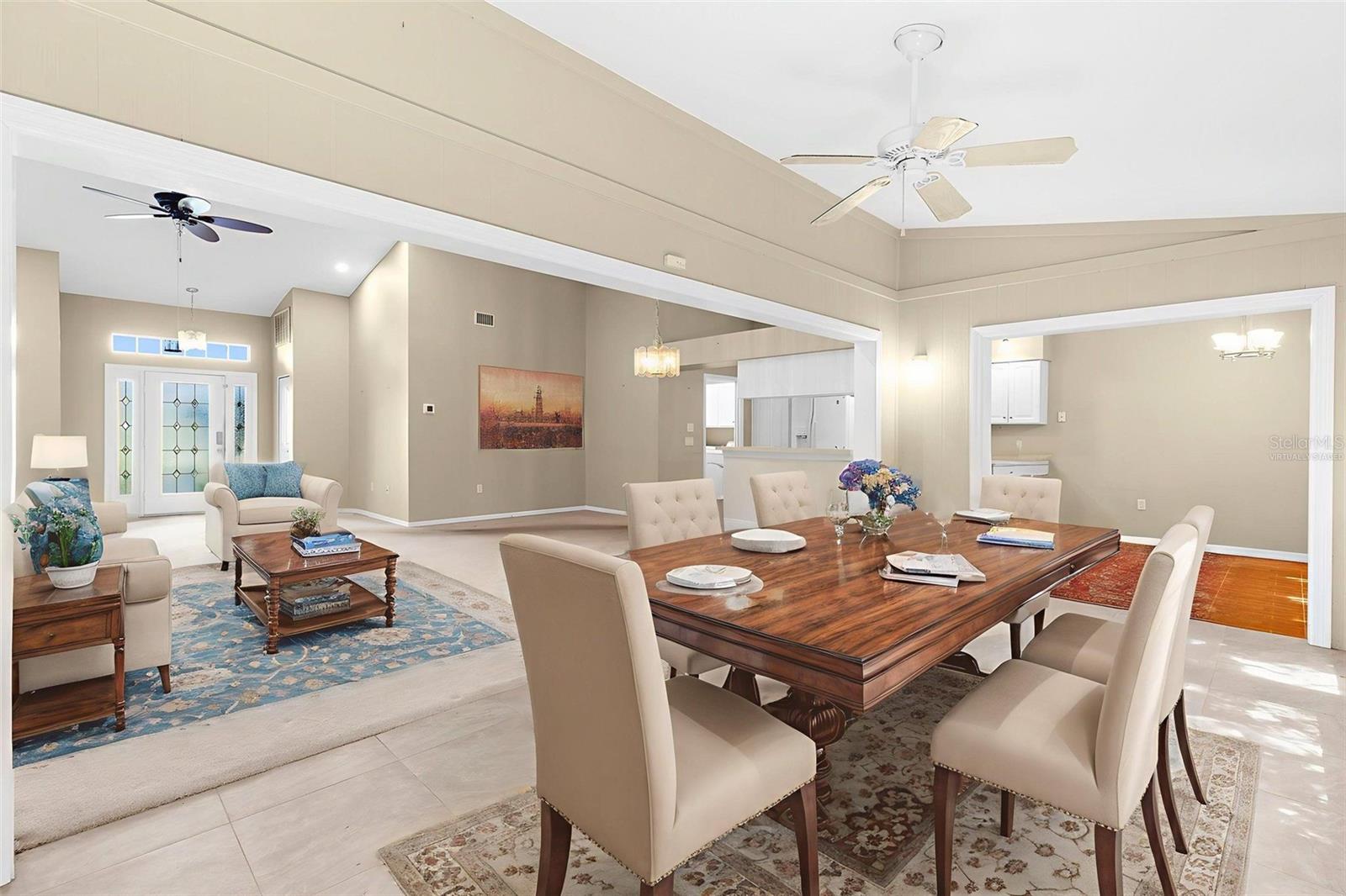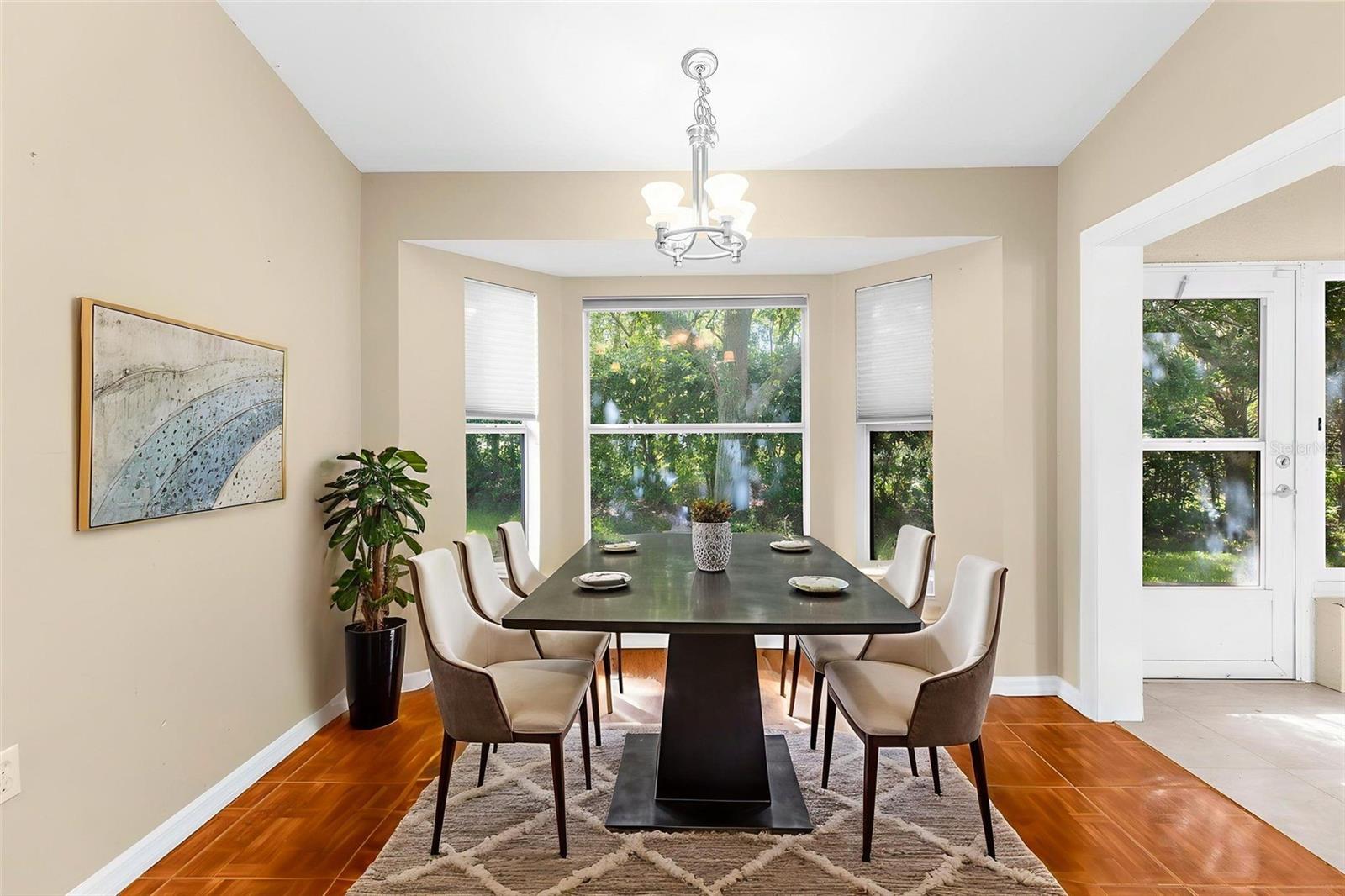 One or more photo(s) has been virtually staged. DESIRABLE END UNIT with extra long driveway, plenty of room for your guests to park in the active 55+ , gated private golf community of Heritage Pines. Looking for an active community !!! Low HOA fee covers cable, internet, exterior maintenance, lawn care, irrigation and exterior painting. ,fitness center, heated pool and spa, tennis, crafting, woodworking, pickleball and more. This 2 bedroom 2 bath end unit has a premier walk in shower in primary bath and a walk in tub in 2nd bath. AC installed in 2024.The sun room has been enclosed with new windows and opens up to living and dining area adding a larger open feel. No rear neighbors makes for lots of privacy on your back patio, Inside laundry off kitchen and garage with cabinets and counter space for folding.
