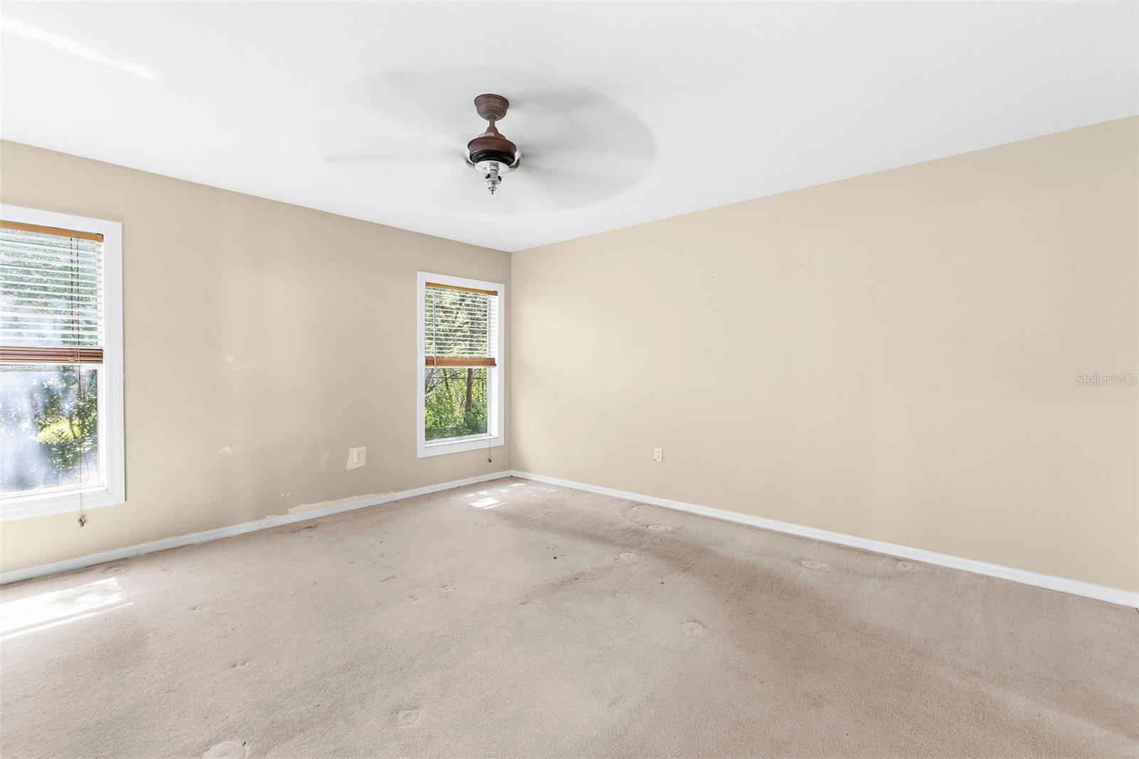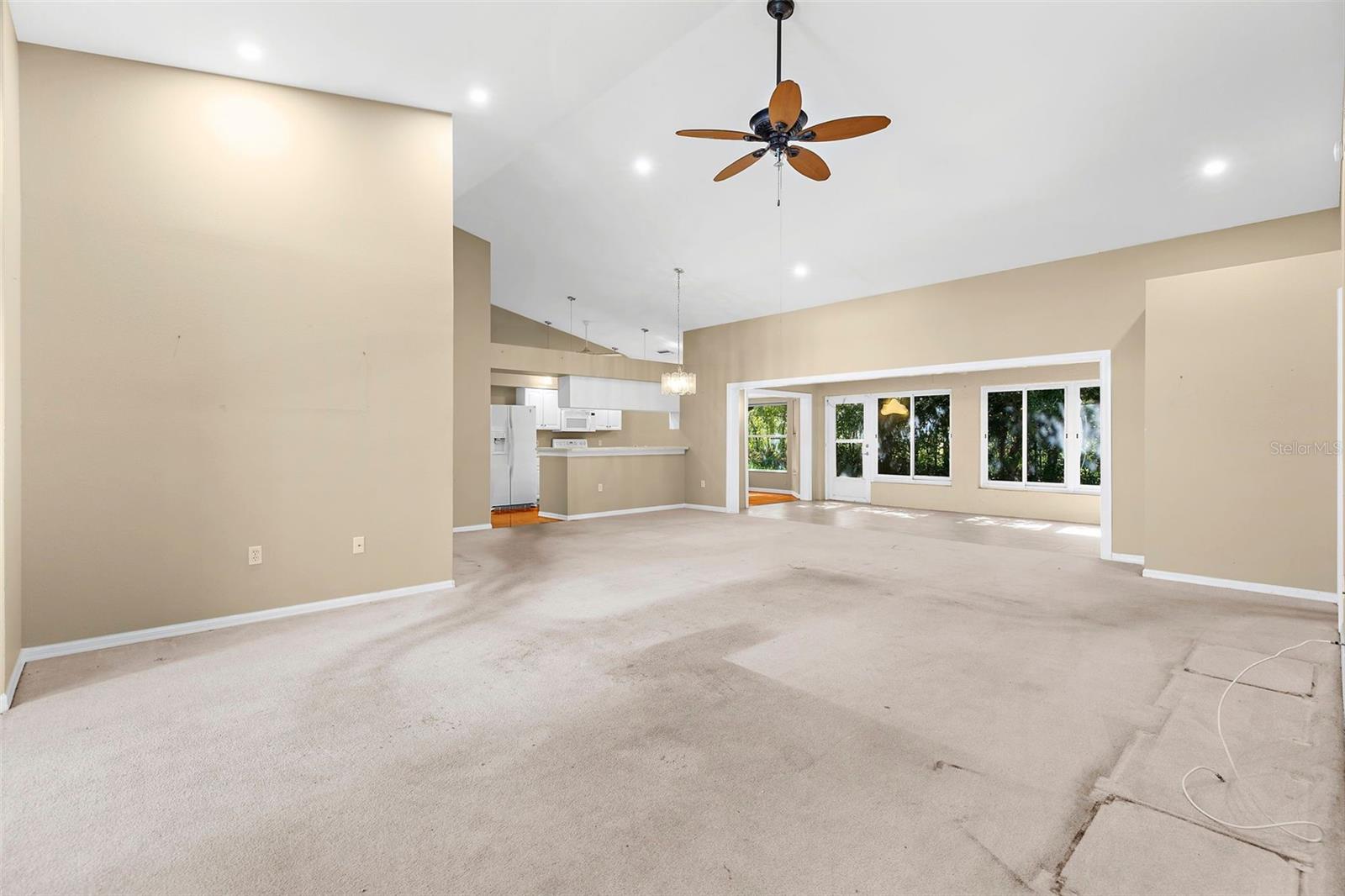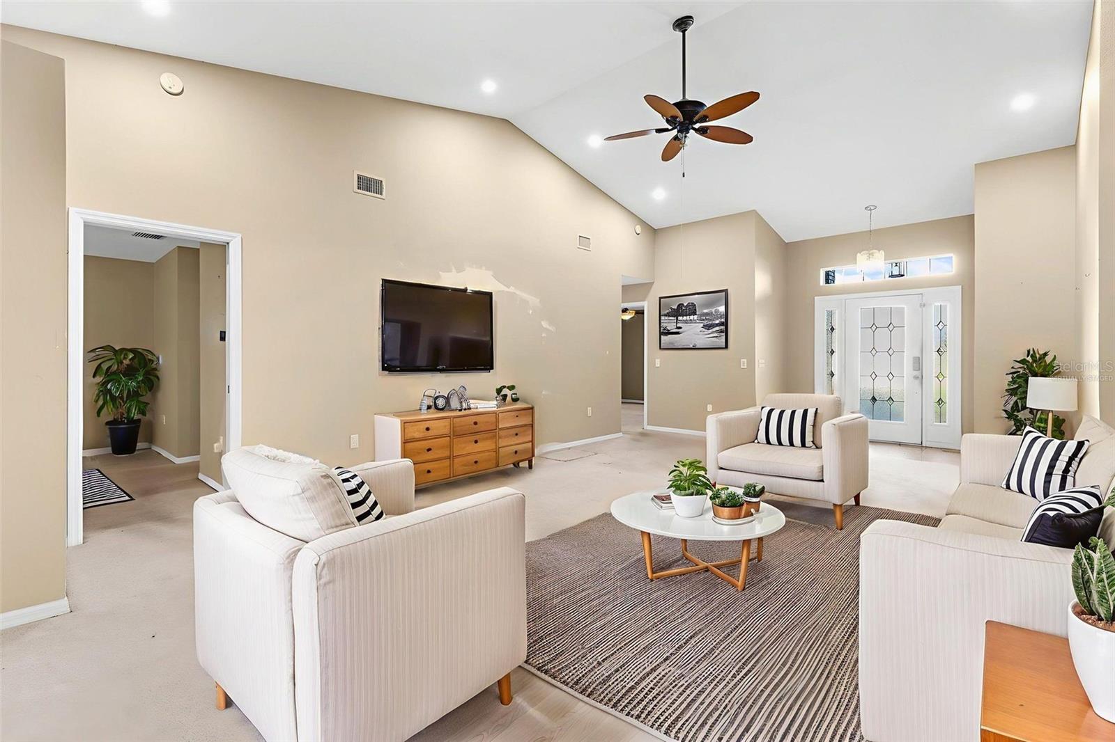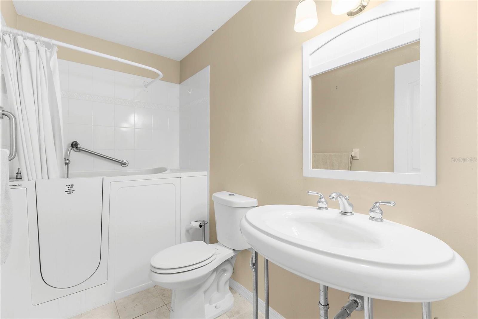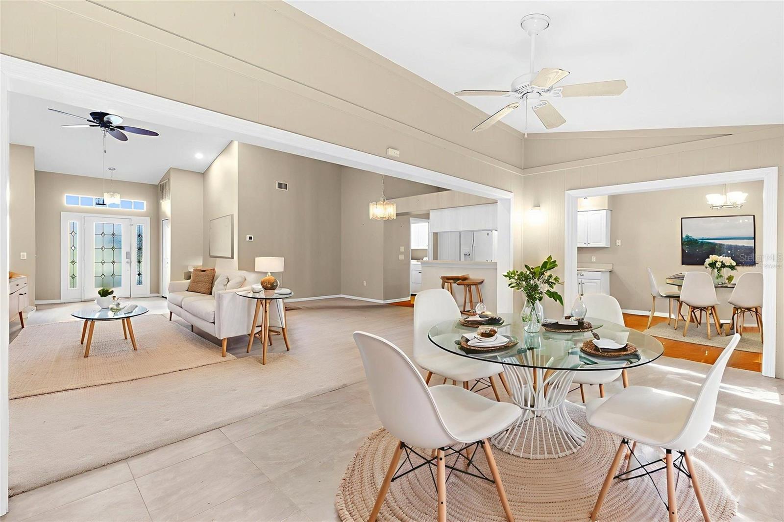 One or more photo(s) has been virtually staged. DESIRABLE END UNIT with extra long driveway, plenty of room for your guests to park in the active 55+ , gated private golf community of Heritage Pines. Looking for an active community !!! Low HOA fee covers cable, internet, exterior maintenance, lawn care, irrigation and exterior painting. ,fitness center, heated pool and spa, tennis, crafting, woodworking, pickleball and more. This 2 bedroom 2 bath end unit has a premier walk in shower in primary bath and a walk in tub in 2nd bath. AC installed in 2024.The sun room has been enclosed with new windows and opens up to living and dining area adding a larger open feel. No rear neighbors makes for lots of privacy on your back patio, Inside laundry off kitchen and garage with cabinets and counter space for folding.