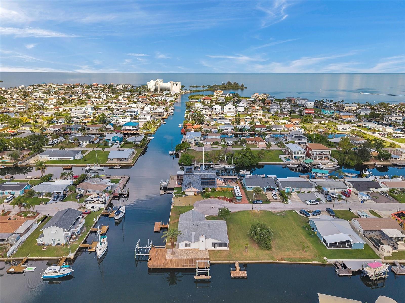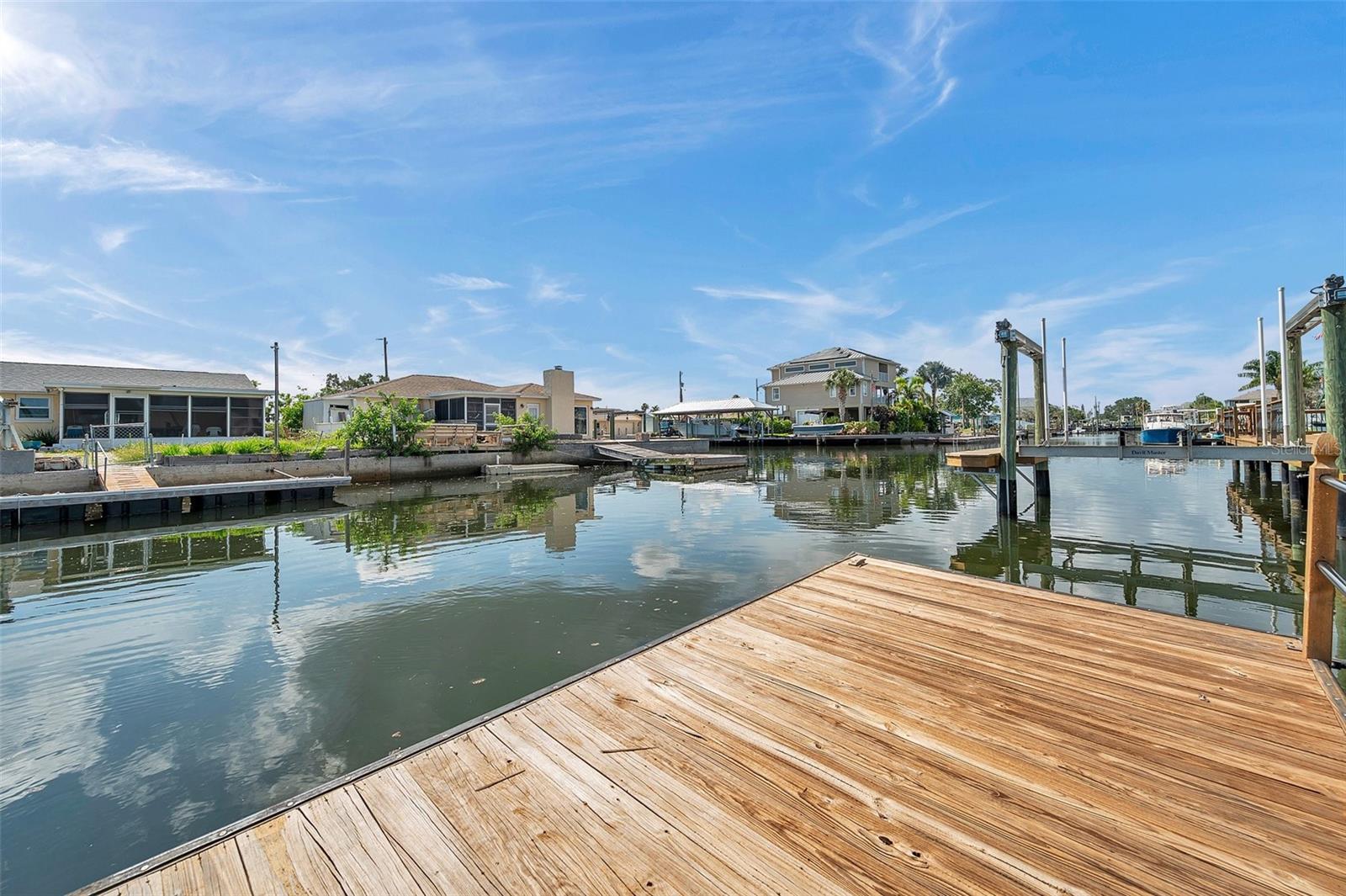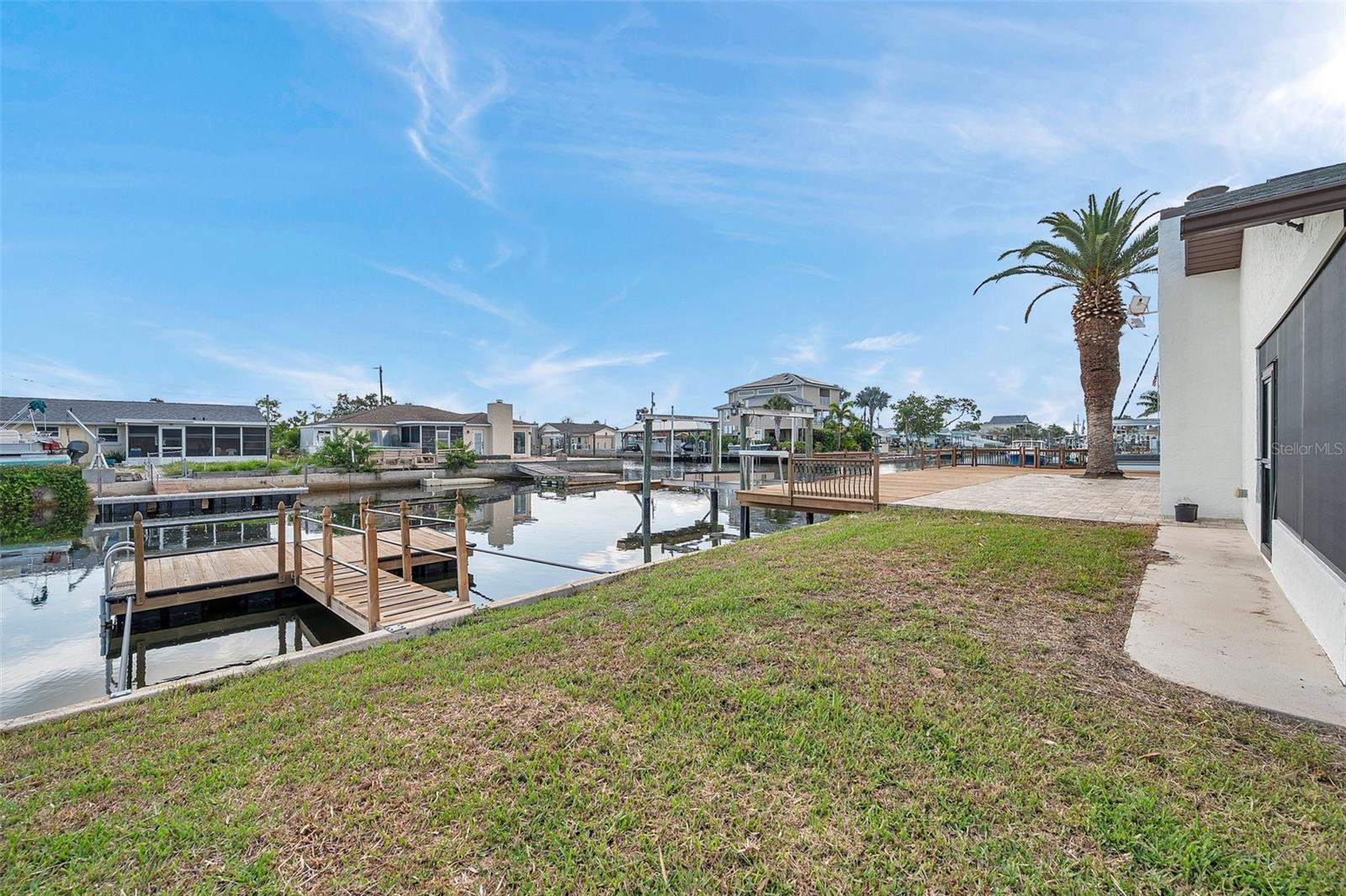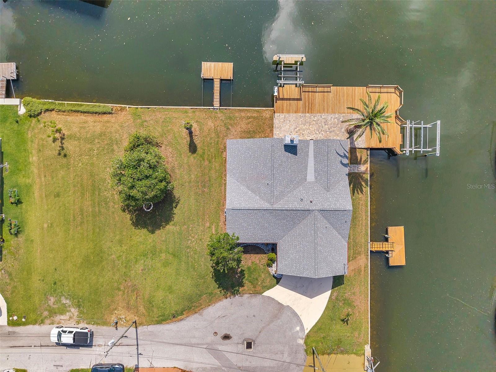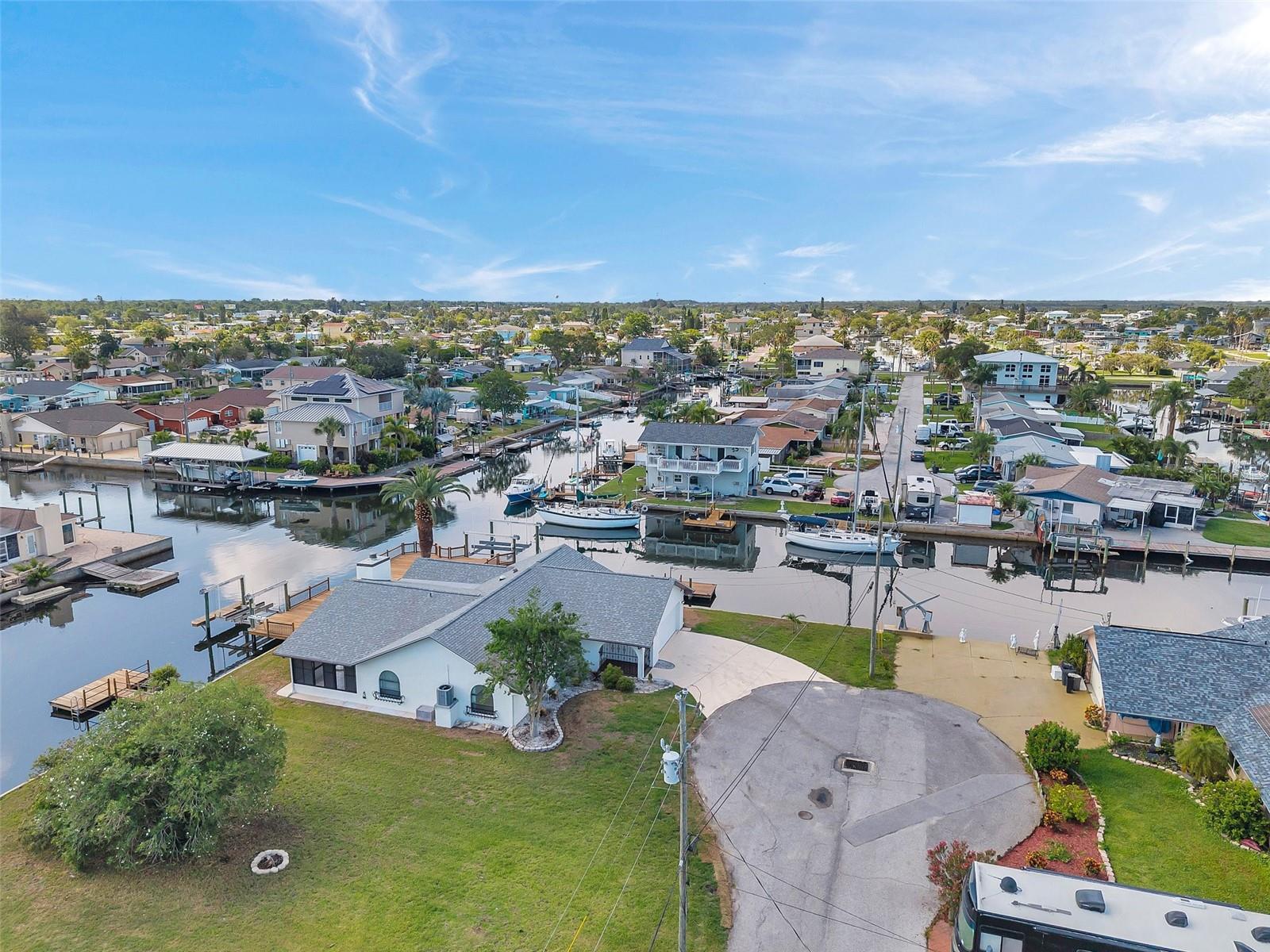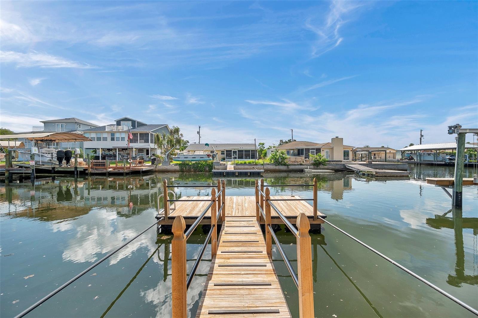 One or more photo(s) has been virtually staged. Welcome to your dream home in the sought-after coastal community of Hudson Beach Estates. Situated at the end of a quiet cul-de-sac on an oversized 0.27-acre lot, this waterfront stunner boasts 270-degree panoramic water views and over 200 feet of waterfront—a rare gem perfect for boaters and sunset lovers alike. This home features two floating docks, 2 boat lifts (one 16K and one 10K), and an expansive wraparound deck for entertaining, lounging, and taking in the views. Minutes to the open Gulf, only 5 canals away, this is a boater’s paradise. Step inside this newly remodeled home to an open-concept layout that seamlessly blends indoor and outdoor living. The kitchen offers beautiful quartz countertops, stainless steel appliances and white cabinets for that classic coastal feel. The spacious primary bedroom has a private ensuite, with walk-in shower, and two large closets. There are two additional bedrooms and a bathroom in a split-floor plan design offering privacy and comfort. The family room boasts a wood burning fireplace to snuggle up while enjoying the water views. There is a covered screen porch off the family room and a bonus room off the primary suite, ideal as a home office, guest lounge or game room. New roof installed in 2022. Bring all your toys! This waterfront community has sailboat deep water and is RV and golf cart friendly. There is a public beach just a short ride on your golf cart with waterfront restaurants and marinas. A 45-minute ride to Tampa International Airport. Close to New Port Richey’s historic downtown, rich with dining, culture and family-friendly activities. Come enjoy the Florida Waterfront lifestyle in this beautiful move in ready home. Schedule your private showing today! Home is also listed for rent, please see MLS # W7877100