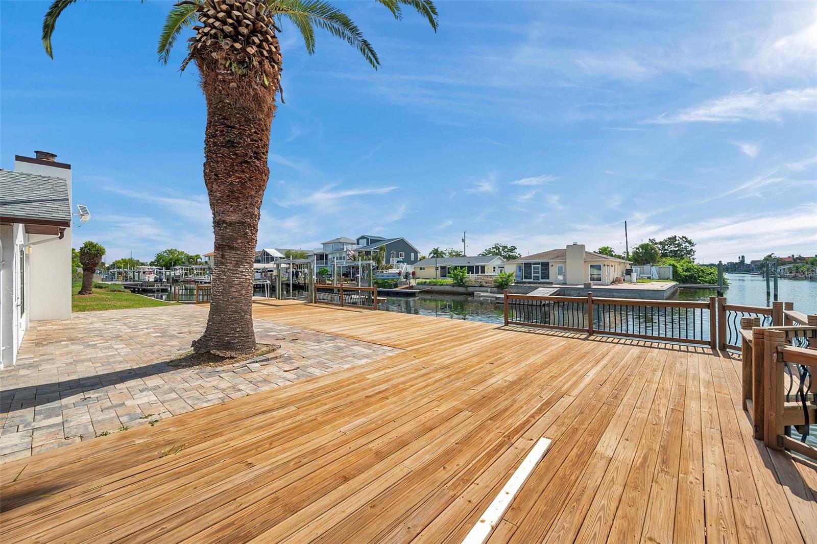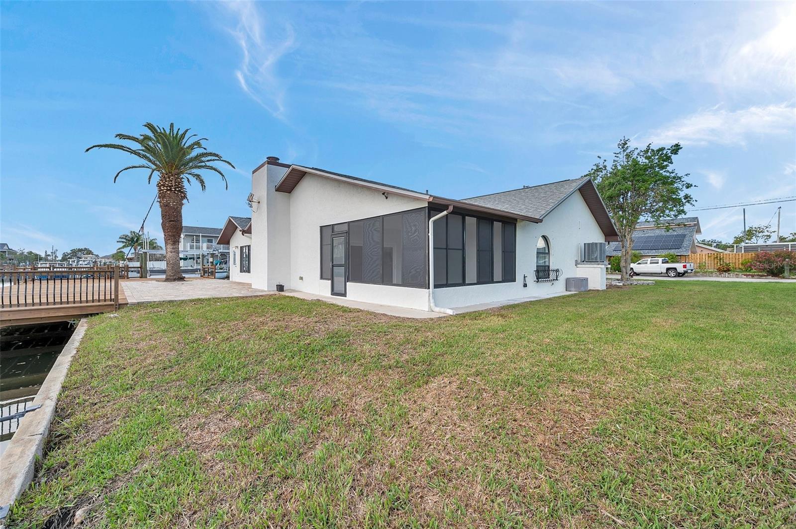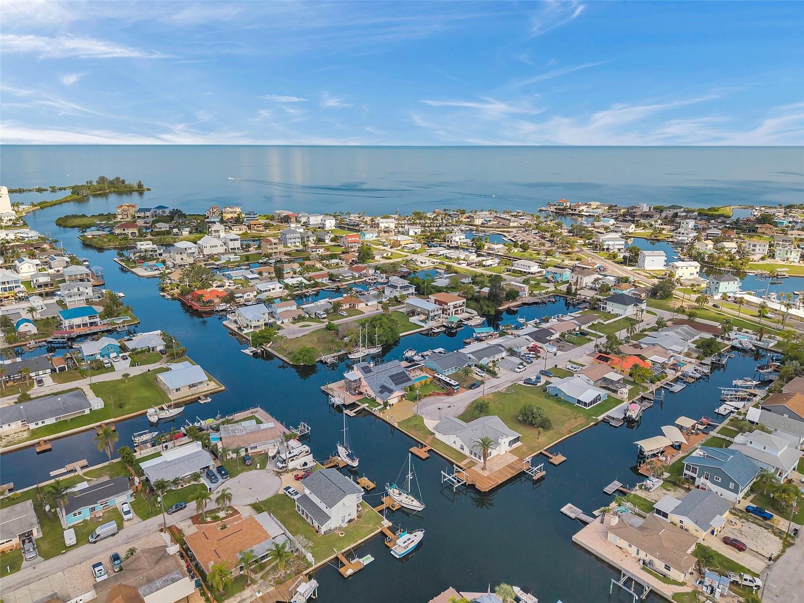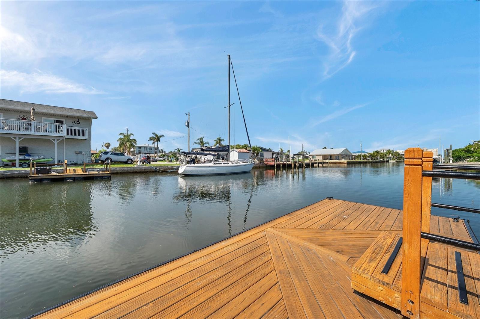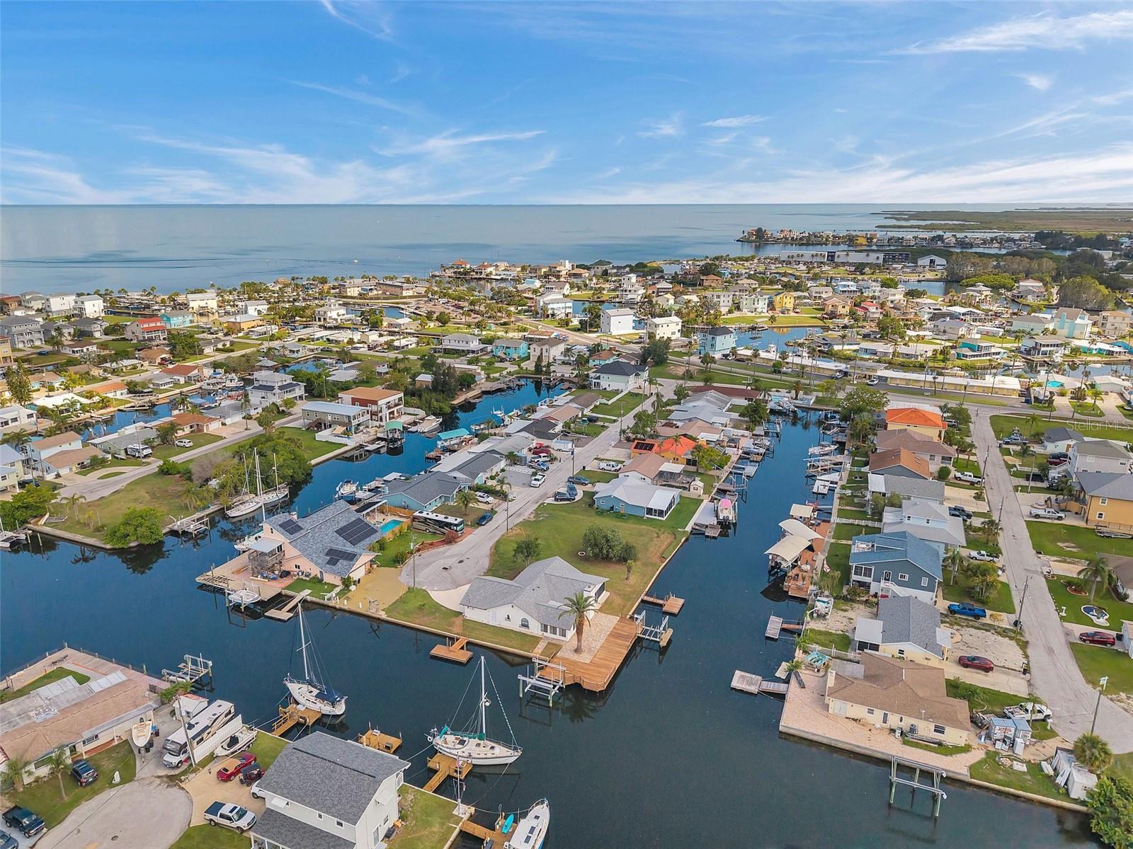 One or more photo(s) has been virtually staged. Welcome to your dream home in the sought-after coastal community of Hudson Beach Estates. Situated at the end of a quiet cul-de-sac on an oversized 0.27-acre lot, this waterfront stunner boasts 270-degree panoramic water views and over 200 feet of waterfront—a rare gem perfect for boaters and sunset lovers alike. This home features two floating docks, 2 boat lifts (one 16K and one 10K), and an expansive wraparound deck for entertaining, lounging, and taking in the views. Minutes to the open Gulf, only 5 canals away, this is a boater’s paradise. Step inside this newly remodeled home to an open-concept layout that seamlessly blends indoor and outdoor living. The kitchen offers beautiful quartz countertops, stainless steel appliances and white cabinets for that classic coastal feel. The spacious primary bedroom has a private ensuite, with walk-in shower, and two large closets. There are two additional bedrooms and a bathroom in a split-floor plan design offering privacy and comfort. The family room boasts a wood burning fireplace to snuggle up while enjoying the water views. There is a covered screen porch off the family room and a bonus room off the primary suite, ideal as a home office, guest lounge or game room. New roof installed in 2022. Bring all your toys! This waterfront community has sailboat deep water and is RV and golf cart friendly. There is a public beach just a short ride on your golf cart with waterfront restaurants and marinas. A 45-minute ride to Tampa International Airport. Close to New Port Richey’s historic downtown, rich with dining, culture and family-friendly activities. Come enjoy the Florida Waterfront lifestyle in this beautiful move in ready home. Schedule your private showing today! Home is also listed for rent, please see MLS # W7877100