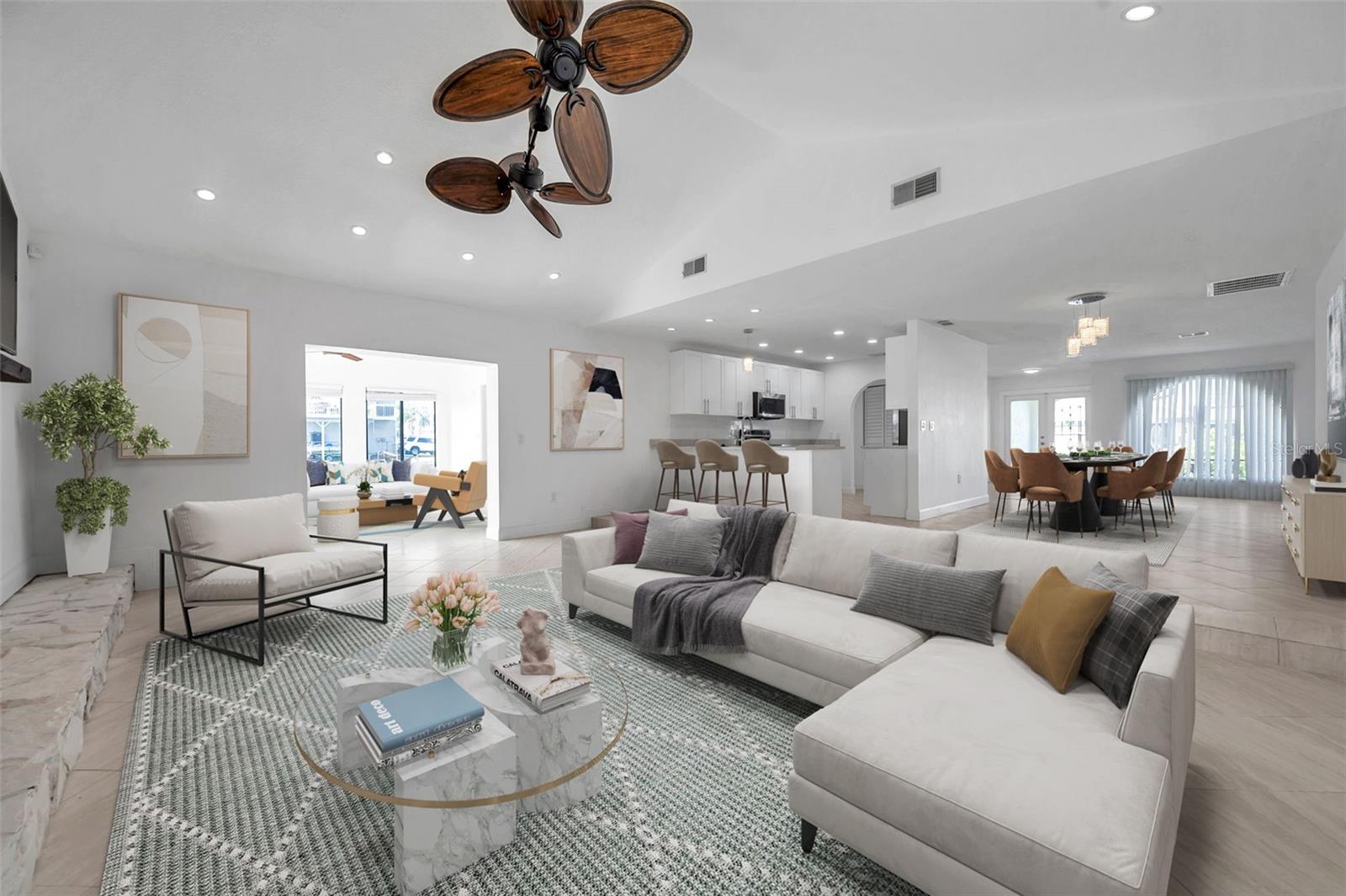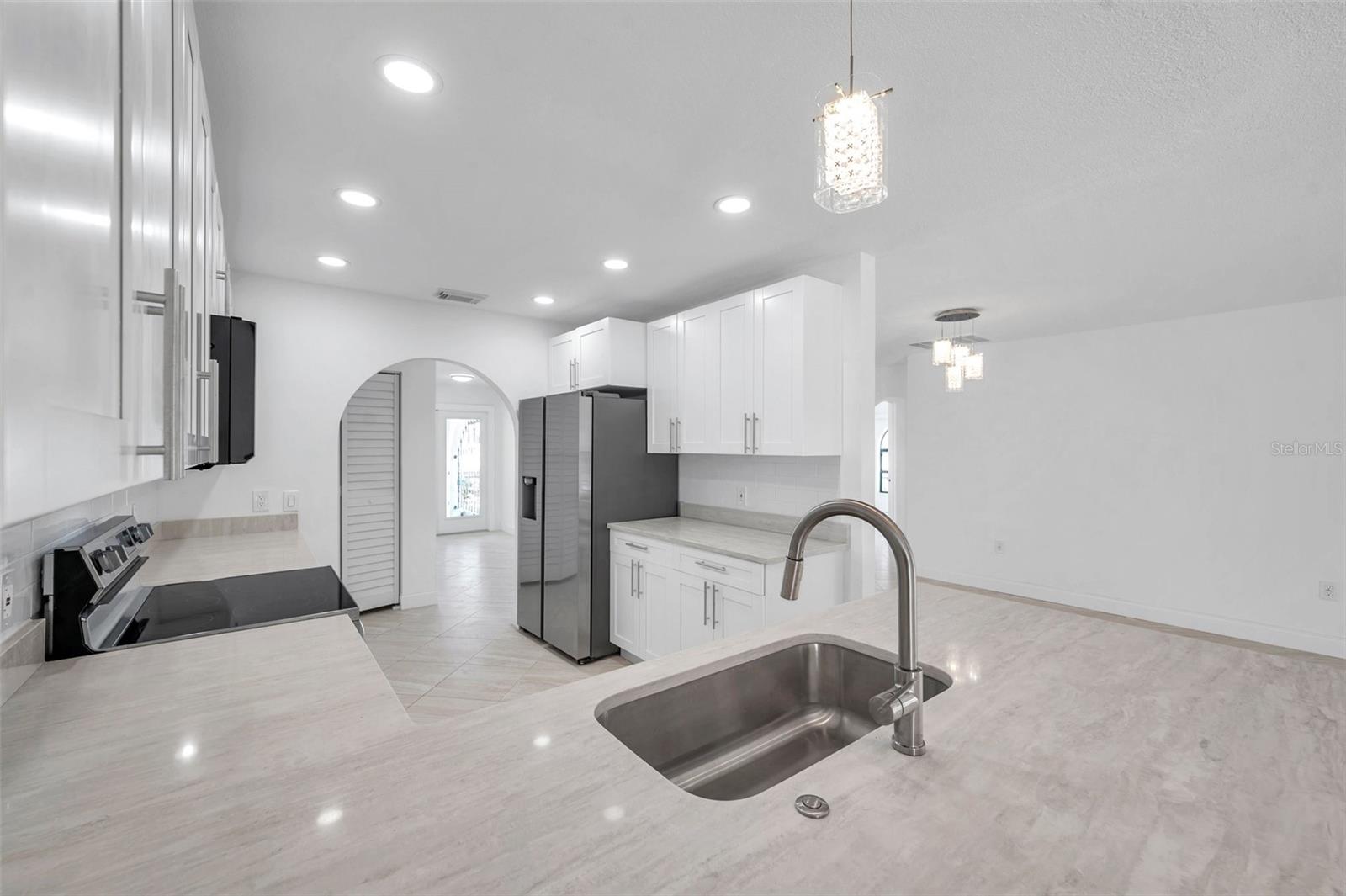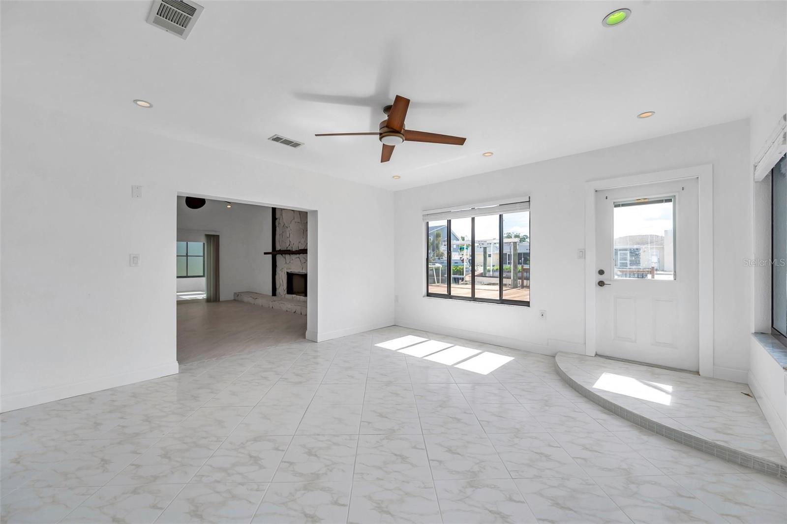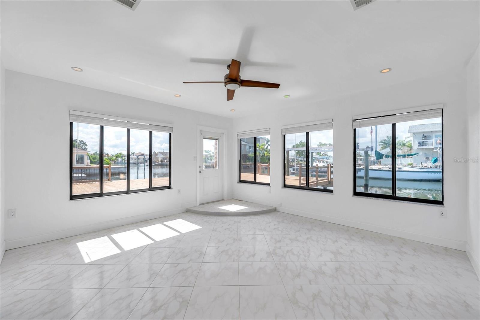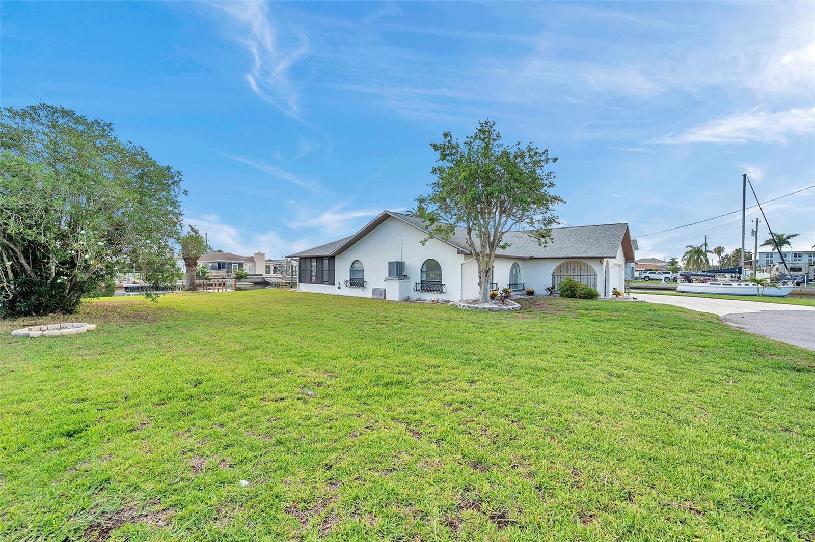 One or more photo(s) has been virtually staged. Welcome to your dream home in the sought-after coastal community of Hudson Beach Estates. Situated at the end of a quiet cul-de-sac on an oversized 0.27-acre lot, this waterfront stunner boasts 270-degree panoramic water views and over 200 feet of waterfront—a rare gem perfect for boaters and sunset lovers alike. This home features two floating docks, 2 boat lifts (one 16K and one 10K), and an expansive wraparound deck for entertaining, lounging, and taking in the views. Minutes to the open Gulf, only 5 canals away, this is a boater’s paradise. Step inside this newly remodeled home to an open-concept layout that seamlessly blends indoor and outdoor living. The kitchen offers beautiful quartz countertops, stainless steel appliances and white cabinets for that classic coastal feel. The spacious primary bedroom has a private ensuite, with walk-in shower, and two large closets. There are two additional bedrooms and a bathroom in a split-floor plan design offering privacy and comfort. The family room boasts a wood burning fireplace to snuggle up while enjoying the water views. There is a covered screen porch off the family room and a bonus room off the primary suite, ideal as a home office, guest lounge or game room. New roof installed in 2022. Bring all your toys! This waterfront community has sailboat deep water and is RV and golf cart friendly. There is a public beach just a short ride on your golf cart with waterfront restaurants and marinas. A 45-minute ride to Tampa International Airport. Close to New Port Richey’s historic downtown, rich with dining, culture and family-friendly activities. Come enjoy the Florida Waterfront lifestyle in this beautiful move in ready home. Schedule your private showing today! Home is also listed for rent, please see MLS # W7877100
