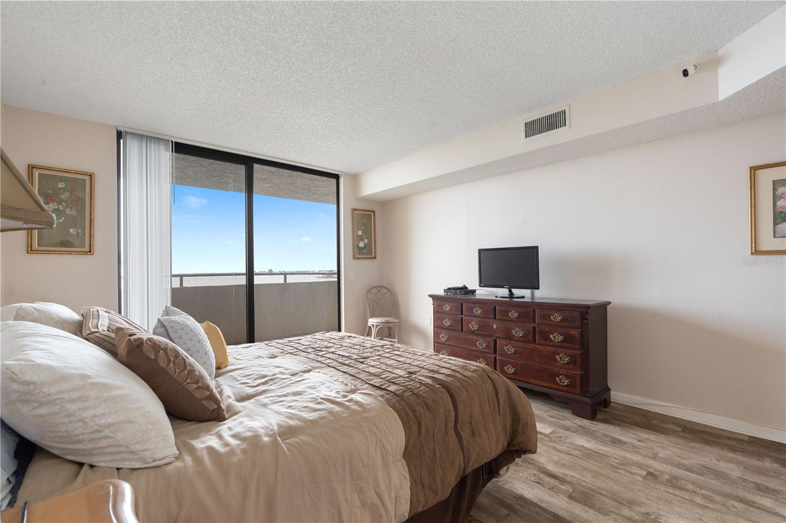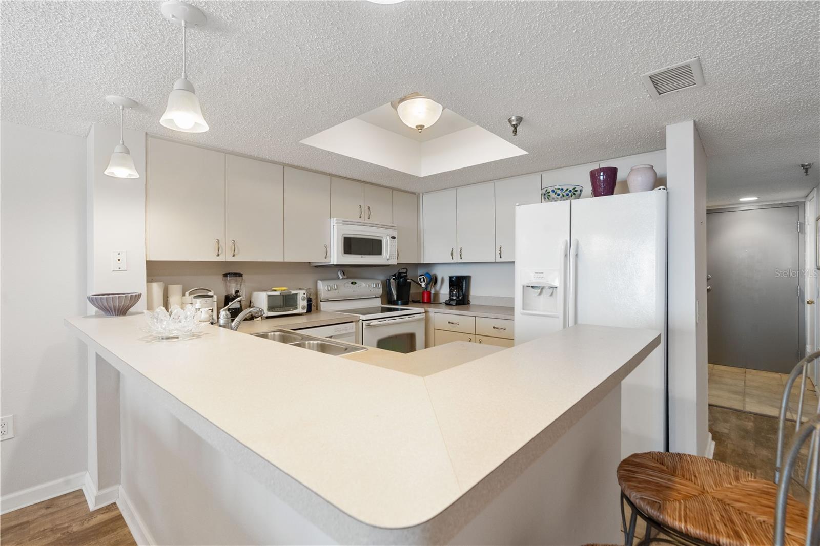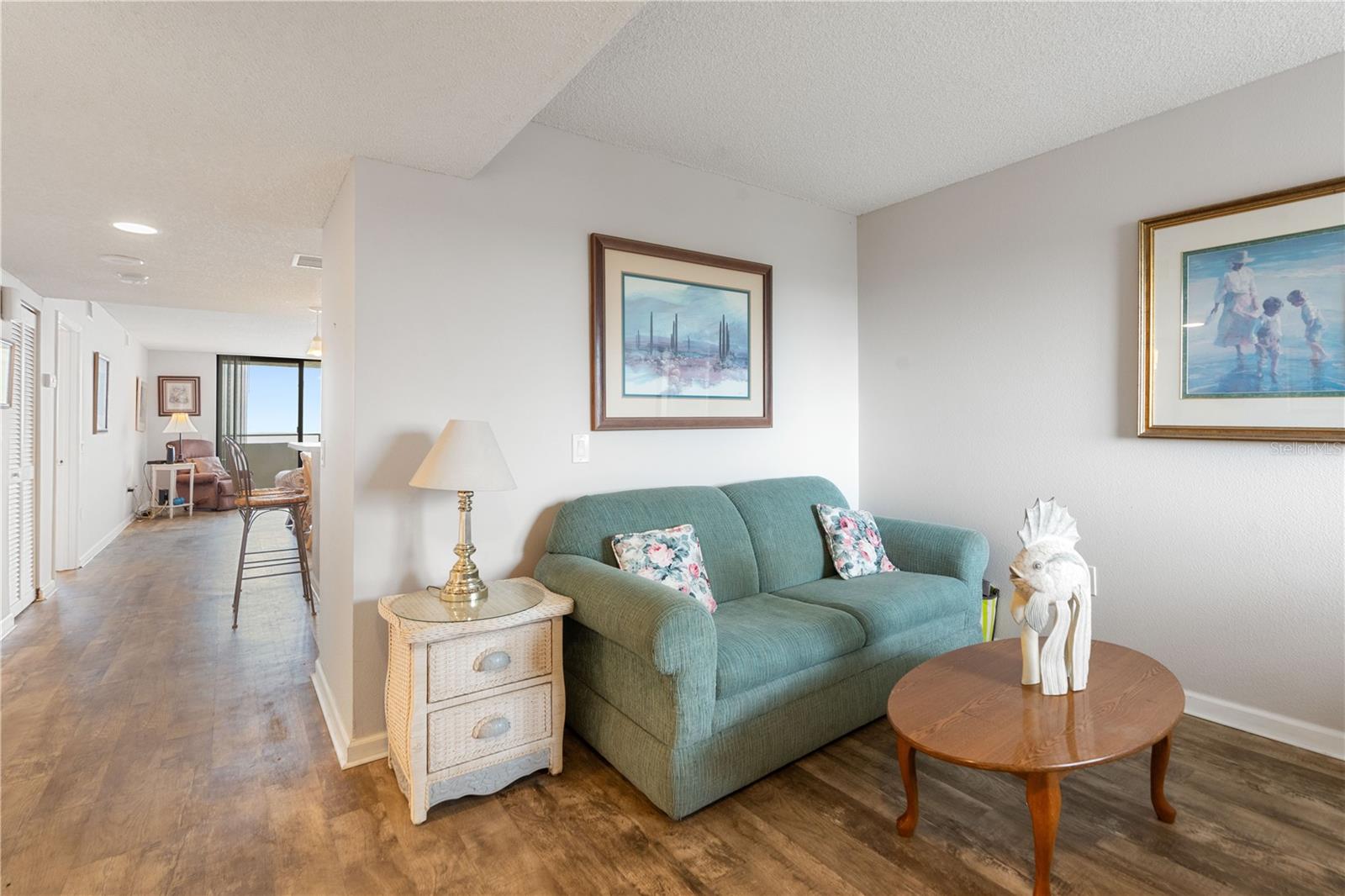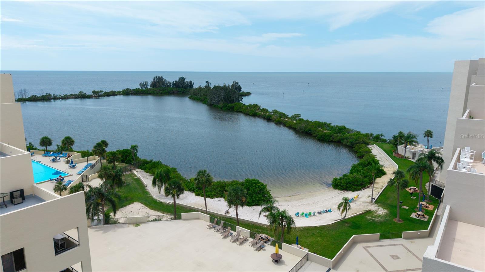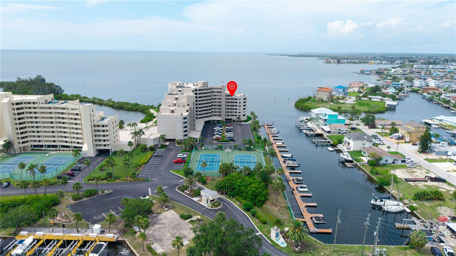 Welcome to Sea Ranch at Gulf Island Beach & Tennis Club—where luxury, leisure, and lifestyle come together in this impeccably maintained 2-bedroom, 2-bath waterfront retreat with a parking garage spot. Perched on the 4th floor, this stunning residence offers panoramic Gulf views from nearly every room, framed by expansive sliding glass doors that invite the outdoors in. Enjoy breathtaking sunsets from your private balcony, overlooking the tranquil lagoon and resort-style pool. The light-filled open-concept layout includes a bonus room at the front—ideal for a stylish home office or cozy den. The spacious primary suite showcases a newly updated bathroom with a step-in shower, double sinks, and custom storage. The guest bath has also been tastefully refreshed, featuring a soaking tub and shower combination. For your convenience, the unit includes a stackable washer and dryer. This exclusive guard-gated community offers more than just stunning views—it’s a vibrant coastal lifestyle. Residents enjoy access to tennis courts, pickleball, waterfront, and frequent social events. Whether you're looking for active recreation or quiet relaxation, there’s something for everyone to enjoy. Optional boat slips for purchase, on-site storage, storm shutters included, and close proximity to upscale dining, shopping, and endless Gulf Coast adventures—this is Florida living at its finest. Live where others vacation—your luxurious slice of paradise awaits.