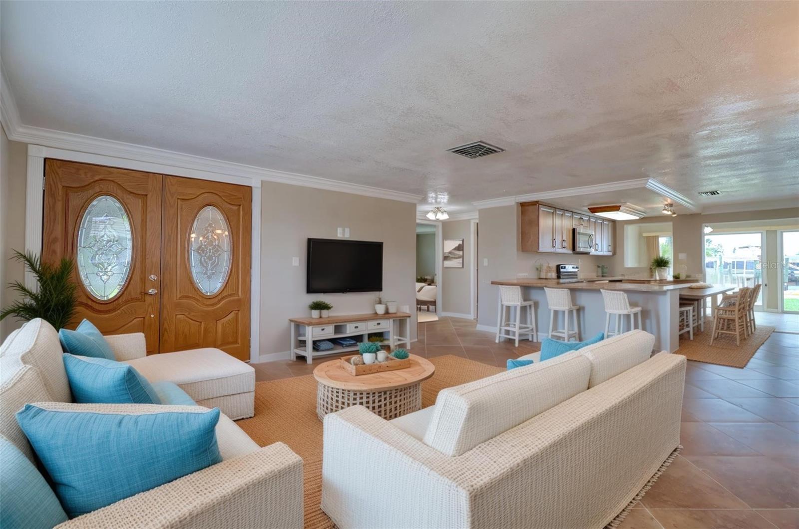 One or more photo(s) has been virtually staged. DIRECT GULF ACCESS with BEAUTIFUL LAGOON VIEWS and NO HOA! This 2-3 bedroom, 2 bathroom home is MOVE IN READY with NEW wood cabinets! NEW stainless-steel appliances and NEW quartz countertops with a large counter for entertaining. NEW interior and exterior paint! Sit back and relax in the family room with 2 NEW sliders to enjoy sunsets and water views. And a NEW ELECTRICAL PANEL! The 3rd room has a full bathroom so it could be the primary suite, an office or even rent it out because it has it's own side entrance! There is a built in storage closet outside for all your yard or boating equipment and a rear patio for cookouts. Located on a lagoon with no fixed bridges provides seamless access to the Gulf of America. Spend your days watching dolphins and manatees swim by or cast your line right from your backyard. Hudson Beach is a golf cart friendly coastal town just north of Tampa and Clearwater along the Gulf Coast of Florida. Here, recreational pursuits like fishing, boating and kayaking abound with coastal charm without the crowds. Tiki bars, restaurants, marinas, a public boat ramp and a small public beach with gorgeous sunset views are just a 5-minute golf cart ride away. Shopping and hospital are close by on Hwy 19 and just 15 minutes to the expressway for easy access to downtown Tampa and all the airports. Don’t miss this rare opportunity to own an affordable direct Gulf access home and your own coastal escape!