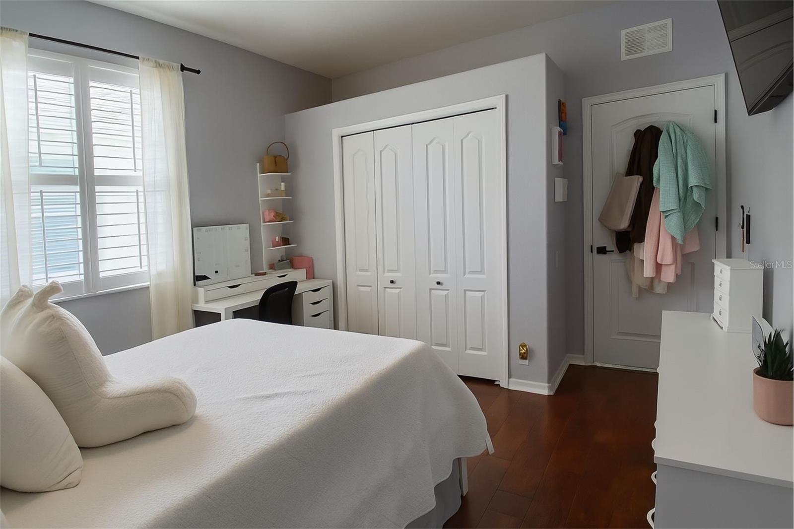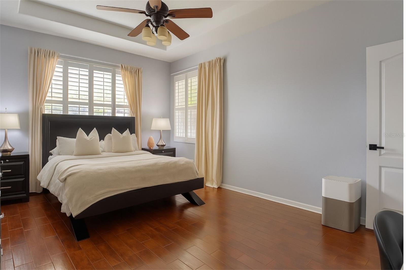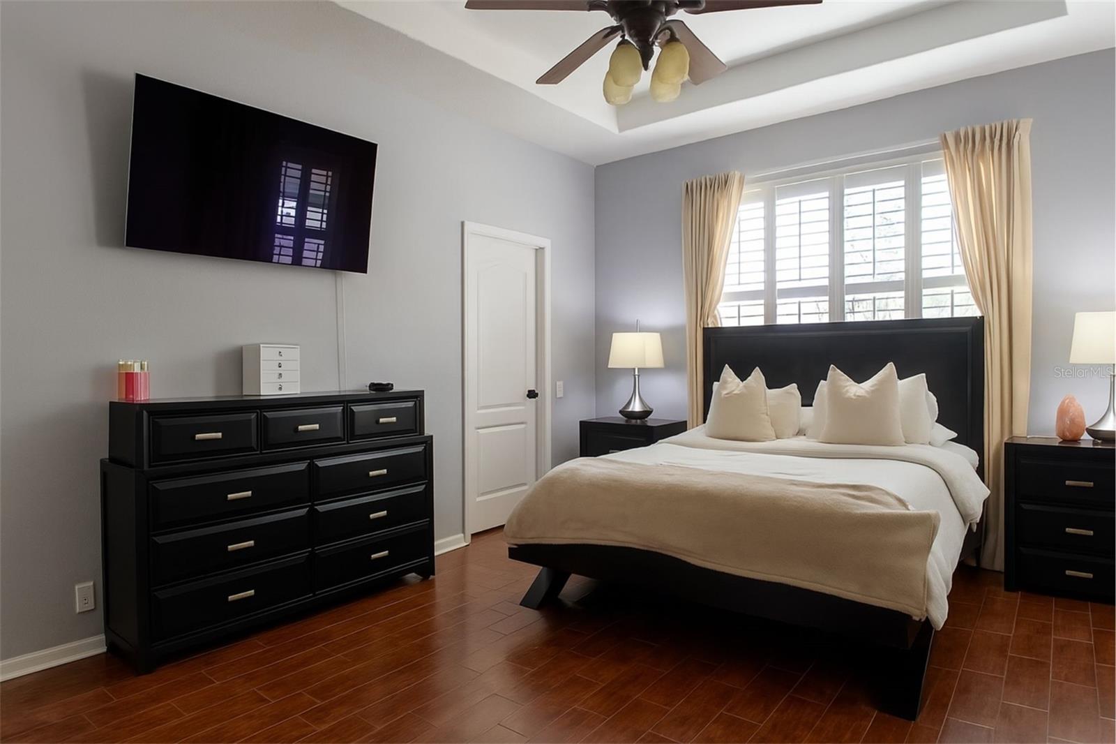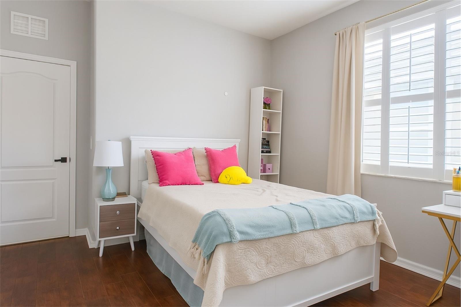One or more photo(s) has been virtually staged. Welcome to this beautifully upgraded gem in the desirable Highlands gated community of Hudson! Step inside to discover a formal living and dining space just off the entry — the perfect flex area to adapt as a home office, kids’ playroom, or second family room. High ceilings, timeless plantation shutters, and upgraded wood-look tile flooring run throughout, creating a cohesive and stylish feel. The heart of the home is a stunning, magazine-worthy kitchen featuring crisp white cabinetry, granite counters, sleek stainless appliances, a designer green subway tile backsplash, and a large prep island. An adjacent eat-in dining area boasts a modern chandelier and looks out to the backyard through sliding glass doors, blending indoor and outdoor entertaining with ease. The spacious primary suite includes an elegant tray ceiling, abundant natural light, and a relaxing ensuite bath with a soaking tub, separate glass-enclosed shower, and dual-sink vanity — all accented by plantation shutters and updated lighting for a fresh, spa-like vibe. Two additional bedrooms and a tastefully updated secondary bath provide plenty of space for family or guests. Step out to the oversized screened lanai, where stylish tile flooring, string lighting, and ample room for seating or grilling invite you to unwind in true Florida style. The backyard is partially enclosed with low-maintenance PVC fencing on one side and a brick community fence at the rear, adding a private, polished touch rarely found in comparable homes. Just a short half block stroll brings you to the community pool, enhancing the resort-style amenities. Additional peace of mind comes with a newer AC system (2018), plus the seller is willing to replace the original 2005 roof prior to closing with an acceptable offer — no surprises for the next owner. Ideally located just off Little Road, you’ll have quick access to shops, dining, top-rated schools, parks, and commuter routes for an easy lifestyle. This move-in-ready home truly checks every box: flexible spaces, high-end finishes, and a prime gated community location. Don’t miss the chance to make it yours — schedule your showing today!