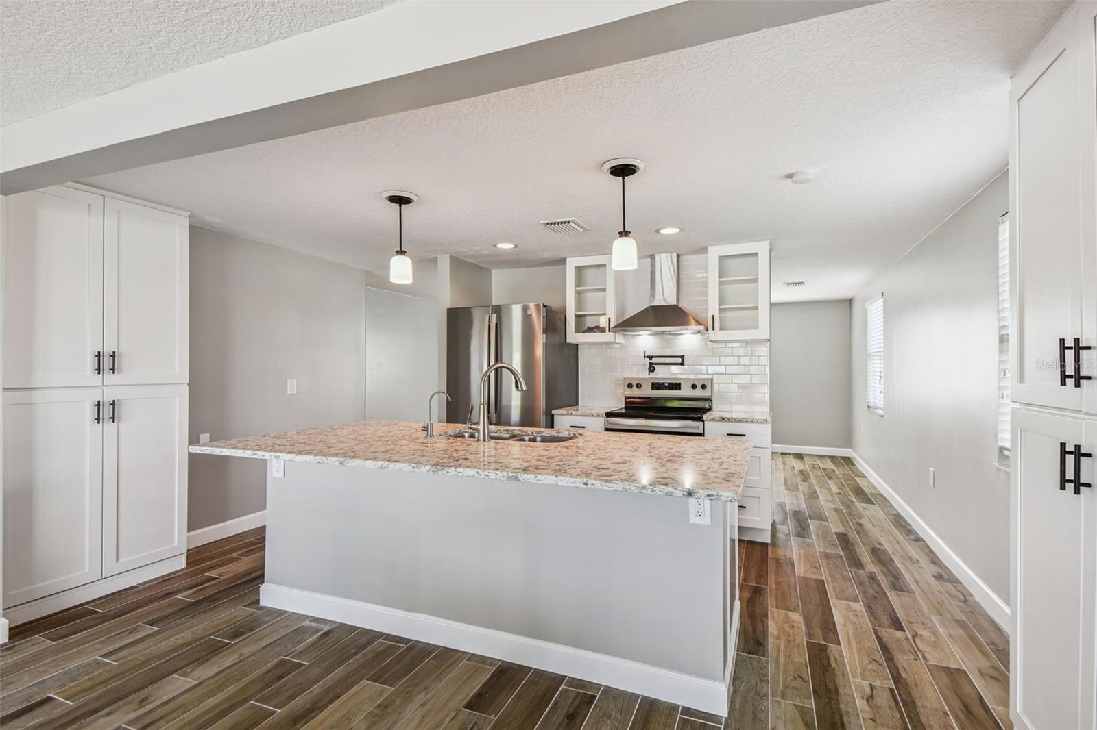Freshly remodeled and ready for fun, this 3-bedroom, 2-bath waterfront gem offers direct Gulf access right from your backyard. The modern, open kitchen shines with soft-close cabinets, a big quartz island, and brand-new stainless steel appliances—perfect for cooking and gathering. Wood plank tile floors flow throughout, and the stacked stone wood-burning fireplace adds a cozy touch. A large 3-panel sliding glass door opens to the patio and newly fenced yard, ideal for entertaining.Home was fully remediated after hurricanes. Electric has been completely upgraded. Newer roof and AC (2019) with a brand new water heater and a year old water softener and reverse osmosis system. This home is easy to own! Skip the marina crowds with your own private boat ramp! Just a mile from Sam’s Beach Bar and Hudson Beach—this is Florida living at its best!