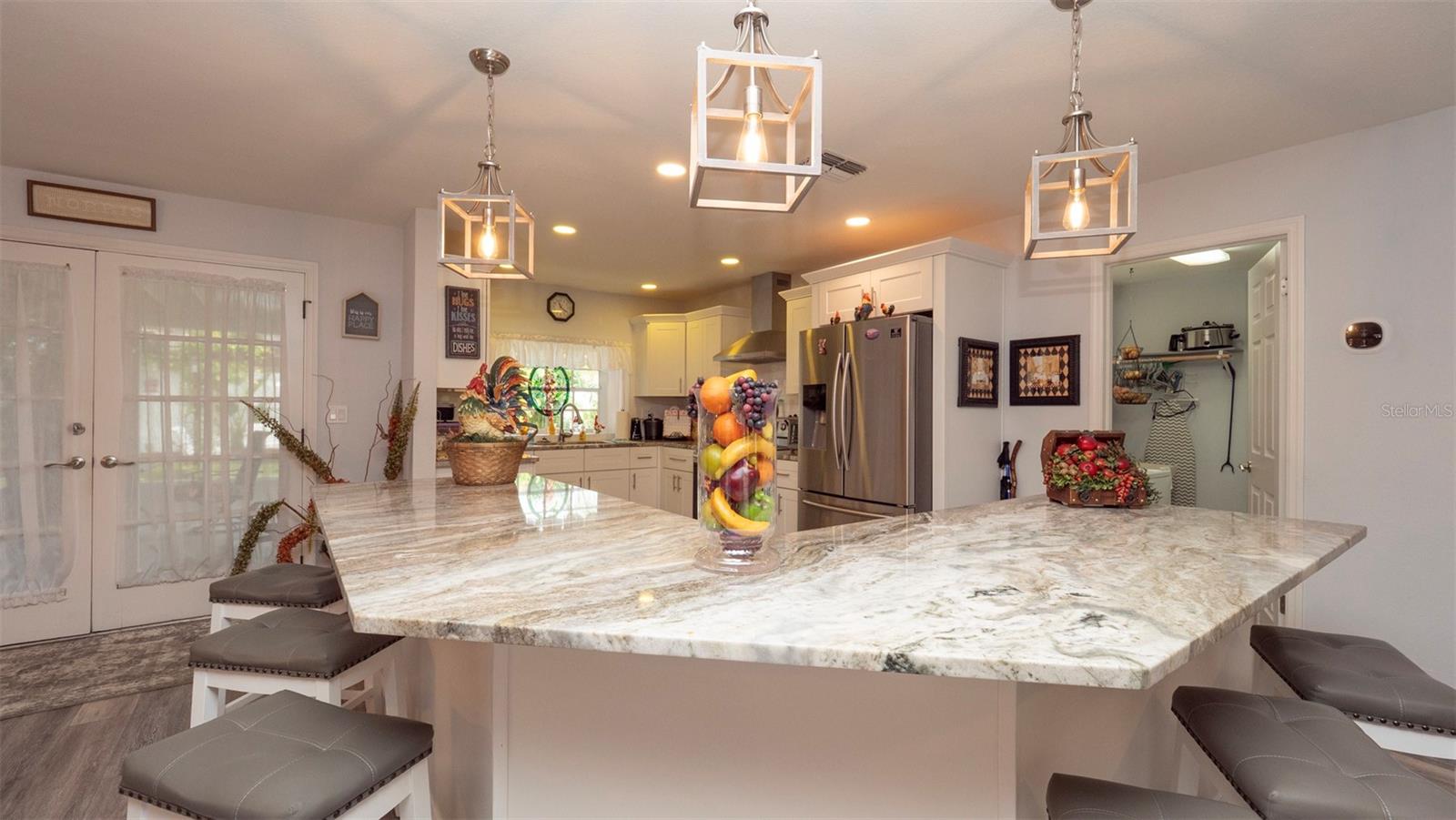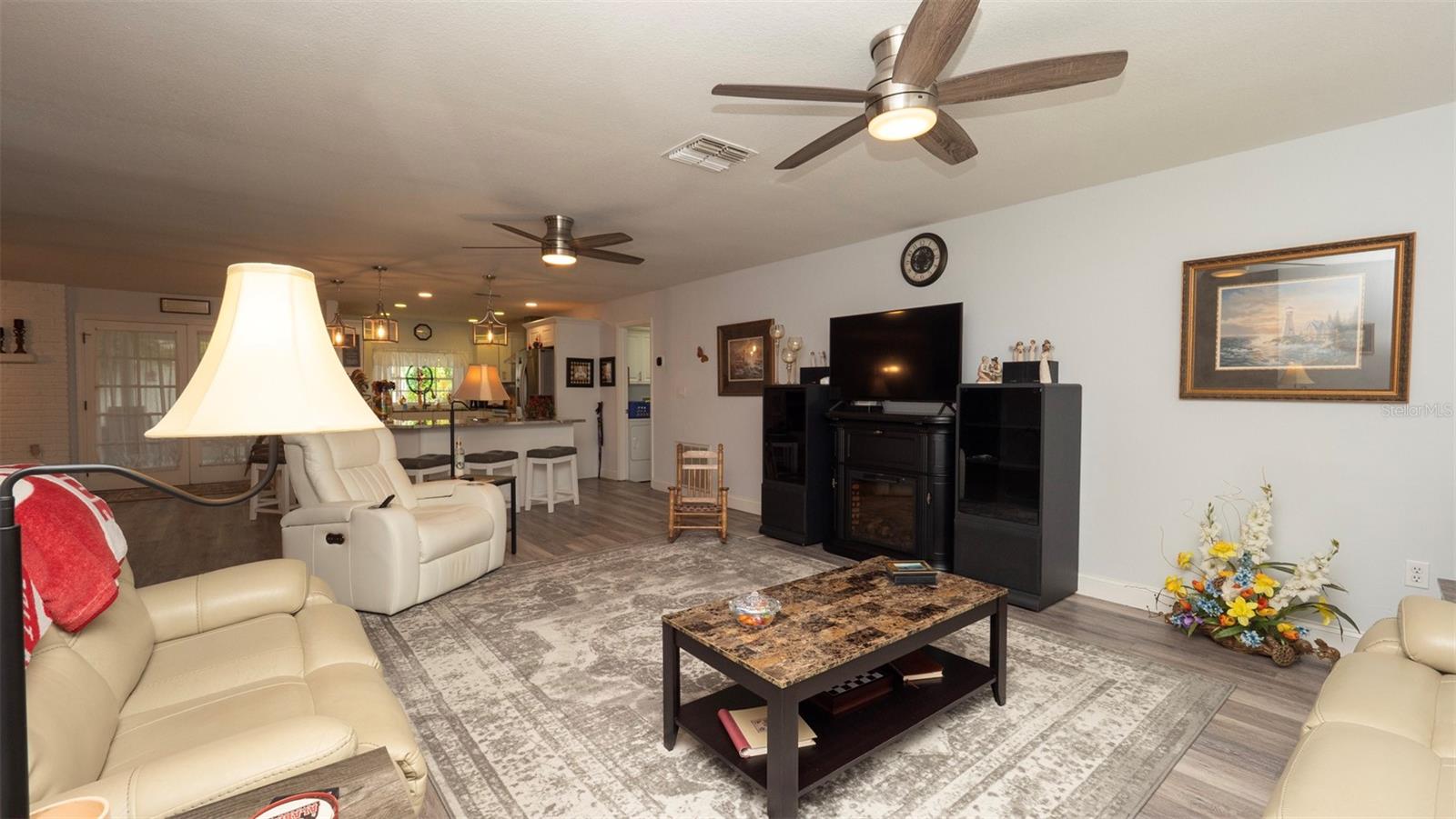 Welcome to your dream home in the heart of charming Hudson, FL! This beautifully updated single-family residence offers 3 spacious bedrooms, 2 modern bathrooms, and 1,787 square feet of comfortable living space. You'll love the convenience of the attached 1-car garage, providing plenty of room for both parking and storage. Step inside and be greeted by a bright, open layout featuring an upgraded kitchen and bathrooms, all adorned with elegant granite countertops. The kitchen includes generous counter seating—perfect for casual meals, entertaining, or simply enjoying your morning coffee. Stylish vinyl plank flooring runs throughout the main living areas, while the two guest bedrooms are comfortably carpeted for added warmth. Enjoy Florida living at its finest with not one, but two screened porches—front and back—as well as a spacious lanai, ideal for relaxing or hosting guests. The fenced yard adds a touch of privacy and charm to your outdoor space, featuring a new 6' vinyl privacy fence installed in August 2021. This home has seen a number of recent upgrades for your peace of mind, including a new A/C unit (September 2020), new roof (August 2021), and new 6" rain gutters installed in June 2023. A cozy wood-burning fireplace adds a touch of warmth and character—perfect for cool evenings. This home combines comfort, style, and functionality—all in a welcoming neighborhood close to everything Hudson has to offer. Don't miss your chance to make this inviting home yours—schedule a private showing today!