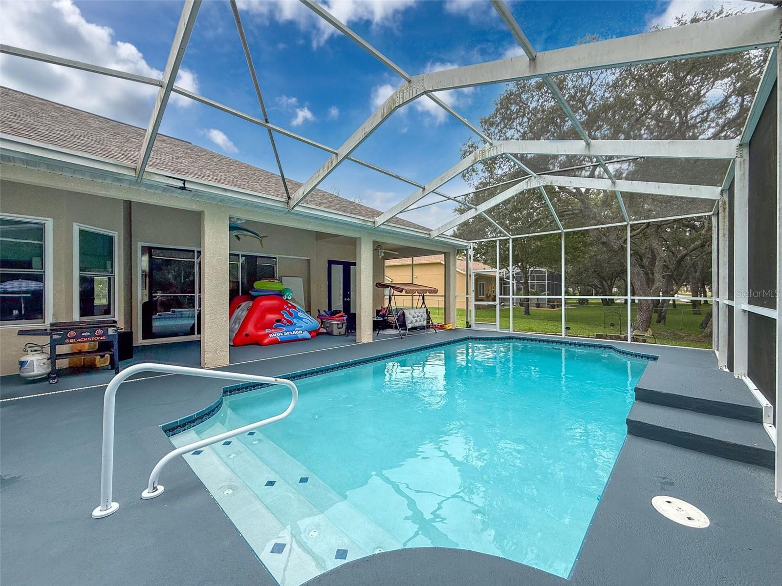 This charming 3-bedroom, 2-bathroom home with an additional office that can easily serve as a 4th bedroom is situated on a spacious lot of over half an acre in a quiet cul-de-sac. Featuring a newer roof and a resurfaced pool, the home is move-in ready and offers a perfect balance of comfort, style, and convenience. The open floor plan fills the interior with natural light, creating a bright and airy atmosphere ideal for both family living and entertaining. Step outside to your own private backyard oasis, complete with a sparkling pool that's perfect for relaxing or hosting guests. A 2-car garage provides ample space for parking and storage. Ideally located, the home is just minutes from hospitals, medical facilities, dining options, and offers quick access to the interstate for an easy commute to Tampa. This property combines peaceful suburban living with proximity to everything you need—schedule a showing today and make this house your home!