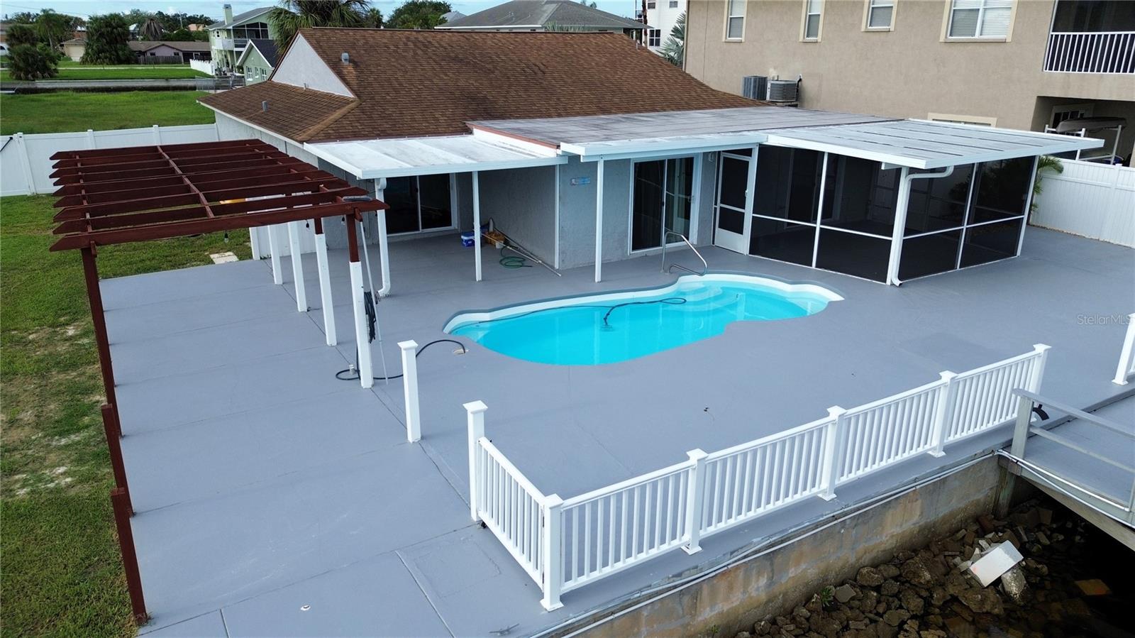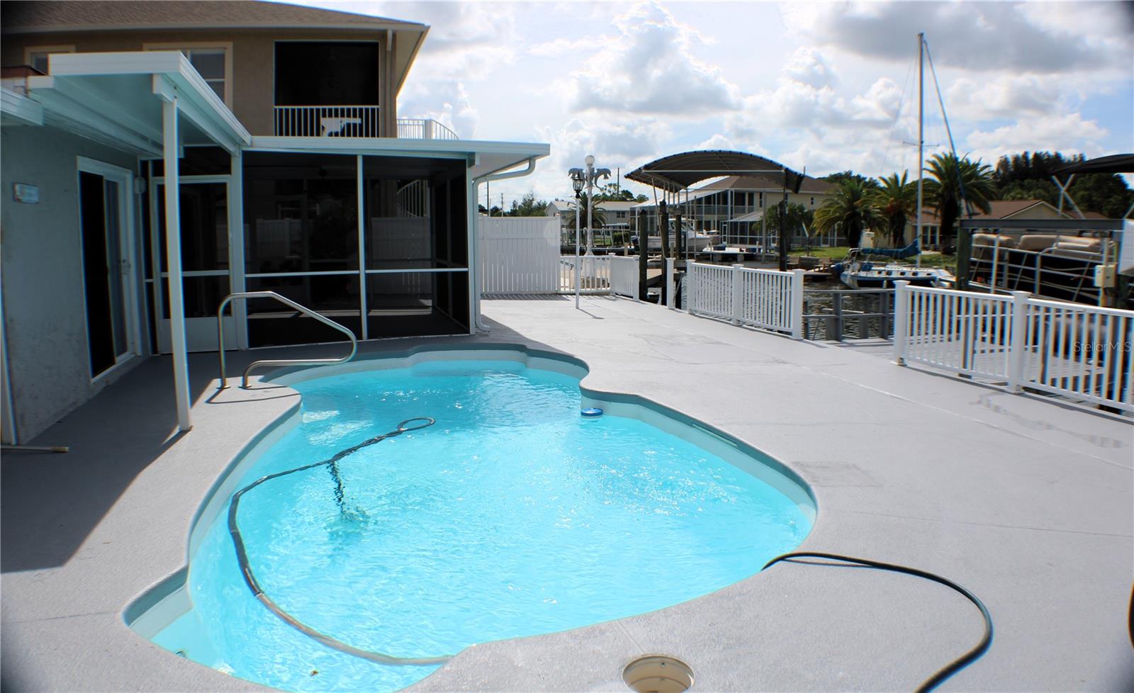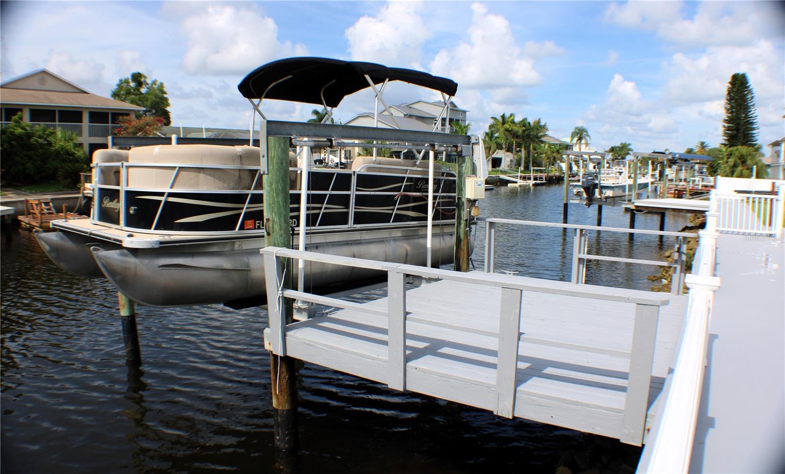 Embrace the ultimate boater’s lifestyle with DOUBLE LOTS, DOUBLE BOAT LIFTS, and DOUBLE the WATERFRONT FOOTAGE! (approximately 120 feet of sea wall!) This charming 2 bedroom, 2 bath POOL home will become your private piece of heaven. Step into a bright, open floor plan that offers effortless flow and modern comfort. Beautiful fluid tile flooring runs throughout enhancing the spacious feel and tying each room together seamlessly. The heart of the home is the beautifully appointed kitchen featuring stainless steel appliances and a granite island, perfect for gatherings, prepping or serving up dinner. Step out to the screened in patio, your own private retreat to enjoy ocean breezes, morning coffee or sunset cocktails. Around the pool there is plenty of space to sunbath, entertain and BBQ (an additional covered porch off the master bedroom offers shaded shelter as well as screened patio) or take a refreshing dip in the pool after a relaxing day on the water. For the boater in the family there are TWO BOAT LIFTS, (as well as an additional floating dock) each capable of supporting up to 10,000 lbs, you’ll have effortless water access right from your backyard. Each boat lift conveniently has water and power to make post boating clean up a snap. The home sits on a direct Gulf-access saltwater canal where you can be in the Gulf of America in just a few minutes. Love Florida wildlife? Don’t be surprised to see dolphins or manatees right in your backyard canal! The expansive backyard spans a second, fully privacy-fenced lot—offering a rare blend of space and seclusion. Whether you envision a garden, fire pit or just need room to store your boat, trailer or toys, the possibilities are truly endless. It's a private coastal retreat with all the room you need to live the lifestyle you’ve been dreaming of. If you don’t need the added space, the lots can be DIVIDED and you can sell it or BUILD on it, the choice is yours.