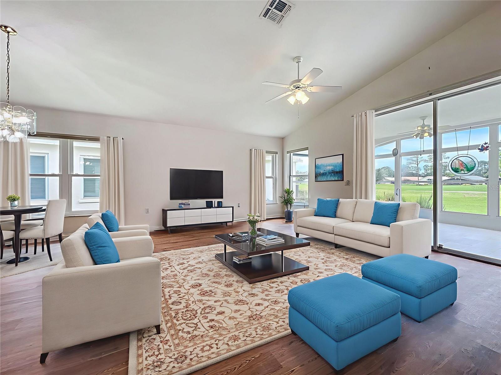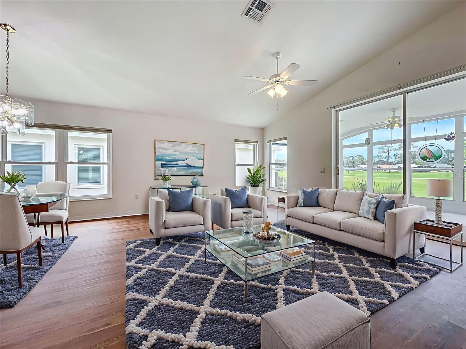 One or more photo(s) has been virtually staged. RARE FIND! 3 BEDROOMS | 2 Bath | 2-Car Garage | Versatile Florida Room with Golf Course and Conservation Views! Don’t miss this exceptional opportunity to own a beautifully upgraded 3-bedroom, 2-bath home with a spacious 2-car garage and a massive Florida room (12X20 heated/cooled) overlooking the 11th hole—perfect for morning coffee, kicking back with a book, hosting guests or sunset relaxation. This MOVE-IN READY home features recent major updates (OVER $30,000) including a 2024 ROOF and HVAC system, newer hot water heater, new refrigerator, and new washer and dryer. The interior shines with new double-pane windows, new wood laminate flooring in the great room, and thoughtful upgrades like Phantom Screens at both the front entry and garage, Hunter Douglas block-out shades, and high-rise commodes. The primary suite includes an updated walk-in shower that feels reminiscent of a rainforest spa, while the home also features an in-wall pest control system, water softener and filtration system with reverse osmosis to the refrigerator, and gutters for added protection. X Flood Zone! Located in the sought-after Heritage Pines Community, this home offers completely maintenance-free living within an active 55+ gated community. Nestled along Florida’s scenic Nature Coast, Heritage Pines is just 45 minutes north of Tampa International Airport and is known for its peaceful, serene setting rich with natural beauty. The community is proud to be named a “Neighborhood for Nature” by Audubon International, offering a lifestyle surrounded by lush greenery and vibrant wildlife. Heritage Pines is a secure and financially sound community of 1,406 homes, featuring a private, resident-owned golf course, a spectacular clubhouse, and a full calendar of events and activities. Whether you're into golf, fitness, social clubs, or simply enjoying the tranquil surroundings, there’s something here for everyone. This is truly a rare gem in one of Florida’s most desirable 55+ resort-style communities - The Florida Life Awaits!