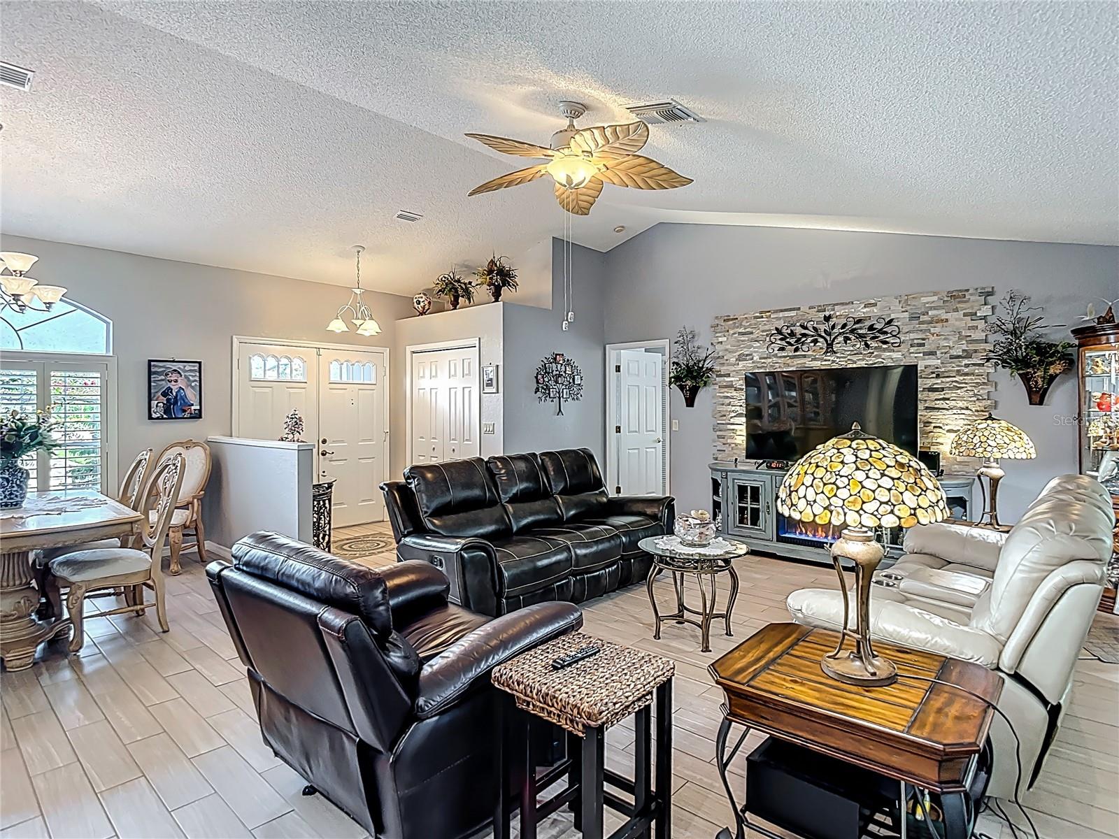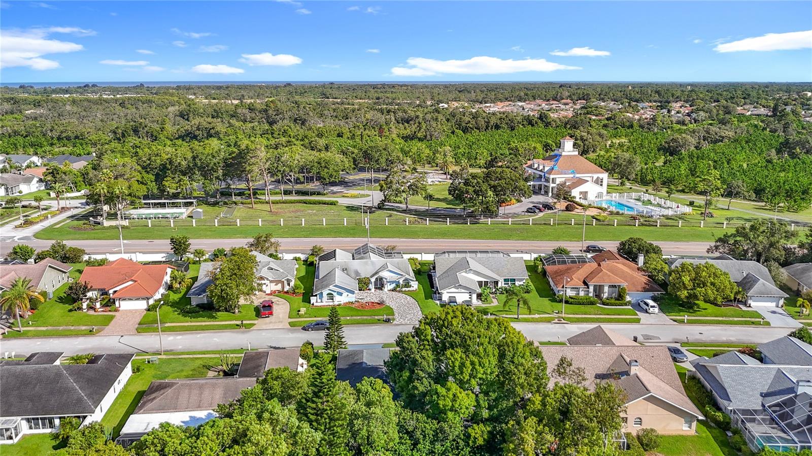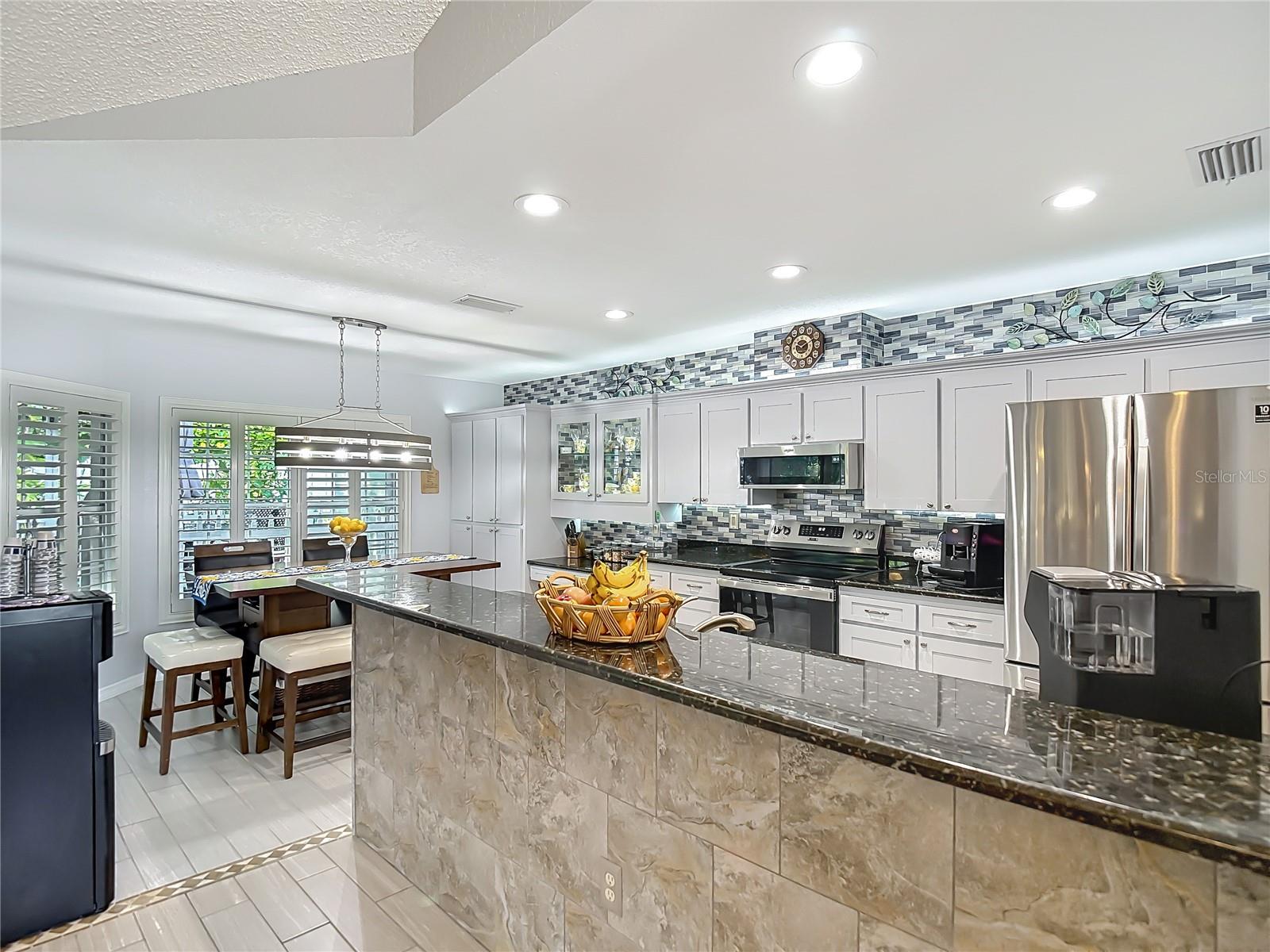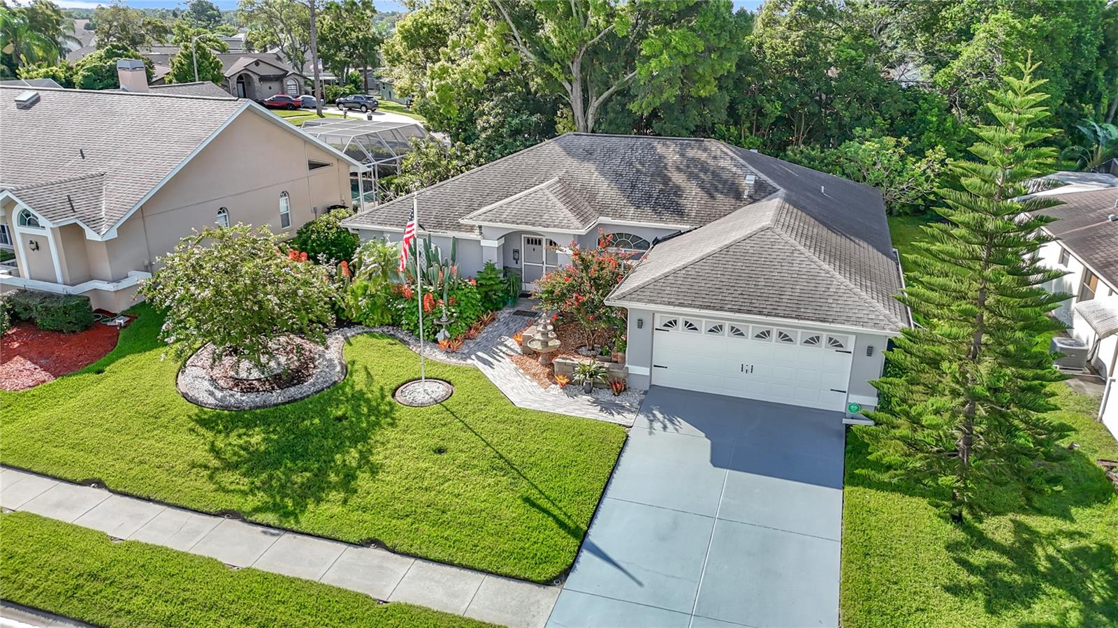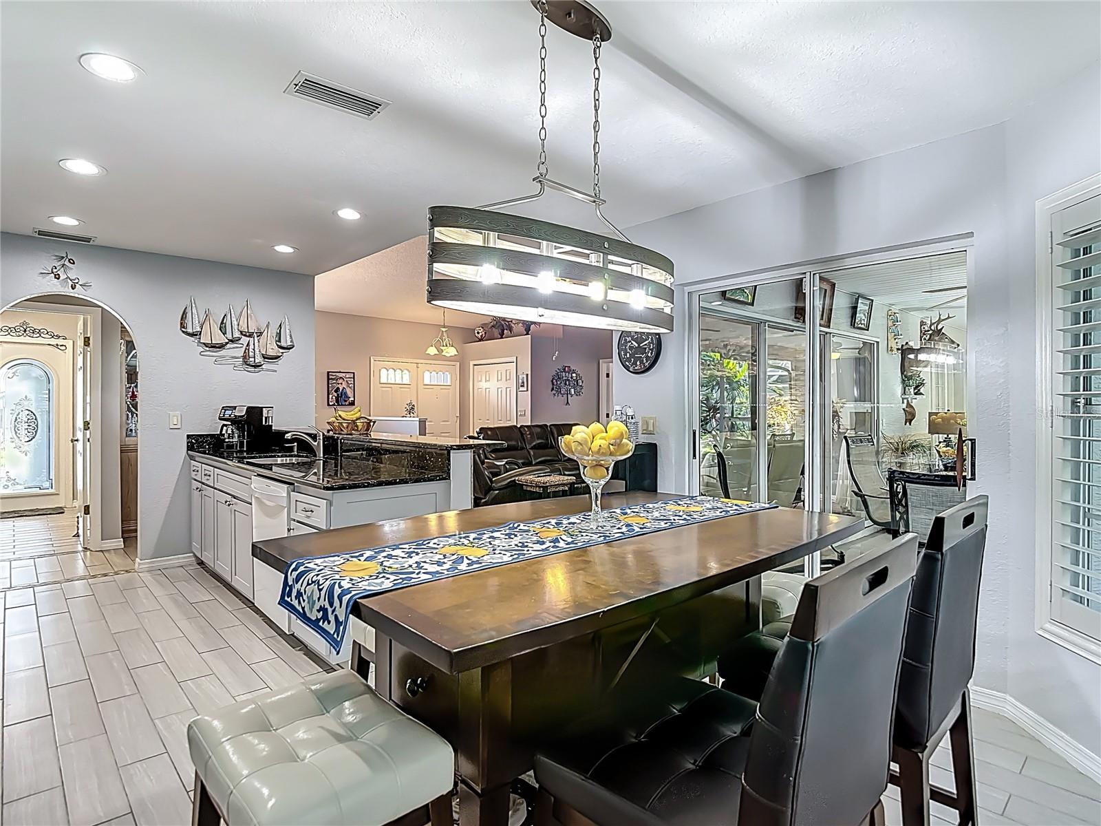 Welcome to this stunning, move-in ready single-family home nestled in the desirable Barrington Woods community. Featuring 3 spacious bedrooms, 2 full bathrooms, and a 2-car garage, this residence has been tastefully updated throughout for modern comfort and style. Step inside to discover elegant porcelain tile flooring through the entire home. The open-concept layout offers a bright and airy feel, with a thoughtfully designed kitchen showcasing granite countertops, a convenient breakfast nook, and views overlooking the great room—perfect for entertaining and everyday living. A separate formal dining room adds space for special gatherings. Laundry room inside with new washer 2026. Enjoy the Florida lifestyle year-round with a screened lanai that opens to a shaded backyard deck, creating the perfect outdoor retreat for hosting friends or relaxing in the evening breeze. Barrington Woods offers low HOA fees of just $190 a quarter and amenities including a community pool, lighted tennis and pickleball courts, and a clubhouse currently being renovated. The community gym, overlooking the sparkling pool, adds even more convenience to your active lifestyle. Centrally located near top-rated hospitals, beautiful Gulf Coast beaches, shopping, dining, and both Tampa and St. Pete/Clearwater International Airports & Veterans/Sunshine Parkway (589) this home offers the perfect blend of comfort, style, and accessibility. Don't miss your chance to own this beautifully updated home in one of the area's most sought-after neighborhoods!