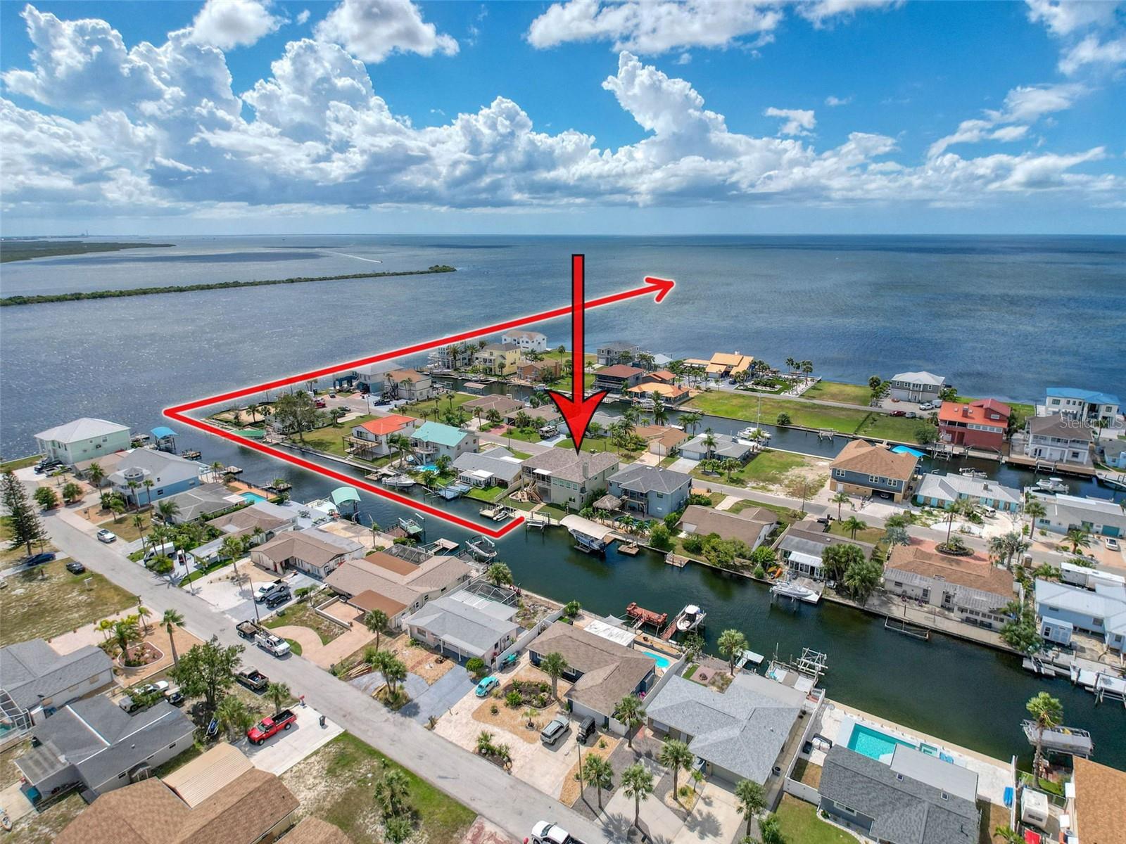This amazing waterfront home is captivating from the moment you pull into the driveway. The beautiful architecture compels you to go inside. Once you pass through the new hurricane front doors and step up the amazing grand staircase you will encounter 2,527sqft of luxurious Florida living. All rooms have 12ft ceilings and beautiful ceramic tile flooring! Open concept living starts with the natural light shining through every window and door in this amazing home starting in the living room welcoming you at the top of the stairs. Featuring sliding doors to the screened-in porch where you can enjoy the sunrise while sipping your morning coffee and taking in the awesome views of the waterfront in your own backyard. There are 2 archways to enter the eat-in-kitchen that features stainless steel appliances, quartz countertops, soft close drawers, dual sinks, new plumbing and garbage disposal, crown molding, breakfast nook for 4, space for a table of 6 and a sliding door to the screened-in porch. The huge family room features a comforting wood burning fireplace, perimeter shelving and 4 large windows with views of the deep-water canal. The formal dining room boasts crown molding, a beautiful halfmoon window that sits over a sliding door with a hurricane awning that leads out to the balcony for your private viewing of the sunset over the GULF OF AMERICA each and every evening. There are 3 bedrooms (split plan). The large primary bedroom features a huge walk-in closet, perimeter shelving, many windows and a sliding door to the screened-in porch overlooking the water. The primary bath features a walk-in shower, dual sinks, a separate make-up vanity with an abundance of natural light. There are 2 good sized bedrooms on the other side of the home that share a second full bath with a walk-in shower. Take your well-maintained with battery backup hydraulic elevator down to the 1st floor where you will find an oversized garage with brand new hurricane garage doors that can accommodate 6 vehicles or more allowing plenty of room for all of your toys. There is room for storage and a workbench as well. Also, on the 1st level you will find a large bonus living space with a large bedroom, full bath, sitting area with hurricane slider/awning to the paved backyard patio and firepit with views of the deep-water canal. This is a great space for guests, a home office or an in-law suite. On the bulkhead is a boater’s paradise with a huge stationary dock, a 10,000-pound boat lift, a floating dock, a jet ski dock and at night there is underwater lighting to view the sea life up close. Too many updates! (listed in separate attachment). The only way to truly view all that this beautiful home has to offer is in person. Call for your private showing! All your local restaurants like Inn on the Gulf, Sam's Beach Bar, Ollie’s on the Beach and Get Hooked are a 5-minute drive. Sunwest Park is a local waterfront attraction that is nearby as well. The Bayonet Point Hospital, many local supermarkets and the Port Hudson Marina are all located right here in Hudson, Florida. The Tampa Bay Airport, Tampa Bay, Clearwater Beach, Homosassa Springs, Tarpon Springs, Pine Island, Honeymoon Island and Weeki Wachee are all under an hour away. Fish & crab off your own lighted dock or take a kayak, jet ski or boat ride to the open Gulf where the fish are plentiful, the fun is never ending and the sunsets are always awesome! COMES COMPLETLY FURNISHED (minus personal items) for the right offer!