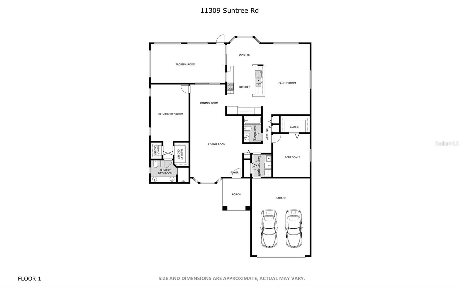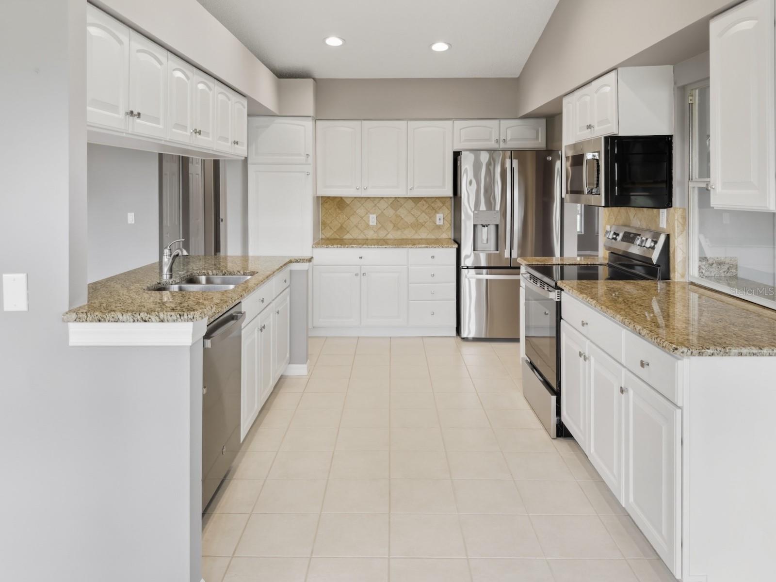 Seller Offering to pay the $2,100 New Resident Community Buy-In Fee with an accepted offer. Welcome to this beautifully updated home in the highly desirable Heritage Pines 55+ Golf Community. Offering over 2,100 square feet of living space and no rear neighbors. Inside, soaring cathedral ceilings enhance the open living and dining room combination, while fresh interior paint, new lighting, and modern ceiling fans throughout create a bright, inviting atmosphere. Most of the home features newer vinyl plank flooring for a seamless and contemporary look. At the heart of the home, the remodeled kitchen showcases granite countertops, new cabinetry with stylish hardware, brand-new stainless steel appliances, a breakfast bar, and a cozy dinette, all overlooking the spacious family room. The split-bedroom layout provides privacy, with the primary suite offering dual walk-in closets and a beautifully updated en-suite bathroom with a new custom dual sink vanity with granite countertops. The guest wing includes a large bedroom with walk-in closet, a built in queen-size Murphy bed, and a refreshed guest bath. At the rear, a large Florida room with sliding doors from both the dinette and dining area provides the perfect spot to enjoy serene views of the green retention area and partial golf course vistas. Recent updates add peace of mind, including a roof (2018), AC(2020) with new blower motor(2025), and a brand-new water heater (2025). A golf cart is also included. Heritage Pines residents enjoy a true resort lifestyle with an 18-hole championship golf course, clubhouse with restaurant and bar, pool and spa, fitness center, and courts for tennis, pickleball, and bocce. HOA fees cover cable, internet, lawn care, and irrigation for easy, low-maintenance living. Don’t miss the opportunity to make this exceptional home yours—schedule your private tour today!