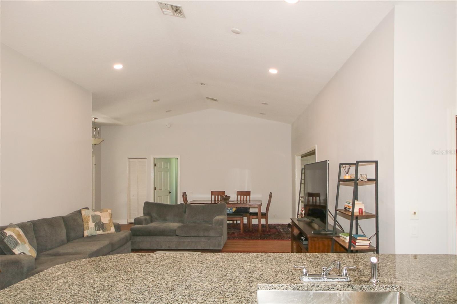Welcome to this truly one-of-a-kind 3-bedroom, 3-full bath home situated in the highly sought-after Estates community of Hudson! This home features an open and split floor plan, ideal for both comfortable living and entertaining. Perfectly positioned near the Clubhouse, you will have easy access to newly renovated recreational amenities and a stunning pool—making relaxation and fun just steps away from your front door. Step inside to find airy, lofty ceilings, elegant, recessed lighting, and an abundance of windows that fill each space with natural sunlight. The open-concept layout seamlessly connects the living areas, while neutral colors, laminate and ceramic flooring, and marble windowsills add refined touches throughout. The remodeled kitchen is a chef’s dream, boasting granite countertops with a breakfast bar, stylish new cabinets, and top-of-the-line stainless-steel appliances. Enjoy your morning coffee at the dedicated coffee bar, complete with a bar fridge and space for a dinette table that overlooks the tranquil backyard. A spacious storage area off the kitchen provides ample room for all your extra items. The family/dining room combo features a convenient coat closet and is perfect for hosting gatherings. For even more entertaining space, this area flows into a versatile bonus room and a full bathroom, ideal for guests or as an entertainment hub. Step out to the lanai, which offers acrylic windows, ceiling fans, and an outdoor patio area primed for grilling. Electrical is already set up for a hot tub, enhancing the outdoor experience! If you prefer a quiet work-from-home environment, the bonus room can easily be transformed into a spacious office. The split floor plan ensures privacy and convenience. Two bedrooms share a full bath equipped with a shower/tub combo, and one bedroom features a pocket door for direct bathroom access. Storage is plentiful, with an enormous walk-in closet, a linen closet, and an oversized linen/storage closet located near the second full bath. The primary suite is tucked away on the opposite side of the home, offering its own walk-in closet and a luxurious en-suite bathroom. The en-suite boasts dual vessel bowl sinks, a step-down ceramic tiled shower with recessed lighting, and plenty of space to unwind. Ceiling fans installed throughout the home for year-round comfort, dual-paned windows for noise reduction and energy efficiency, marble windowsills and elegant fixtures, open and split layout for flexible living arrangements Enjoy all the perks of living in The Estates, with close proximity to the Clubhouse’s newly renovated recreational facilities and swimming pool. Whether you prefer family gatherings, quiet evenings, or hosting friends, this home’s unique floor plan is designed to meet your needs. Don’t miss your opportunity to own this truly exceptional home in Hudson. With its distinctive features, modern upgrades, and unbeatable location, this property is one in a million! Call today for your showing!