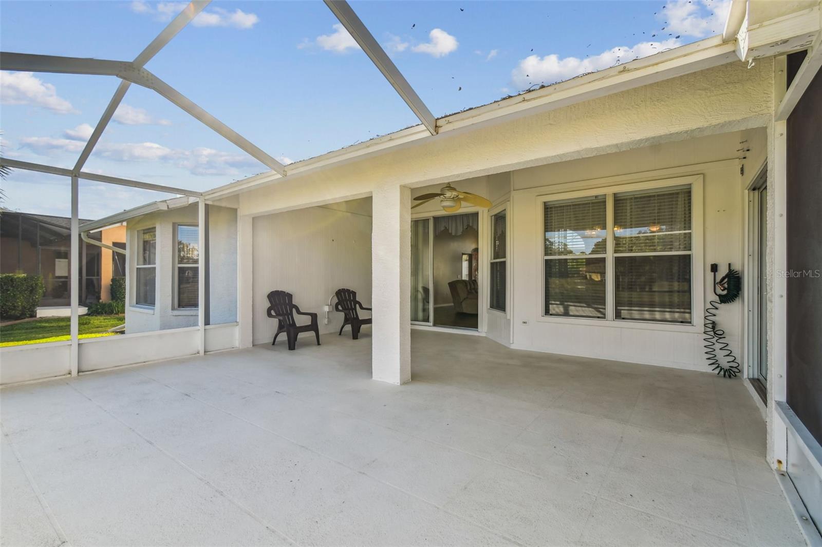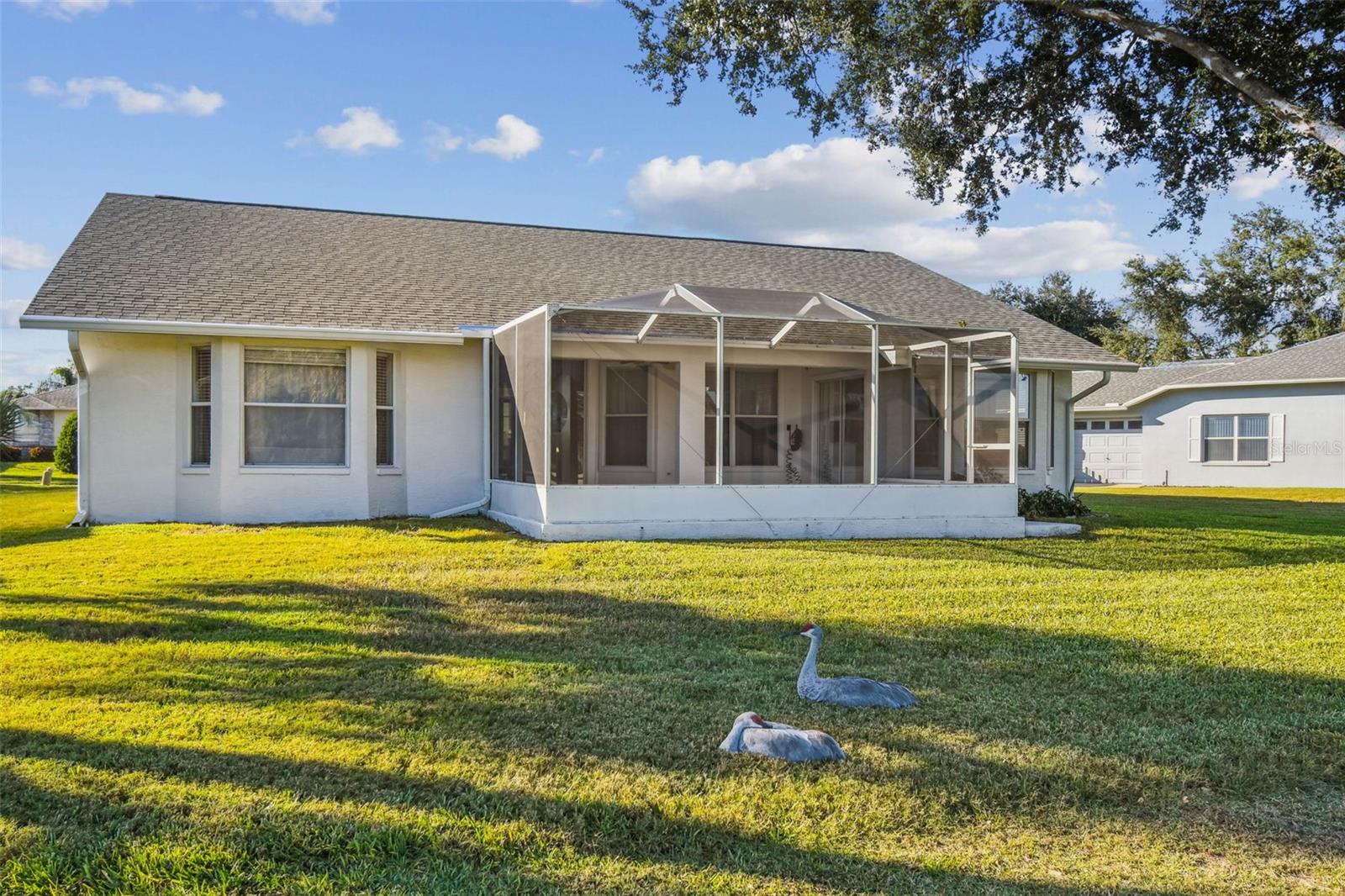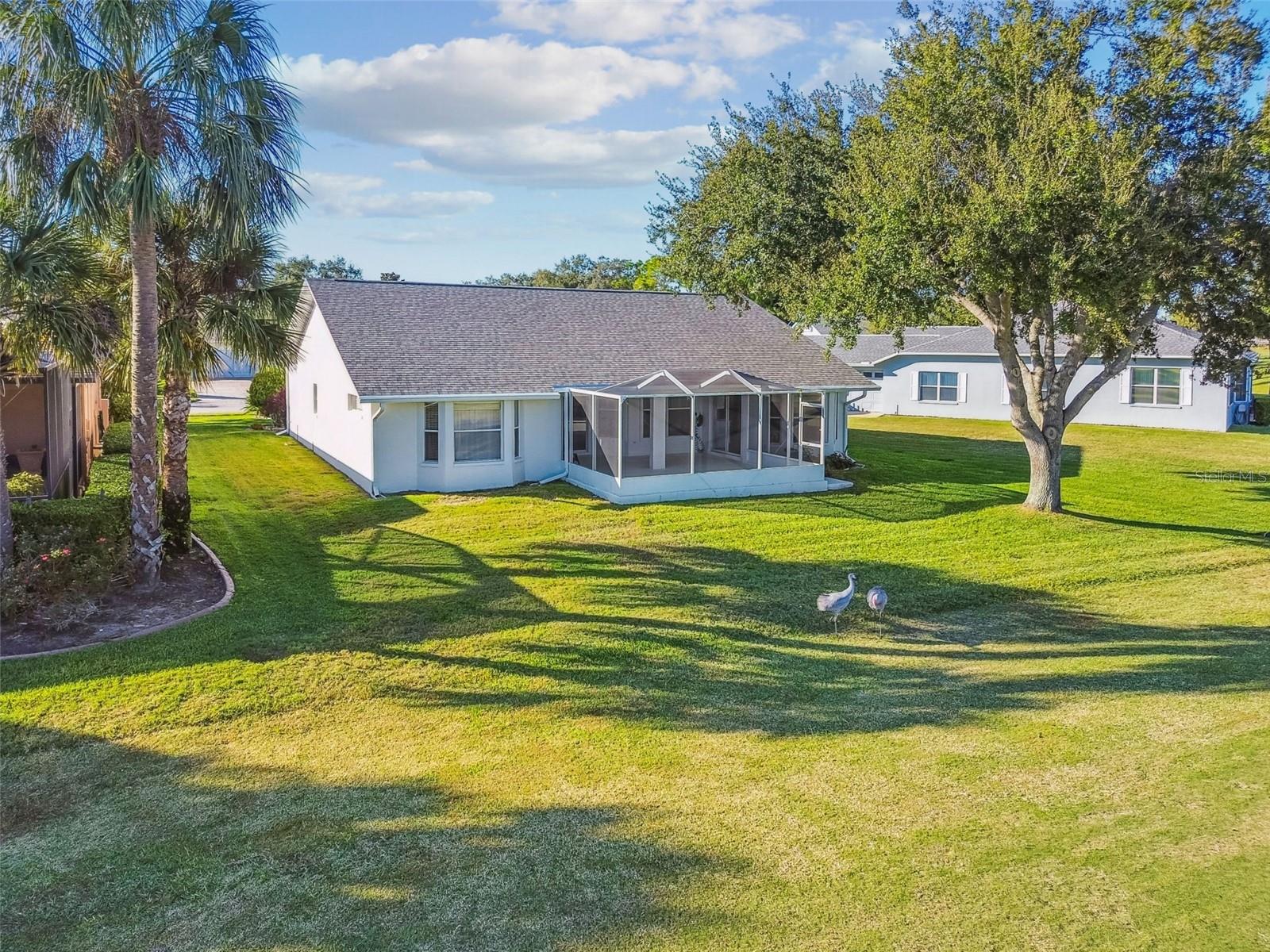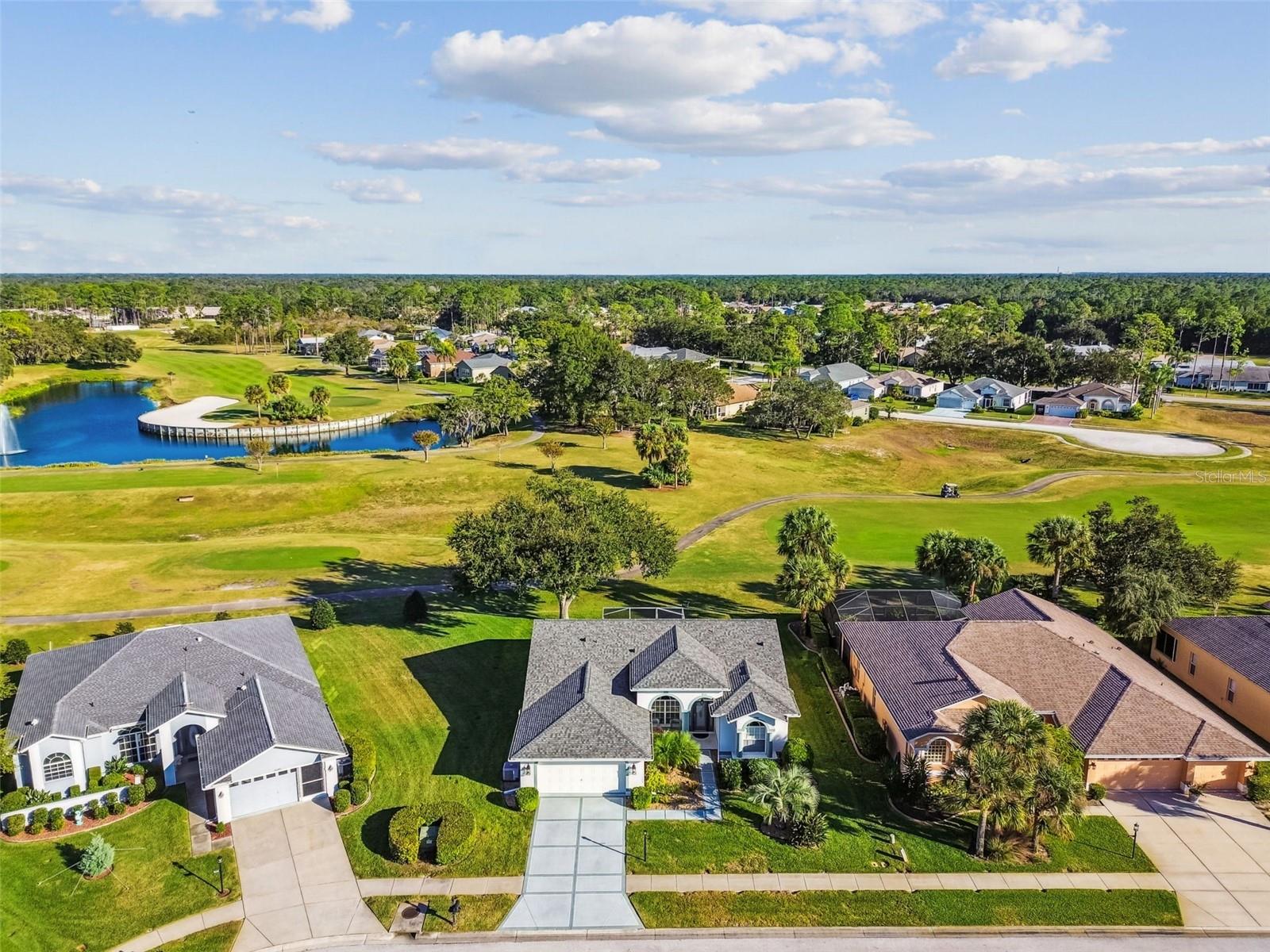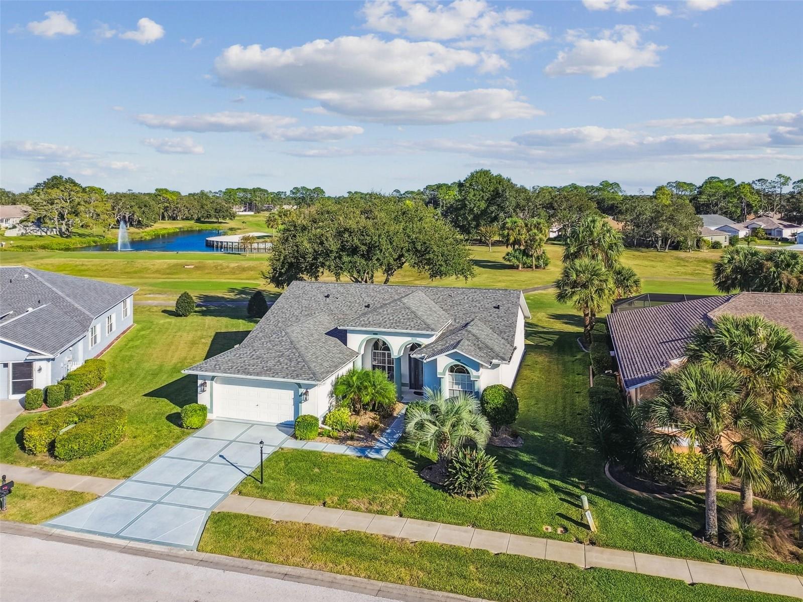 This Hampton Home (C. Rutenberg Estate Design) has been Renovated & Up-Dated and Shows like a Model. Located in the Area's Premier 55+ Community of Heritage Pines and sits at the end of a cul-de-sac with Golf Course Frontage to the 10th Hole--Views of Illuminated Fountain and 18th Hole....just steps to the Spectaular Club House. Highlights Include: New Kitchen(2024) including Quartz Countertops, Marble Backsplash, Under and Above Cabinet Motion Sensitive Lighting; Extra High Cabinets with Crown Molding, Soft Close Doors/Drawers, Spice Cabinets, Super Susan, Pantry with Pull Out Shelves; New High End GE Stainless Steel Appliances; Deep Sink with Touchless Faucet; Beverage Refrigerator; Dishwasher w/Stainless Steel Interior. GlassTop Stove with Self-Cleaning Oven Convection Settings & AirFryer; Microwave with Sensor Cooking & Steam Cleaning. Master Bath w/Garden Tub, New Shower w/Glass Enclosure/Grab Bars, Waterfall Shower Head, Granite Counter Tops, Two Medicine Cabinets and Recessed Lighting with Nightlights. Guest Bedroom with Walk-in Closet and Full Bathroom with Tub, Quartz Countertop, Kohler Comfort Height Toilet. Laundry with LG Washer and Dryer plus Stainless Steel Utility Tub. Roof - 2022, Water Softener - 2022, New Hot Water Tank 12/2025, Radiant Heat Barrier, Garage Attic Vent Fan & Pull Down Metal Stairs - 2025, Garage Elongated for Added Space and Epoxy Floor 2018. Gutters - 2018, Extended Lanai To Enjoy the Community Amenities. Heritage Pines is a Secure, Gated, Financially Sound, Affordable Community of 1,406 homes with Clubhouse and Private 18 Hole Golf Course. Amenities Include Resort Style Pool, Pickleball and Tennis Courts, Driving Range, Restaurant, Bar, Performing Arts Center Featuring Year-Round Shows and Activities, Billiards Room, Fitness Center, Numberous Clubs and So Much More. (Some Photos have been Virtually Staged) Vacation at Home EVERY DAY!!