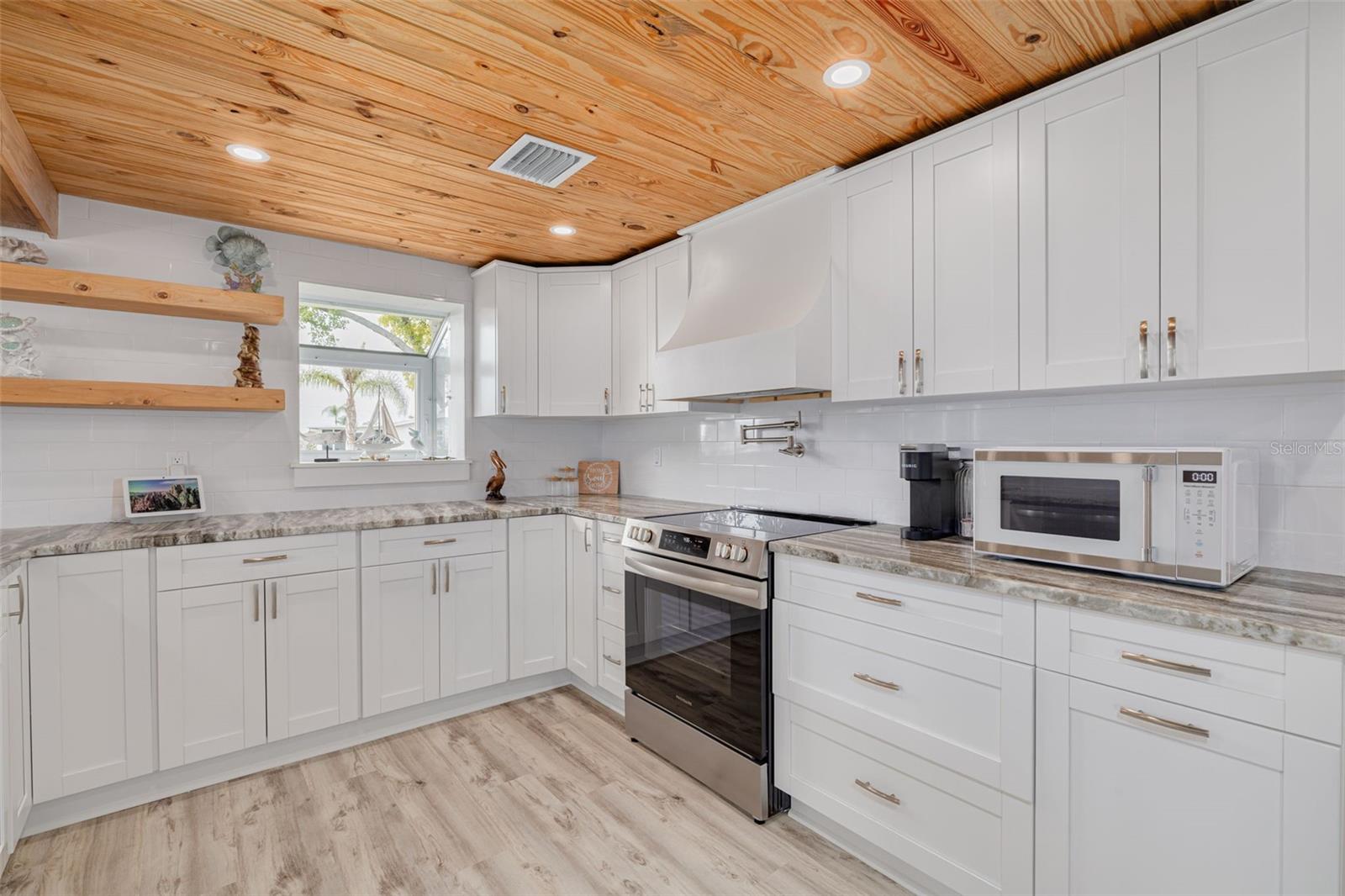 Coastal Paradise Awaits! Luxurious Move-in Ready Pool Home in Desirable Leisure Beach. Prepare to be absolutely captivated by this exceptional, fully remodeled pool home nestled on an expansive .22-acre double lot in the highly sought-after Leisure Beach community. Situated on a tranquil, dead-end street, this residence offers unparalleled privacy and a serene coastal lifestyle that will not disappoint. From the moment you arrive, you will appreciate the quality craftsmanship and designer touches evident throughout this light, bright, and open-concept floor plan. The main living area flows seamlessly, providing ample space for both relaxing and entertaining family and friends. The gourmet kitchen is a true showpiece, boasting beautiful new cabinets, gleaming granite countertops, new stainless steel appliances, and distinctive architectural elements, including a custom vent hood, wood beams, and wood ceilings. This spacious home features two comfortable bedrooms, two fully upgraded full bathrooms, plus an invaluable additional separate room that can serve perfectly as a home office, third bedroom, or hobby room. The list of recent, high-end upgrades is extensive, ensuring a truly maintenance-free experience for years to come: Brand New Roof for peace of mind. Brand New Pool Cage featuring a seamless view of the canal—perfect for enjoying the waterfront setting. New Decorative Epoxy Flake System surrounding the pool and covering the entire back screened lanai area. New Tankless Hot Water Heater and updated A/C system and ductwork. Fresh Interior and Exterior Paint. New flooring, lighting fixtures, faucet fixtures, 5 1/4 baseboards, and updated light switches throughout. Step outside to your private oasis! The oversized lot provides plenty of room to entertain or simply soak up the Florida sun. The low-maintenance, tasteful landscaping features mature Plumeria trees and a variety of palms, enhancing the tropical feel. Boating and fishing enthusiasts will delight in the location. The property backs up to an extra wide and deep canal, offering a short paddle or boat ride out to the Gulf of Mexico. Your waterfront enjoyment is maximized by the low-maintenance, grated composite dock—a rot-proof system specifically designed to resist harsh marine conditions better than traditional wood. The waters are known for excellent fishing, with species like redfish, trout, and sheepshead frequenting the area. You'll have easy access to explore some of the best backwater trails the Gulf Coast has to offer. An added layer of security comes from Leisure Beach being one of the higher elevated neighborhoods, with this particular home also being elevated, providing extra protection against flooding. This is a genuinely move-in ready home where every detail has been thoughtfully addressed. Don't miss the opportunity to live your Florida dream! Make an appointment today before this stunning canal-front gem is gone.