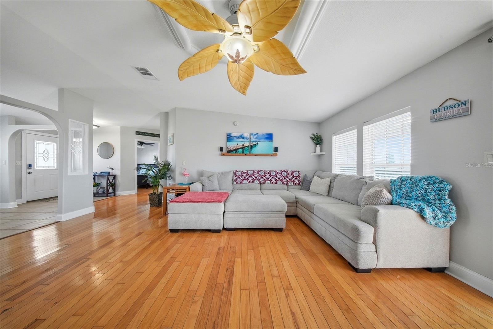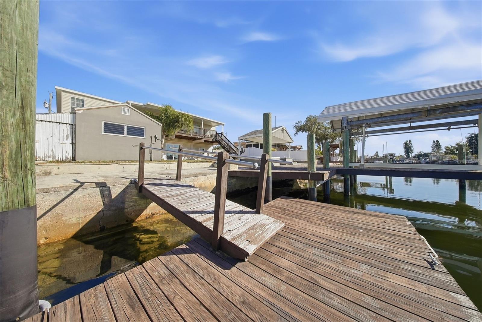 Where Elevated Living meets the Open Sea!! Nestled in a quiet, golf-cart-friendly community, you are just minutes away from local seafood favorites! Discover the ultimate coastal sanctuary in this stunning stilt home, perfectly positioned on a deep-water canal just moments from the open waters of the Gulf of America. This exceptional lifestyle provides breathtaking panoramic views, refreshing coastal breezes and sizeable under-house bonus area that is ideal for storage, parking, workshop; whatever your imagination dreams up!! Inside you will find a beautiful open concept floor plan designed to maximize natural light. The vaulted ceilings and sliding glass doors create a seamless transition between indoor and outdoor spaces. The kitchen will delight the chef of your family as you can cook the day's catch and still entertain with this open concept home. Beautiful hardwood floors in the living room and gorgeous bamboo flooring in the bedrooms making clean up easy. The roof was installed in October of 2023 so no problem for insurance here! And wait until you step out the patio door as this outdoor space will catch your attention with its stunning views, open-air deck and let's not forget the daily masterpiece as the sky transforms into a canvas of vibrant colors! These sunsets never get old. The boat dock and lift are ready for you to make this your nautical paradise with electricity and water already hooked up and Gem remotes for the lift installed in 2022. Flood insurance for this home is $1897 yearly and is assumable for the next happy owner. This sanctuary is a boater's dream, fisherman's heaven and nature lover's paradise with the Werner Boyce Salt Spring State Park located in front of this subdivision!! Designed to maximize both views and breezes, this residence offers a lifestyle defined by salt air, golden sunsets and effortless nautical access. Come and live where others vacation and cast your line right off your dock or launch a kayak for a sunset paddle; the outdoor space is the soul of this home. This oasis offers it all, serene coastal living with easy access to adventure so what are you waiting for? Don't miss this rare opportunity to own a slice of Florida paradise in an amazing community that is known for its fishing, boating lifestyle while only minutes from local seafood restaurants, unique shopping, nature parks, medical facilities, you name it you will find it! Come and check it out before its gone!!