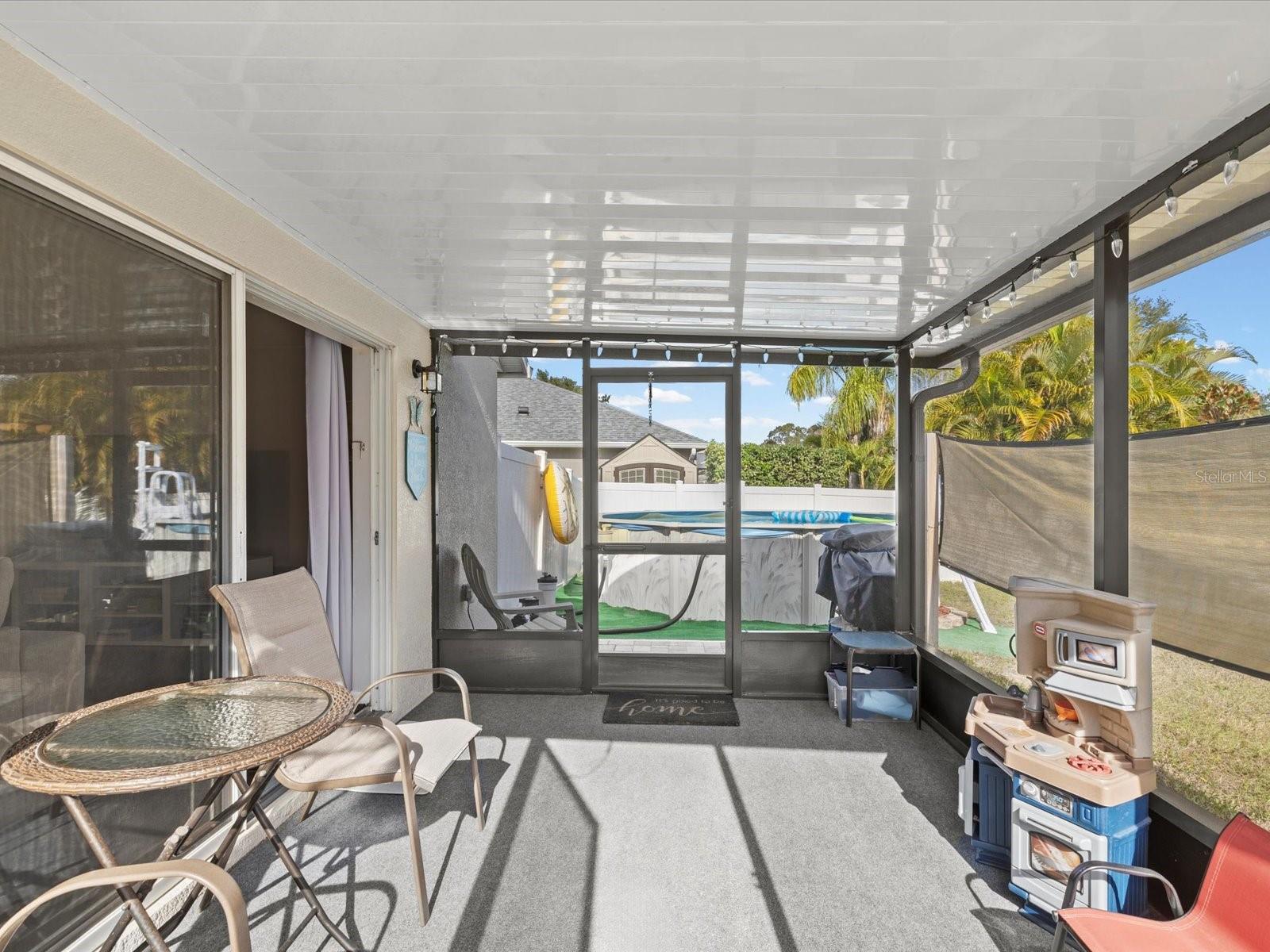 Come see this beautiful 3 bed 2 bath home that is located in the gated community of Pine Ridge at Sugar Creek. This is a very open floor plan layout with large rooms. You will love the kitchen that includes a great eat in area for dining. You can also take advantage of the formal dining area next to the living room. There is gorgeous tile plank flooring throughout the common areas. The huge primary bedroom features a gigantic walk in closet and bath suite! This home has been well maintained and is move in ready. The fenced in back yard has an above ground pool to get your splash on! You will also enjoy the screened in and covered patio and beautiful brick paver patio! This back yard is made for fun and entertaining. This is a great community in a great location! Minutes from the the Sun Coast Highway for easy access to Tampa. (THERE WILL BA A NEW ROOF INSTALLED PRIOR TO CLOSING AT THE SELLERS EXPENSE!)