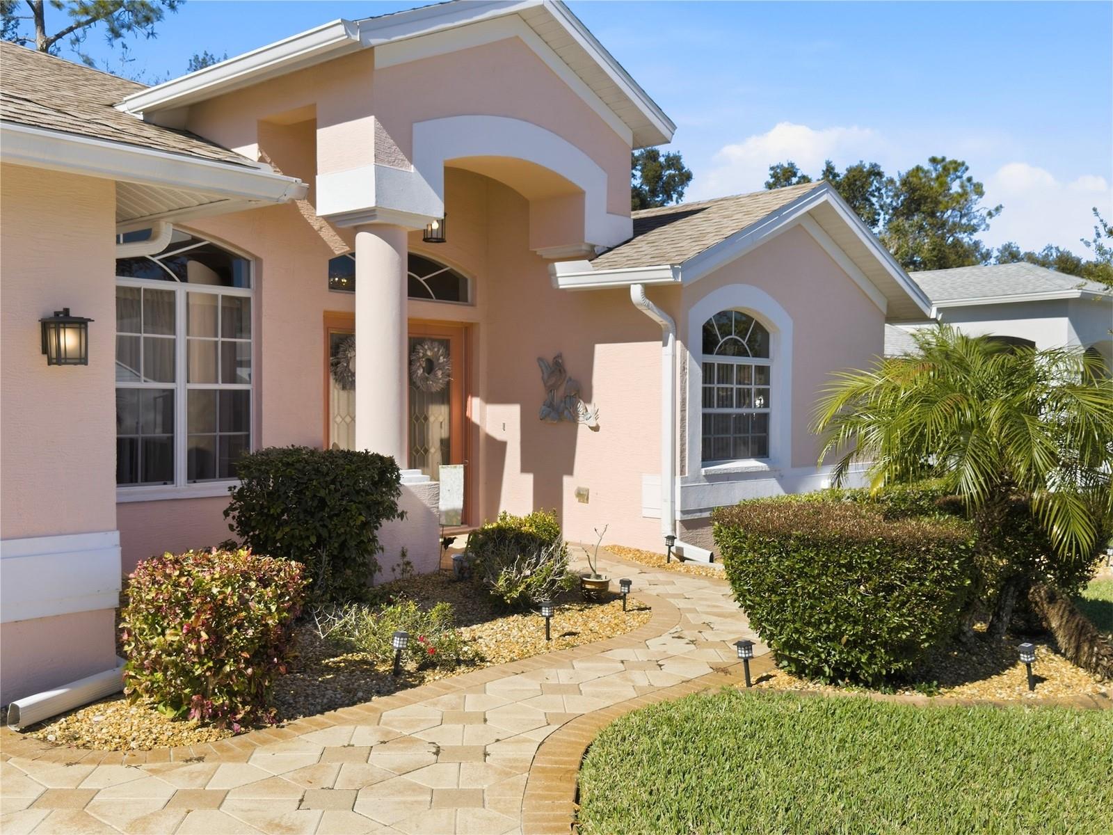 This partially turnkey 3-bedroom, 2-bath home, offered by its original owners, welcomes you with a paver driveway, screened garage door, and a double leaded glass entry doors. Inside, the formal living and dining areas feature wood laminate flooring that continues throughout most of the home. The centrally located kitchen offers ceramic tile, real wood cabinetry with pull-out drawers, granite countertops, stylish backsplash, built-in oven and countertop cooktop, closet pantry, and a kitchen island with breakfast bar overlooking the dinette and family room, all enhanced by solar tube lighting. The split-bedroom layout provides privacy, with a spacious primary suite featuring sliding doors to the lanai, dual California closets, and an updated en suite bath with dual granite vanity with built-in desk, and a remodeled walk-in shower with custom glass doors and grab bars. Two guest bedrooms, both with California closets, share a refreshed guest bath with newer shower tile and glass doors. The enclosed lanai is peaceful with no rear neighbors, removable vinyl windows, and added air ducting, bringing the home’s total heated and cooled space to over 2,200 square feet. Additional highlights include a built-in ceiling speaker system throughout the home and lanai with included audio receiver, a laundry room with cabinetry and washer and dryer, garage storage cabinets, and epoxied garage floors. Most furniture and contents are included at no additional cost, or can be removed if preferred. Major updates include a roof (2020), AC (2015), water heater (2021), and water softener, and the home was professionally remediated in 2012 and is fully insurable. Located in the gated, amenity-rich, and pet-friendly Heritage Pines community, residents enjoy a championship 18-hole golf course, clubhouse with restaurant and bar, fitness center, heated pool and spa, and courts for tennis, pickleball, and bocce, and so much more. HOA fees include cable, internet, lawn care, and irrigation for a truly low-maintenance lifestyle. Schedule your private showing today and seller says please don't mind the cluter as they are in process of moving out.