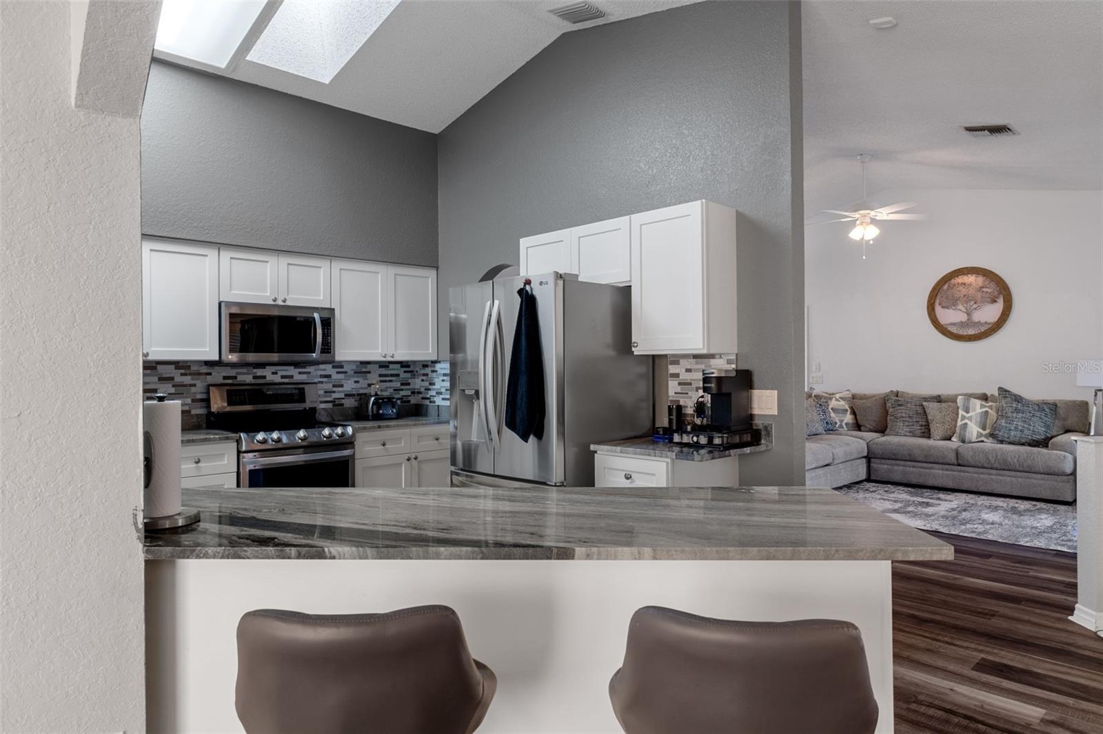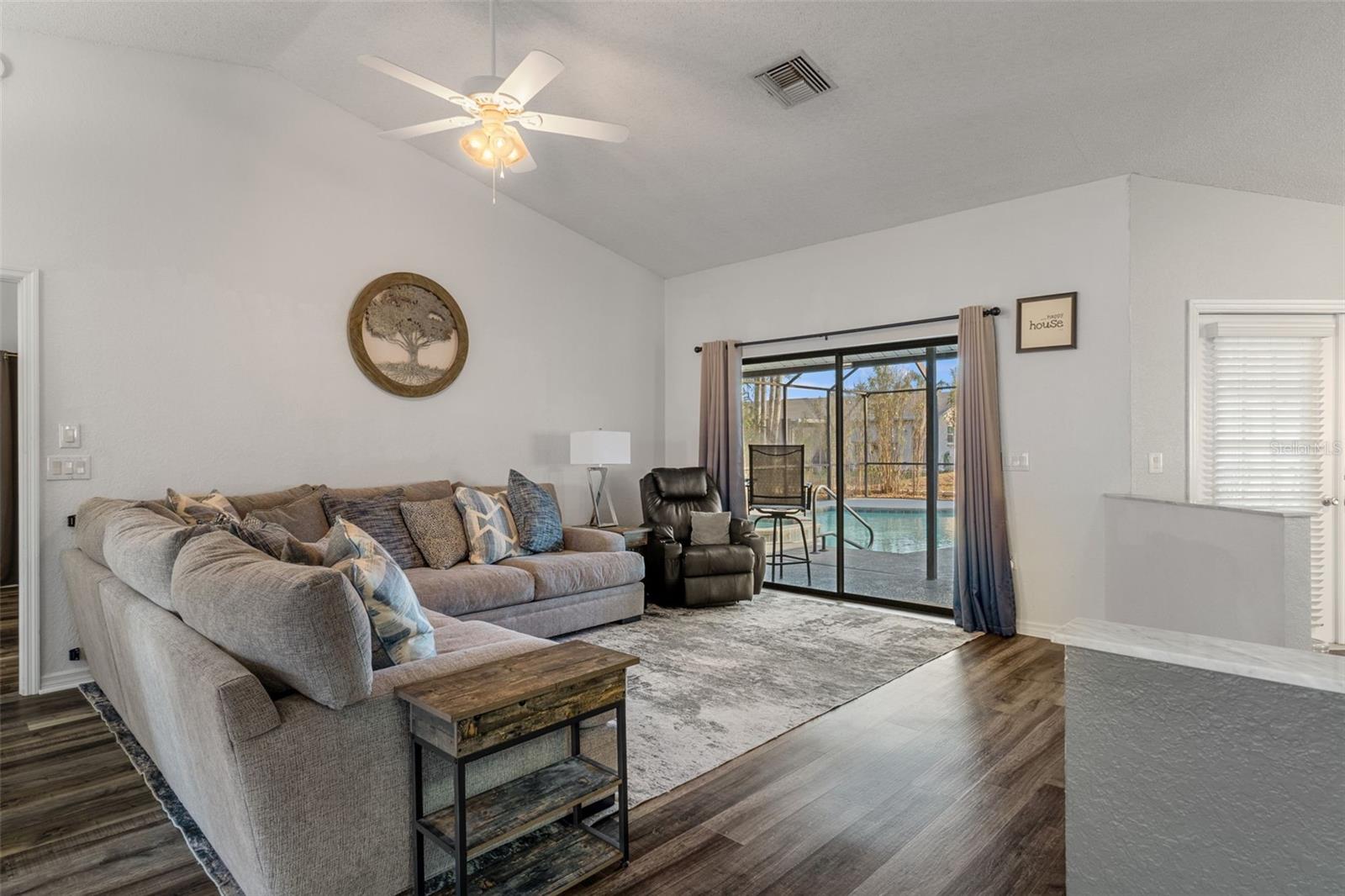 3/2/2 – POOL HOME - This stunning turnkey home features resort-style amenities and has been meticulously maintained. It’s a perfect blend of MODERN UPGRADES with the Florida lifestyle. The OPEN FLOOR PLAN includes a vaulted ceiling in the great room and a flexible bonus space that is ideal for a home office, den, or entertainment area, just to name a few. Luxury vinyl plank flooring flows throughout the main living areas. The CHEF’S KITCHEN showcases MARBLE COUNTERTOPS, soft-close cabinetry, a DOUBLE OVEN, all-NEW APPLIANCES, and designer finishes throughout. The double sliding doors seamlessly connect the great room to the pool deck, creating an exceptional environment for indoor-outdoor entertainment. The FULLY RENOVATED POOL AND SPA serve as the crown jewel of this property, featuring updated tile, a RESURFACED POOL AND SPA, a NEW HEATER, LED lighting, a SALT SYSTEM, and a modern pump. Access to the pool is available from the primary suite, guest bedroom, kitchen, living room, and guest bathroom. The sale includes a WIRELESS POOL CLEANER, a wireless skimmer, all maintenance equipment, a high-top outdoor dining set, and a 55-inch outdoor TV. The fenced side yard provides ADDITIONAL PRIVACY and functionality with direct access from the laundry room. Both bathrooms feature soft-close cabinets and drawers, custom tile work, and an ANTI-FOG MIRROR in the primary bathroom. The HVAC system was upgraded in 2018 and includes a SURGE PROTECTOR, UV LIGHT AND HEPA FILTER, all maintained on a regular service schedule. A whole-house surge protection system and a GAS GENERATOR provide additional peace of mind. Recent landscaping updates complete this move-in-ready gem. Schedule a showing to get a close-up look at this beauty; you won’t be disappointed.