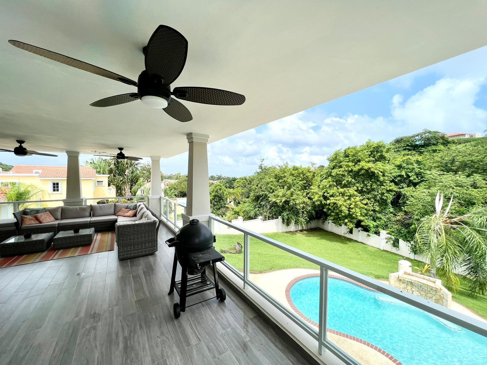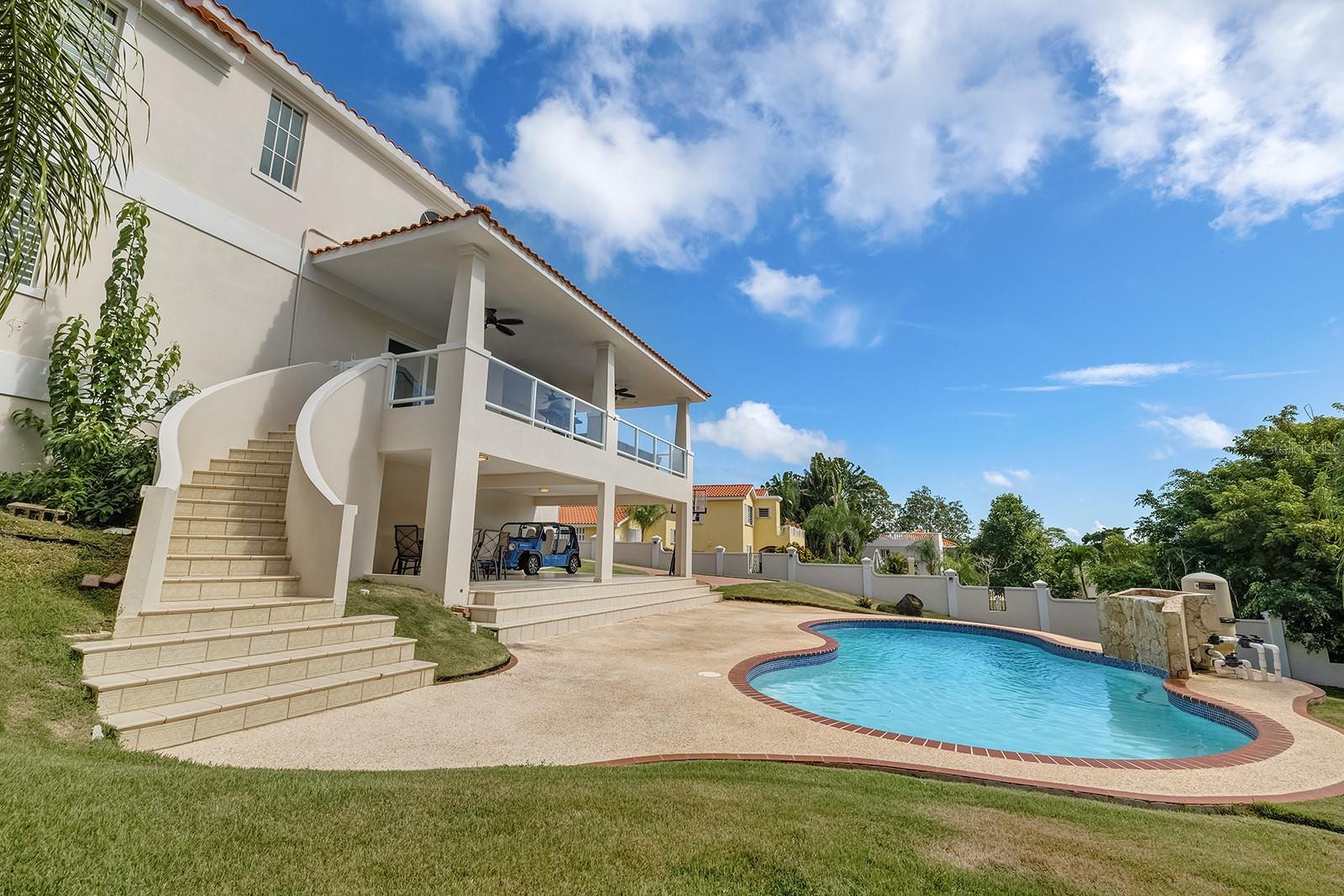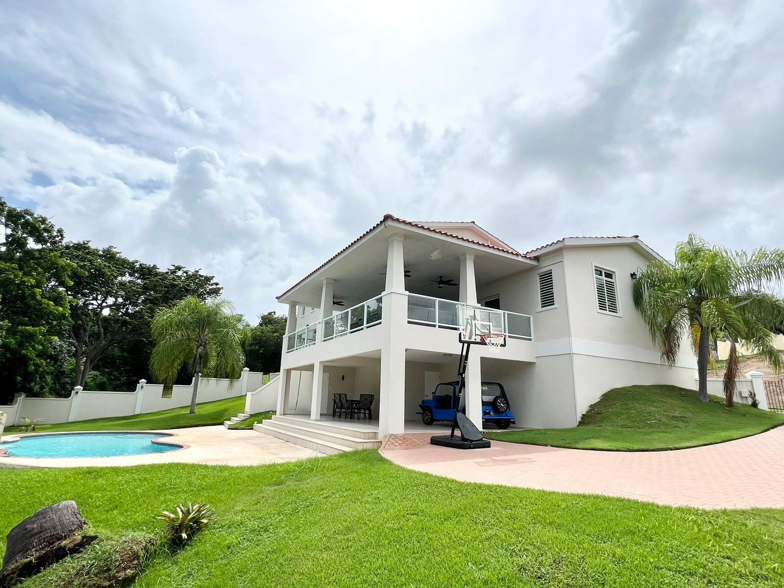 Welcome to your dream oasis in the heart of Palmas del Mar, Puerto Rico! This exquisite, fully renovated home, boasting 4 bedrooms, 4.5 baths. Built on a sprawling 0.38-acre lot, this residence offers the perfect blend of elegance, comfort, and functionality. - Decorative fireplace in living room - 2 bedrooms with 2 bathrooms on the first floor and 2b/2 ensuite bathrooms on the 2nd floor. - Full house Generator - Pool and covered patio - Fenced-in backyard - New Stainless Steel appliances - Gas range stove - New AC split units in each room - BBQ grill As you step inside, you'll be greeted by the timeless charm of this magnificent home. The living room welcomes you with its decorative fireplace, creating a cozy atmosphere for gatherings with friends and family. High ceilings throughout the home add to the sense of space and grandeur. The fully equipped kitchen is a chef's delight, featuring a gas range stove and top-of-the-line stainless steel appliances, including a fridge, dishwasher, microwave and oven, and wine fridge. Whether you're preparing a gourmet meal or a quick snack, this kitchen has it all. A freezer, and a front loader washer and dryer are included. Step outside to your private paradise, where you'll find a pool surrounded by lush greenery. The fully fenced-in backyard ensures your privacy and security, creating a tranquil haven for relaxation and entertaining. A 20-kilowatt power generator ensures you never have to worry about interruptions during tropical storms. Enjoy breathtaking views from the patio on the balcony, which overlooks the majestic mountains and offers a partial ocean view. It's the perfect spot for sipping your morning coffee or evening cocktails as you bask in the natural beauty of Palmas del Mar. The main floor of the home features two generously sized bedrooms, each with its own full bathroom, providing comfort and convenience for guests or family members. Upstairs, you'll discover two master suites, each offering a luxurious retreat with en-suite bathrooms and walking closets. For added versatility, a bonus room downstairs can be transformed into a covered terrace overlooking the pool, ideal for al fresco dining and relaxation. Alternatively, it can be enclosed to create a game room for endless entertainment possibilities. The property also includes a 2-car carport for your convenience and a basketball hoop for extra fun and fitness. This home is being offered fully furnished and professionally decorated, allowing you to move in and start enjoying the Palmas del Mar lifestyle immediately. Don't miss the opportunity to make this stunning residence your own. Contact us today to schedule a private tour and experience luxury living in paradise.