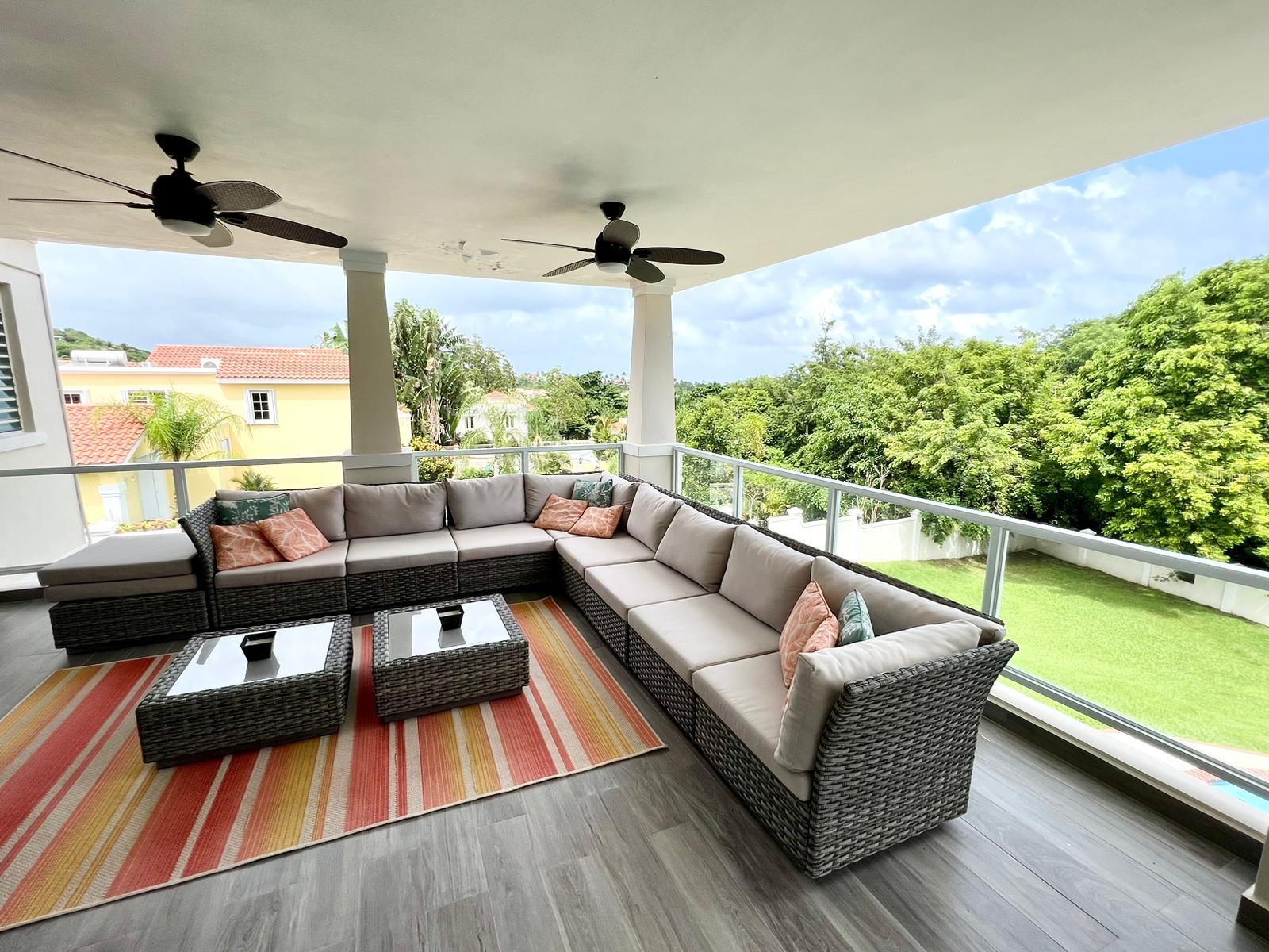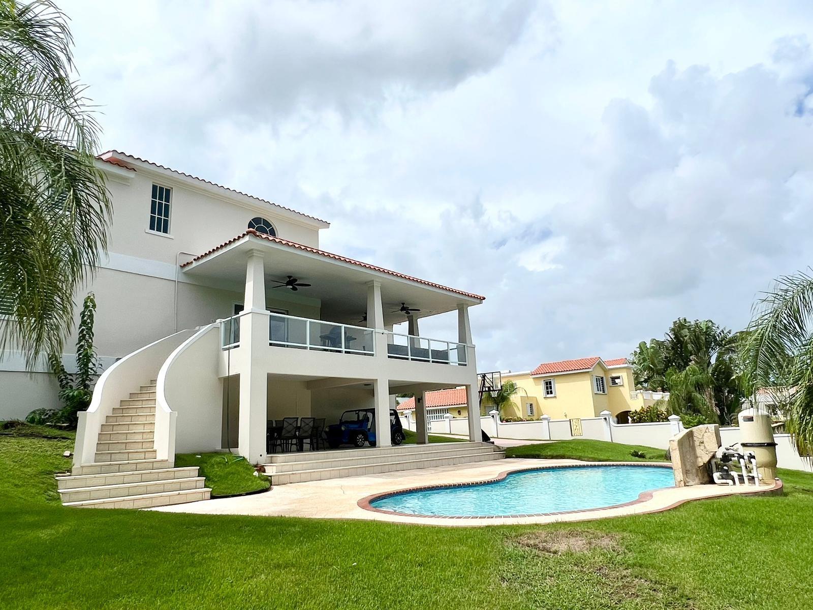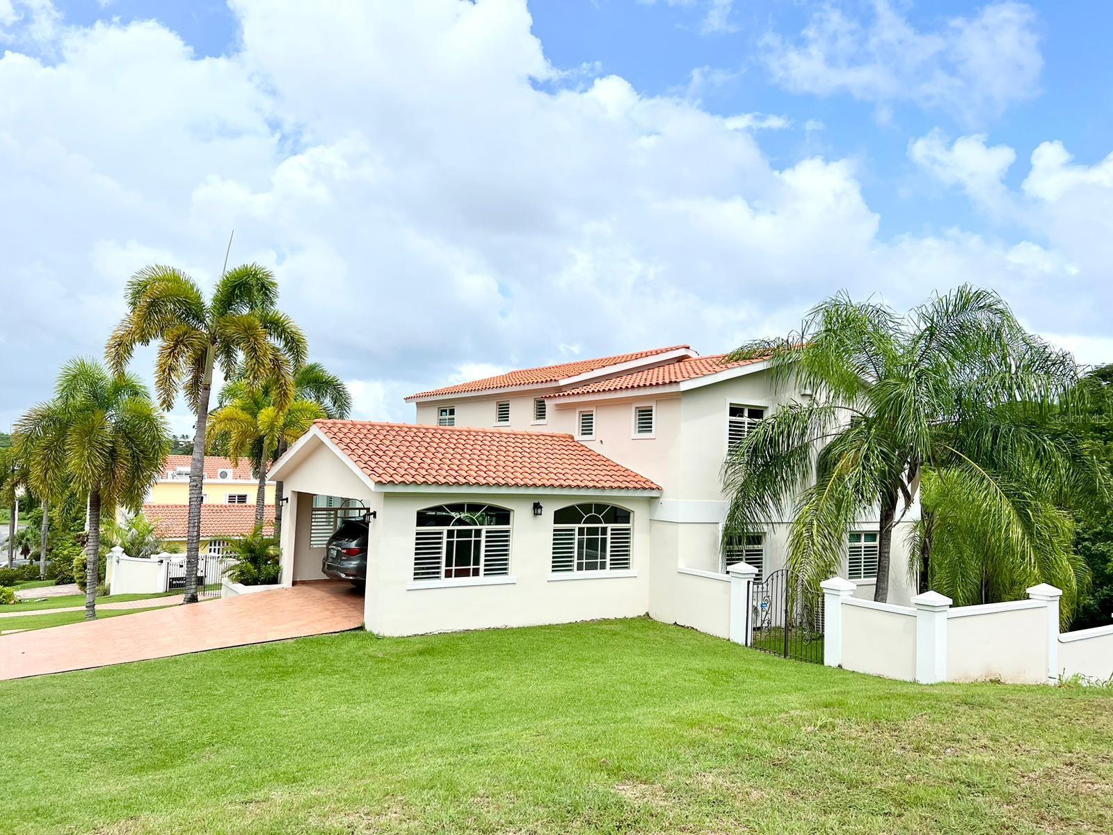 Welcome to your dream oasis in the heart of Palmas del Mar, Puerto Rico! This exquisite, fully renovated home, boasting 4 bedrooms, 4.5 baths. Built on a sprawling 0.38-acre lot, this residence offers the perfect blend of elegance, comfort, and functionality. - Decorative fireplace in living room - 2 bedrooms with 2 bathrooms on the first floor and 2b/2 ensuite bathrooms on the 2nd floor. - Full house Generator - Pool and covered patio - Fenced-in backyard - New Stainless Steel appliances - Gas range stove - New AC split units in each room - BBQ grill As you step inside, you'll be greeted by the timeless charm of this magnificent home. The living room welcomes you with its decorative fireplace, creating a cozy atmosphere for gatherings with friends and family. High ceilings throughout the home add to the sense of space and grandeur. The fully equipped kitchen is a chef's delight, featuring a gas range stove and top-of-the-line stainless steel appliances, including a fridge, dishwasher, microwave and oven, and wine fridge. Whether you're preparing a gourmet meal or a quick snack, this kitchen has it all. A freezer, and a front loader washer and dryer are included. Step outside to your private paradise, where you'll find a pool surrounded by lush greenery. The fully fenced-in backyard ensures your privacy and security, creating a tranquil haven for relaxation and entertaining. A 20-kilowatt power generator ensures you never have to worry about interruptions during tropical storms. Enjoy breathtaking views from the patio on the balcony, which overlooks the majestic mountains and offers a partial ocean view. It's the perfect spot for sipping your morning coffee or evening cocktails as you bask in the natural beauty of Palmas del Mar. The main floor of the home features two generously sized bedrooms, each with its own full bathroom, providing comfort and convenience for guests or family members. Upstairs, you'll discover two master suites, each offering a luxurious retreat with en-suite bathrooms and walking closets. For added versatility, a bonus room downstairs can be transformed into a covered terrace overlooking the pool, ideal for al fresco dining and relaxation. Alternatively, it can be enclosed to create a game room for endless entertainment possibilities. The property also includes a 2-car carport for your convenience and a basketball hoop for extra fun and fitness. This home is being offered fully furnished and professionally decorated, allowing you to move in and start enjoying the Palmas del Mar lifestyle immediately. Don't miss the opportunity to make this stunning residence your own. Contact us today to schedule a private tour and experience luxury living in paradise.