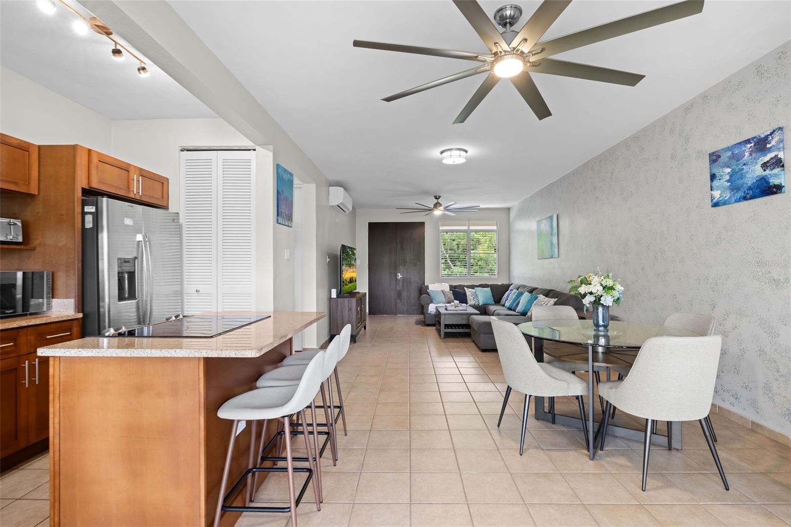Welcome to Harbour Lakes at Palmas del Mar – Your Piece of Paradise Awaits! Step into comfort and style in this beautifully maintained 3-bedroom, 2.5-bath condo located in the sought-after Harbour Lakes community. Offering over 1,800 square feet of airy living space, this second-floor unit features a spacious open-concept layout, a breezy balcony and a rooftop terrace perfect for enjoying warm Caribbean evenings entertaining friends! The kitchen flows seamlessly into the dining and living areas, making it ideal for both quiet nights in and entertaining guests. All bedrooms are generously sized, with ample closet space, and the primary suite includes a private en-suite bathroom. This move-in-ready property comes fully equipped with modern appliances, including refrigerator, stove, oven, dishwasher, washer, dryer, and four air conditioning units. Two assigned parking spaces and a dedicated golf cart space add convenience! Located just steps from two of the community pools, this unit combines the privacy of home with resort-style amenities. Harbour Lakes is a gated, Mediterranean-style community surrounded by lakes, lush landscaping, walking trails, and an amazing Caribbean experience. As part of Palmas del Mar, you’ll also have access to world-class beaches, tennis, golf, a marina, restaurants, and more. Whether you're looking for a vacation escape, investment opportunity, or full-time residence, this property offers a balanced blend of elegance, comfort, and location. Call and schedule a private showing today!