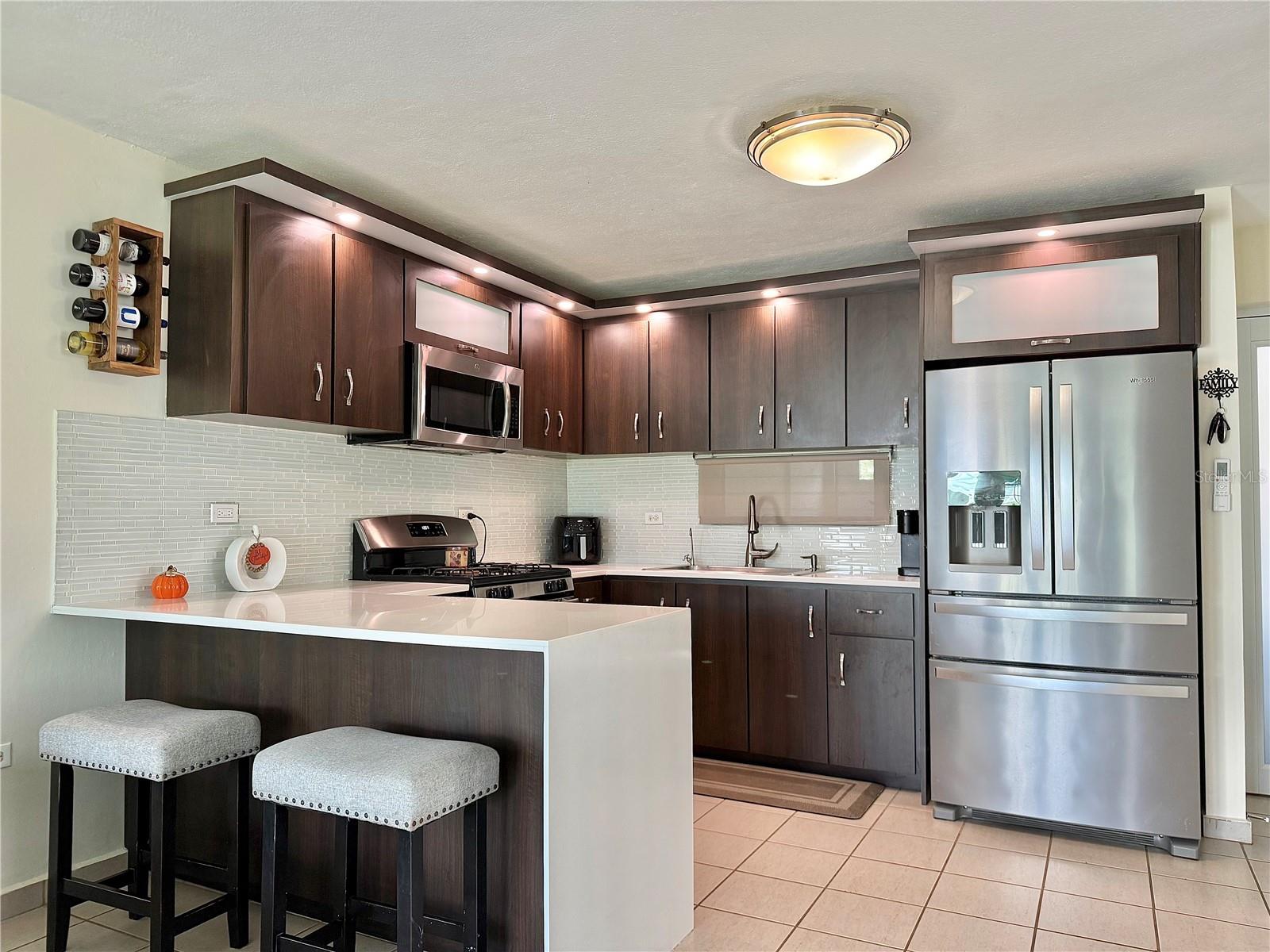 This beautiful residence is located just behind the Palma Real Mall in Humacao, only 8 minutes (2.8 km) away. It features completely remodeled bathrooms and kitchen, a solar system, and air conditioning throughout the whole residence (mini-splits). The property is fully enclosed with a concrete fence and boasts an attractive open terrace with a built-in grill, perfect for enjoying time with family or guests. The community offers excellent amenities: security, a swimming pool, two gazebos, a mailbox, a tennis court, and a basketball court.