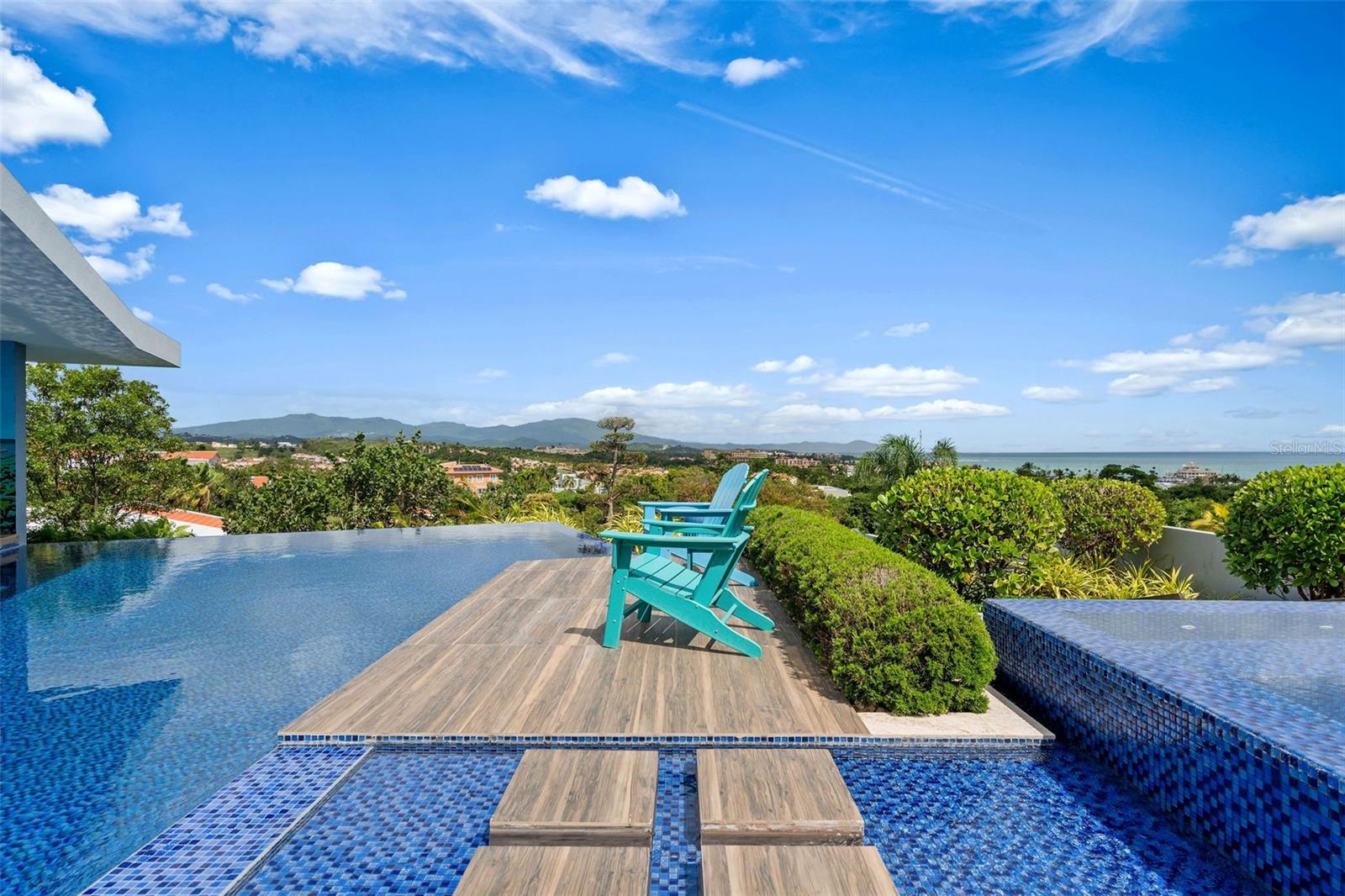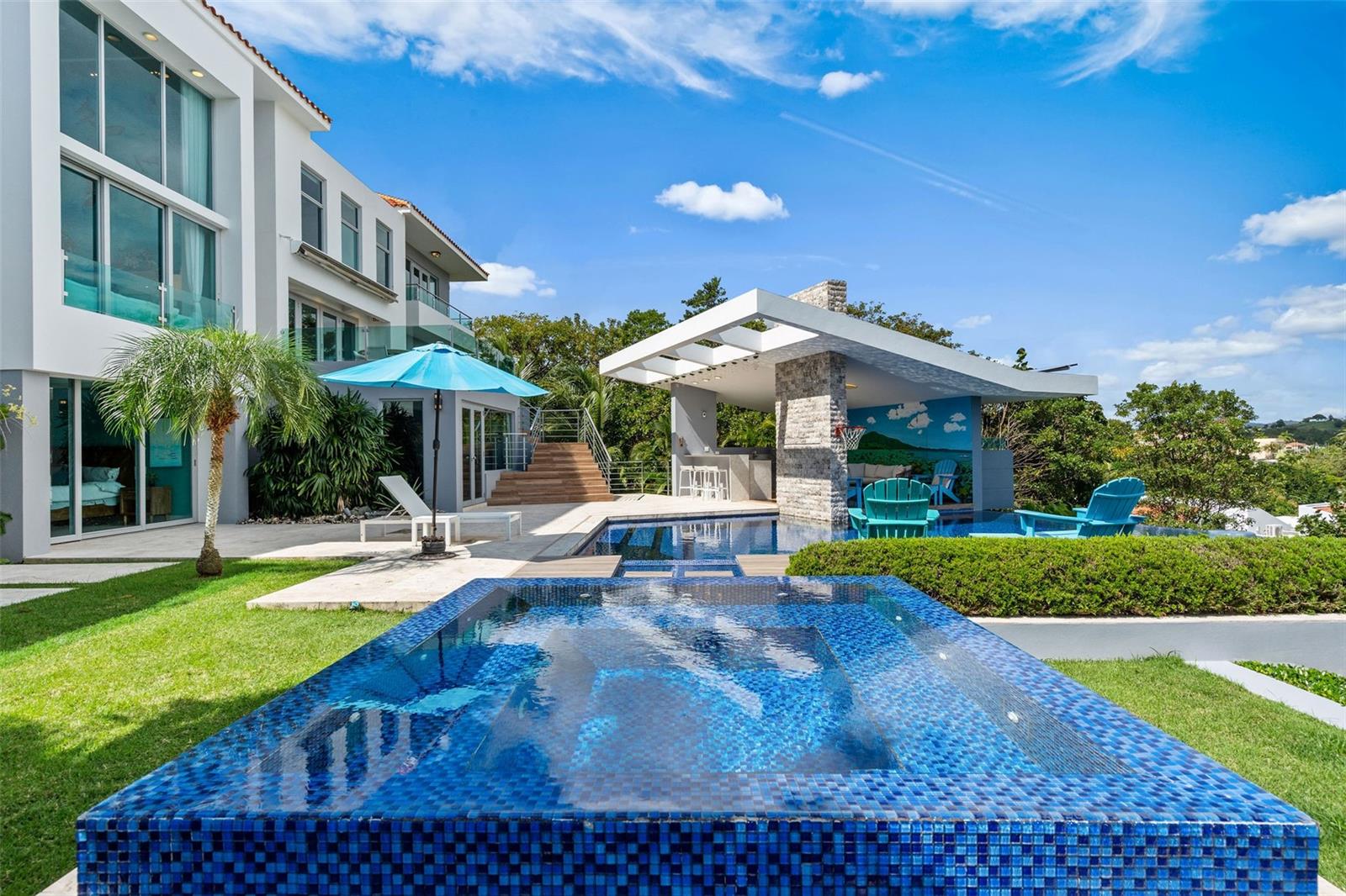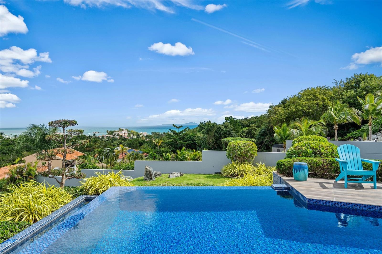 Welcome to 12 and 13 Roble Valley, a private estate within the prestigíous Palmas del Mar community in Puerto Rico. This is the only luxury property in Palmas offering complete and permanent privacy, paired with commanding panoramic views of the Caribbean Sea, the surrounding islands, Puerto Rico’s eastern coastline, and the breathtaking El Yunque Rainforest mountain range. Completed in 2016 and meticulously maintained by its original and only owners, this estate sits in a category entirely its own. With no neighboring properties to the left or right, every window, terrace, and balcony opens to uninterrupted natural beauty. What you experience here is silence, space, and a sense of seclusion that simply does not exist elsewhere in Palmas del Mar. The main residence offers five bedrooms, six bathrooms, and approximately 5,000 square feet of refined indoor living. Soaring 13 foot ceilings and expansive custom windows flood the home with natural light and elevate every room with scale and drama. Only the finest finishes were selected throughout, and each bathroom has been designed as a statement, blending luxury with artistry. The outdoor living experience is nothing short of extraordinary. The backyard is a private resort, featuring a stunning pool and jacuzzi, a covered BBQ area ideal for entertaining, and a fully equipped indoor gym, all set against a backdrop of lush greenery, ocean views, and open sky, and complemented by a one of a kind outdoor bathroom and shower that allows you to rinse off or unwind while taking in panoramic views of the Caribbean Sea and surrounding islands. The adjacent lot at 12 Roble Valley has been transformed into a remarkable Greek inspired amphitheater, crafted with 276 one ton boulders to create a serene and magical sanctuary. With a pergola, fire pit, and storage shed already in place, this space is perfect for gatherings, quiet reflection, or unforgettable evenings under the stars, all while preserving the estate’s unmatched privacy. This home is as resilient as it is beautiful. Forty one solar panels, three Tesla Powerwalls, a whole house generator, and a 400 gallon rainwater cistern ensure energy independence, security, and peace of mind year round. Offered fully furnished and truly turnkey, this estate allows you to step immediately into a lifestyle defined by privacy, elegance, and natural splendor. If you are seeking the rarest offering in the Caribbean, a property that cannot be replicated, 12 and 13 Roble Valley is that opportunity.