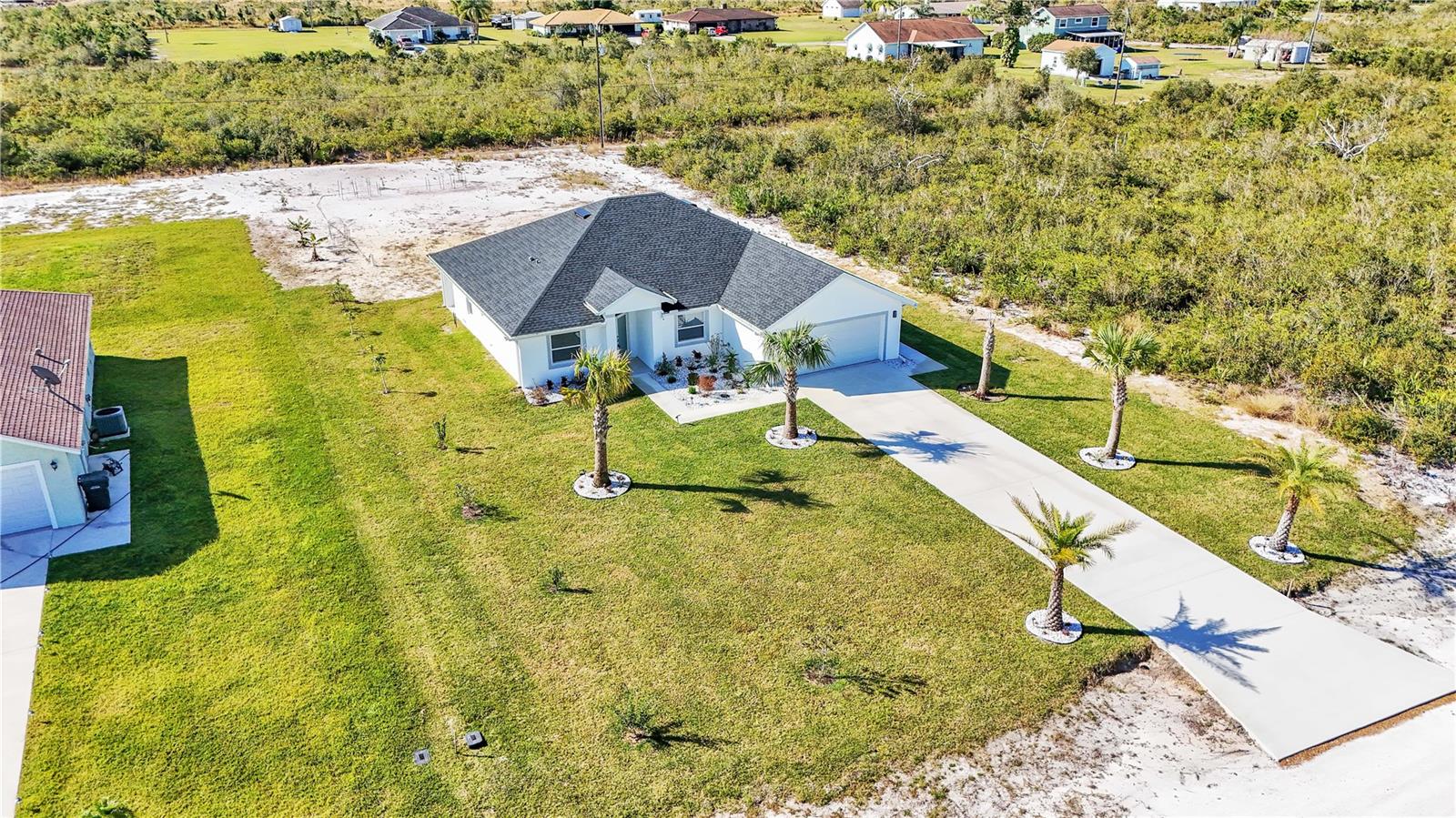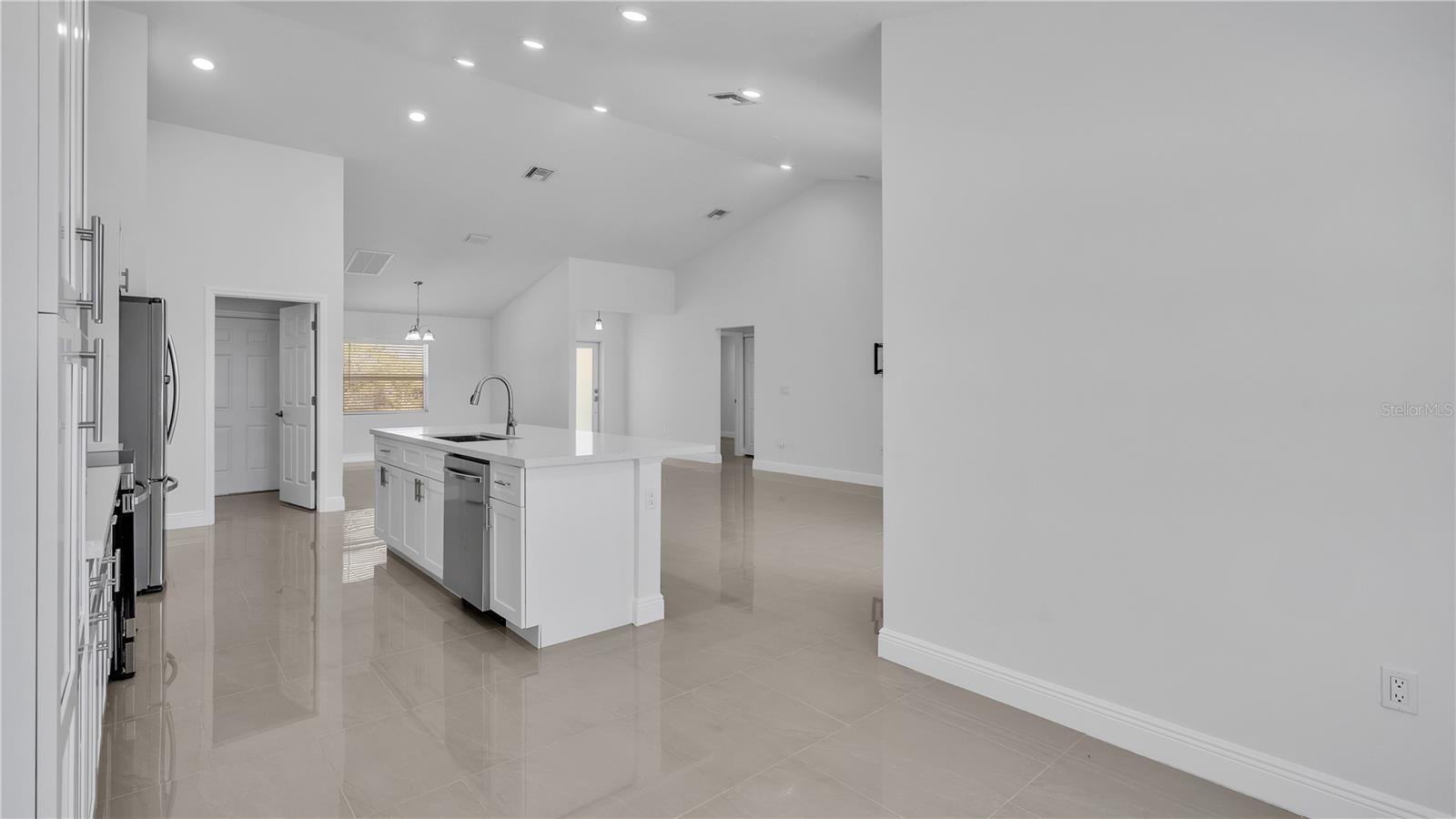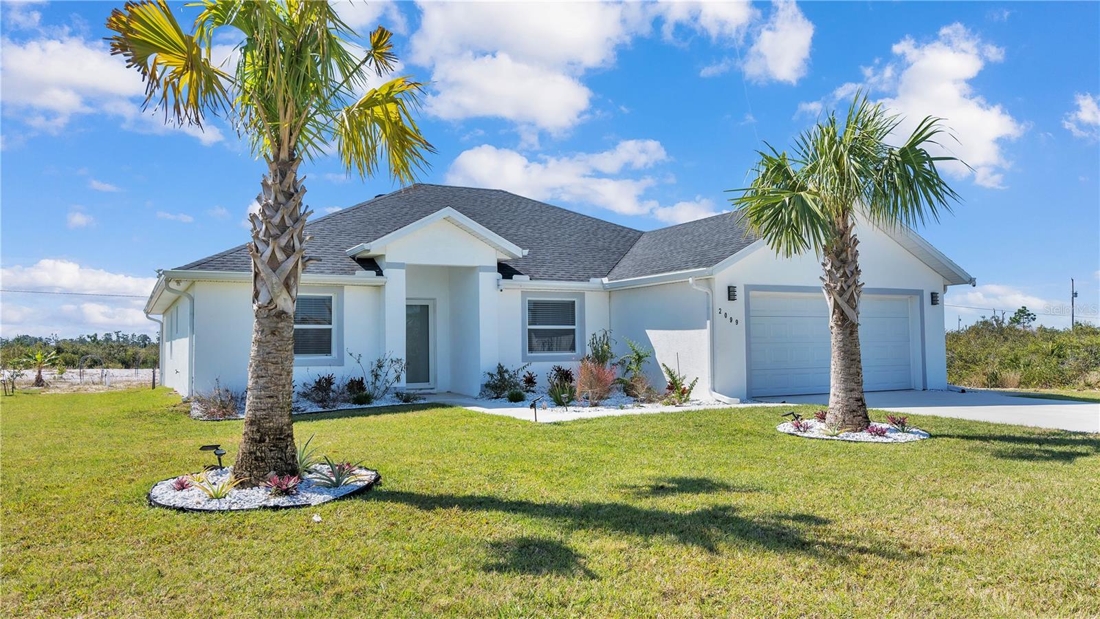**MOTIVATED SELLER**Move in ready, gorgeous Newly Constructed 3/2 Indian Lake Estates home. Enjoy peace and privacy in this brand new, spacious home featuring a neutral color scheme, abundance of natural light, generous size kitchen with stainless steel appliances, Quartz countertops, soft close cabinetry and breakfast bar, 24x24 porcelain tile throughout, split plan, vaulted ceilings, sizeable master bedroom with walk-in closet and ensuite bath featuring double sinks/vanities, separate lavatory and masterfully tiled showers with gorgeous fixtures. Additional features include an inside utility room with brand new top of line washer/dryer, two car garage, fruit trees, and no front or rear neighbors! Community features include water access, dock, fishing and golfing (may require a separate membership fee).