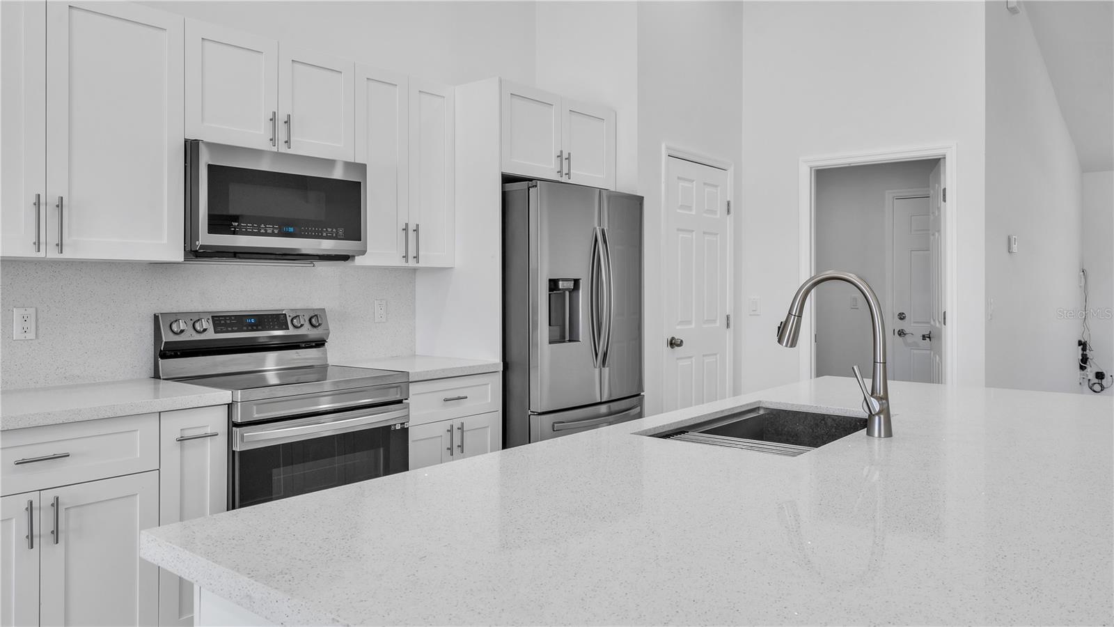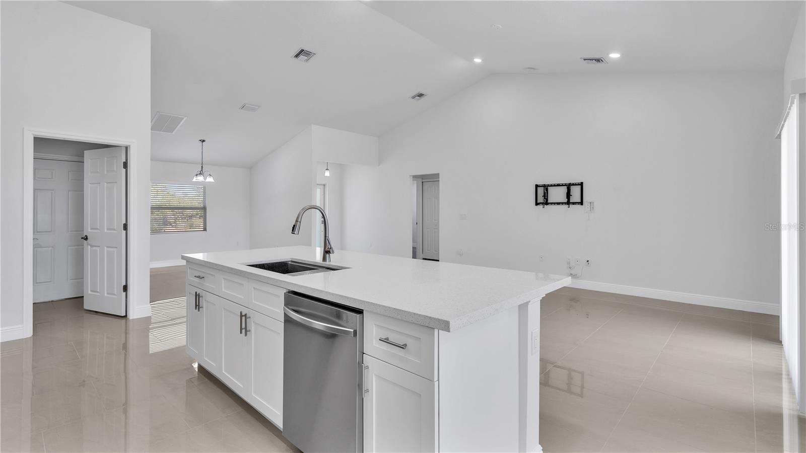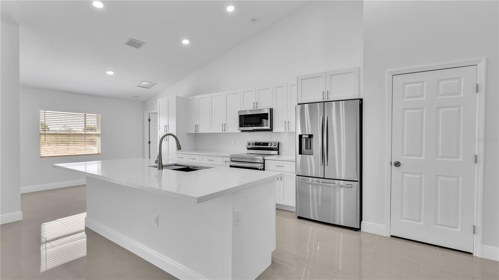 **MOTIVATED SELLER**Move in ready, gorgeous Newly Constructed 3/2 Indian Lake Estates home. Enjoy peace and privacy in this brand new, spacious home featuring a neutral color scheme, abundance of natural light, generous size kitchen with stainless steel appliances, Quartz countertops, soft close cabinetry and breakfast bar, 24x24 porcelain tile throughout, split plan, vaulted ceilings, sizeable master bedroom with walk-in closet and ensuite bath featuring double sinks/vanities, separate lavatory and masterfully tiled showers with gorgeous fixtures. Additional features include an inside utility room with brand new top of line washer/dryer, two car garage, fruit trees, and no front or rear neighbors! Community features include water access, dock, fishing and golfing (may require a separate membership fee).