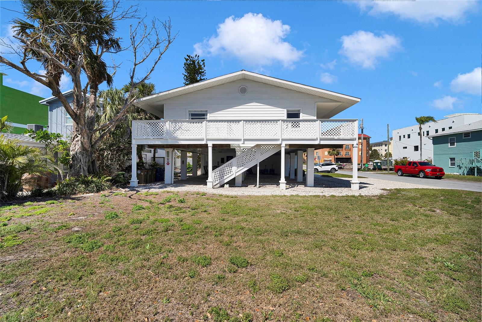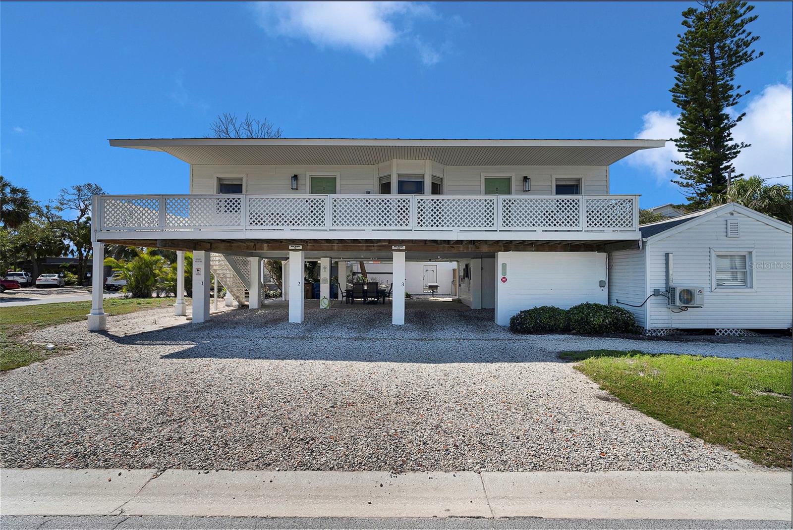 A Beach Lovers Paradise - Just Steps from Indian Rocks Beach! This exceptional property offers the ultimate beachside retreat. Indian Rocks Beach is one of Pinellas County's most sought-after destinations for vacation renters from around the world. The property features three distinct, beautifully designed living spaces: Main Building (Raised Duplex) The primary living area showcases high ceilings and an open-concept layout, creating a spacious two-bedroom, one-bath residence. A large wrap-around balcony offers stunning views of the Gulf and the sunset. The main space includes a fully equipped eat-in kitchen and a generous family room with a built-in entertainment center. The second raised unit is an exquisite one-bedroom, one-bath suite with its own family room and efficiency kitchen. These living areas can be seamlessly combined to create a luxurious three-bedroom, two-bath suite or used independently for added privacy and flexibility. Each of the units has been thoughtfully designed with premium finishes. Notable features include: Stunning Calacatta Gold Quartz countertops, custom hardwood cabinetry, and brand-new stainless-steel appliances in each fully stocked kitchen, convenient coffee bars and Keurig machines in every unit, Elegant custom vanities with Delta Gold plumbing and trim, hotel-style glass shower doors, and fully stocked bath and bed linens, comfortable queen sofa sleepers, USB charging nightstands with bedside lamps, and 60-inch smart TVs New mini-split AC units, Nest thermostats, and high-end, scratch-resistant, waterproof flooring Freshly painted interiors and exteriors, new siding, updated sliders, and custom window treatments. Charming Beach Cottage (Ground Level and has been fully gutted to help with remediation) The separate beach cottage is a cozy two-bedroom, one-bath retreat with a beautifully appointed kitchen. This home has never flooded prior to this 1 in 100 year flood. New laundry facilities with full-sized washer and dryer units are easily accessible to tenants. Outside, enjoy the newly installed patio pavers, an outdoor dining area with an attached grilling station, and a variety of beach supplies, including sports equipment, fishing poles, and wagons all provided for your convenience and enjoyment. This property is an absolute must-see, turnkey and ready for you to enjoy immediately! Whether you're a savvy investor, seeking a personal beach getaway or in the market for a high-performing rental property, this gem offers unmatched potential. (PORTFOLIO PACKAGE AVAILABLE; Property can be purchased with 122 Coral Ave, Redington Shores and/or 2605 Bay Blvd, Indian Rocks Beach)