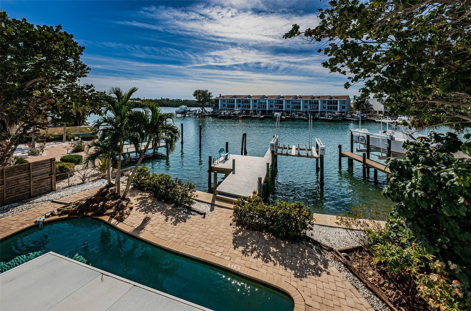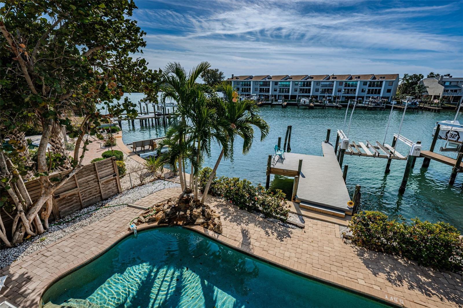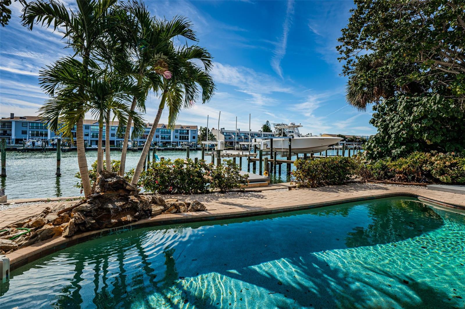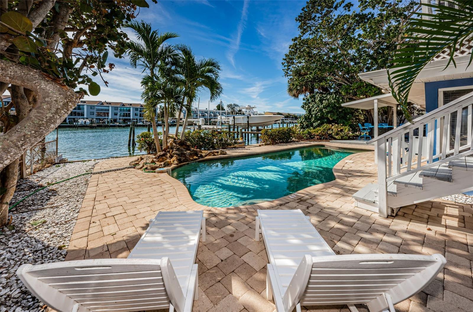 ** Days on Market are higher due to limited showing availability ** This WATERFRONT gem is ready to embrace its new owner. A piece of PARADISE awaits! Own for personal use or as an INVESTMENT. ** Owner FINANCING may be an option ** 2023 gross RENT was just under $94,000 at 78% occupancy through SHORT TERM rental w/ bookings into 2024. This stunning fully FURNISHED POOL home on ~1/4 of an ACRE (.19) features 3 bedrooms, 3 baths (two en-suite baths), with an additional room downstairs, which could be utilized as an office or 4th bedroom, a one car garage, ample room to entertain by the pool, an upstairs deck, which connects to the master suite, & a boat dock with room for multiple boats or jet skis. The floorpan is open, well lit, and inviting! You’ll be captivated the moment you step inside with views of the tropical oasis backyard. The kitchen is spacious with ample cabinetry & opens up to the foyer and dining area. Adjacent to the kitchen, is the washer, dryer, & utility sink. The west side of the home hosts two bedrooms with large closets & two baths. One bedroom faces the water & includes sliding glass doors, which lead to the pool & patio, & an en-suite bath. The other bedroom is towards the front of the home. The optional 4th room is located next to the dining area, & has easy access to plumbing should you desire to renovate this space. Step into the living room, which is wrapped with windows and two sliders, providing you views from every angle. Downstairs flooring consists of tile & terrazzo. Additional storage space is under the stairs & in the hallway between the bedrooms. Upstairs, you’ll find a generous master suite that overlooks the canal & intracoastal waterway, & includes its very own deck, a vaulted ceiling, dual sinks, garden tub, shower, & walk-in closet. Stairs are connected to the deck for easy access to & from the pool area, providing you freedom to enjoy the backyard without disturbing your family downstairs. Relaxation at its best with this PRIVATE & lusciously landscaped & fenced backyard. Stretch out in a lounge chair, take a dip in the pool, or enjoy an afternoon of BBQ & football. The pebble tec POOL is HEATED by solar panels (no payment due). It’s time to hit the water! The boat dock will accommodate two boats and jet skis. The 10K boat lift has electric & water, & is suitable for jet skis (bunks installed), a boat, or a pontoon boat (bunks stored in the garage). UPDATES: downstairs AC (2023), sewer lateral-west side of home (2023), laminate flooring-master & stairs (2023), dock was rebuilt with Trex & new joists (2022), roof (2017), exterior painting (2017), water heater (2017), upstairs AC (2016), 10K boat lift (2015), aluminum back porch (2015), seawall (2014), electrical panel (2000). Indian Rocks Beach is a laid-back, quiet destination with 26 public beach access points, located within minutes to larger cities such as the famous Clearwater Beach, Tampa, & St. Petersburg. Tampa International Airport is ~40 minutes away. The city is golf cart friendly, & hosts a variety of restaurants, shops, parks, fishing piers, tennis courts, a dog park, & more! Nestled towards the end of the cul-de-sac, this non-HOA beauty is the perfect place to unwind. Why wait when you can capture this BOATERS PARADISE today! 3D tour and floorpan are available upon request. Measurements are approximate. Buyer to verify dimensions. Home is rented through Vacasa with 33 reviews (4.5 star rating).