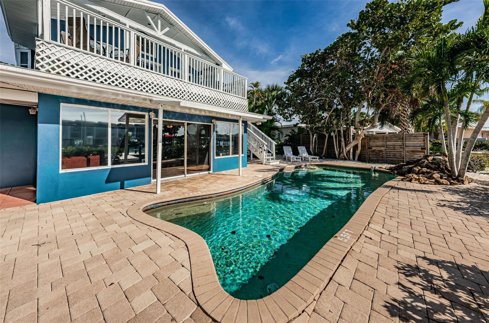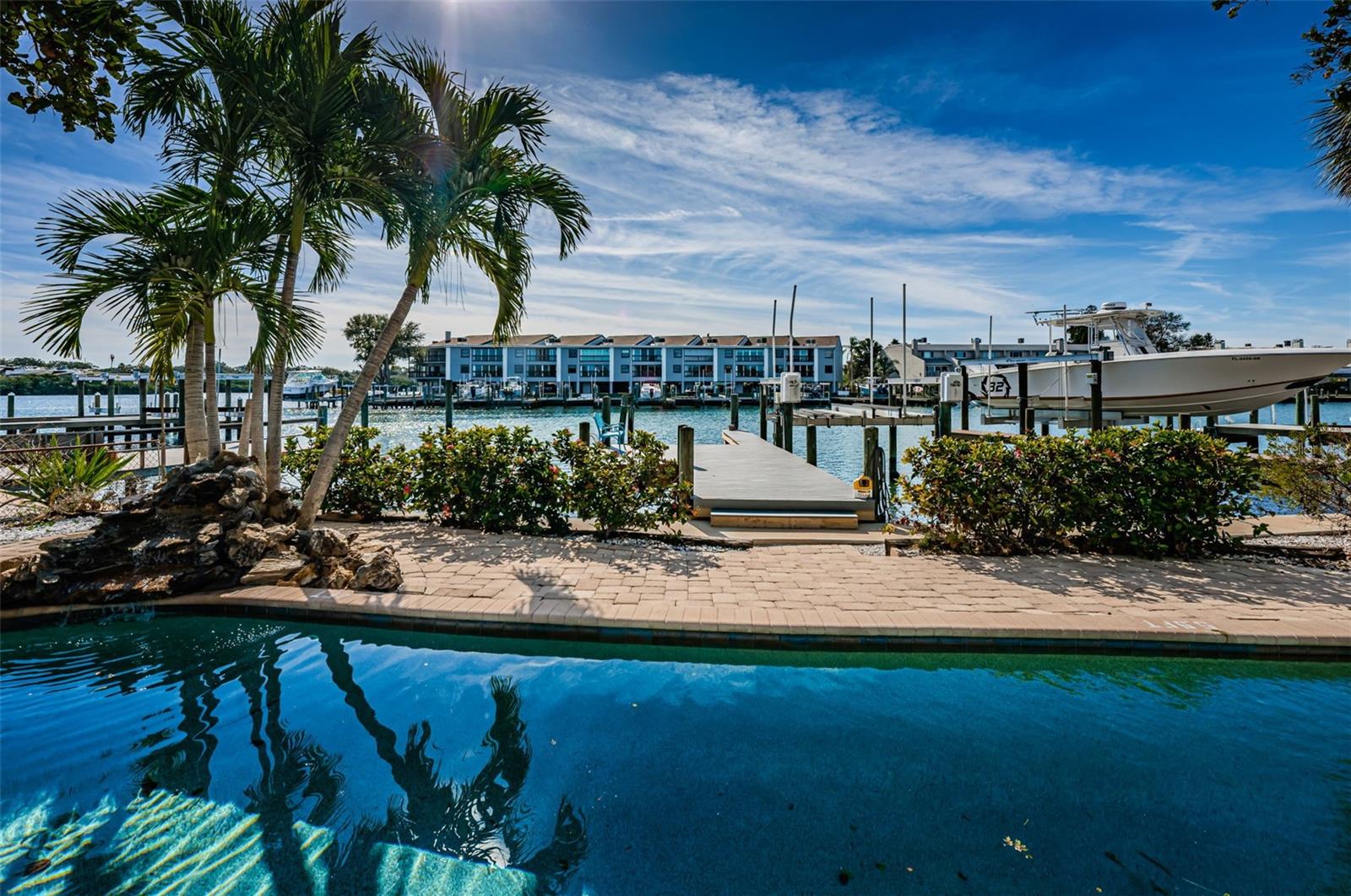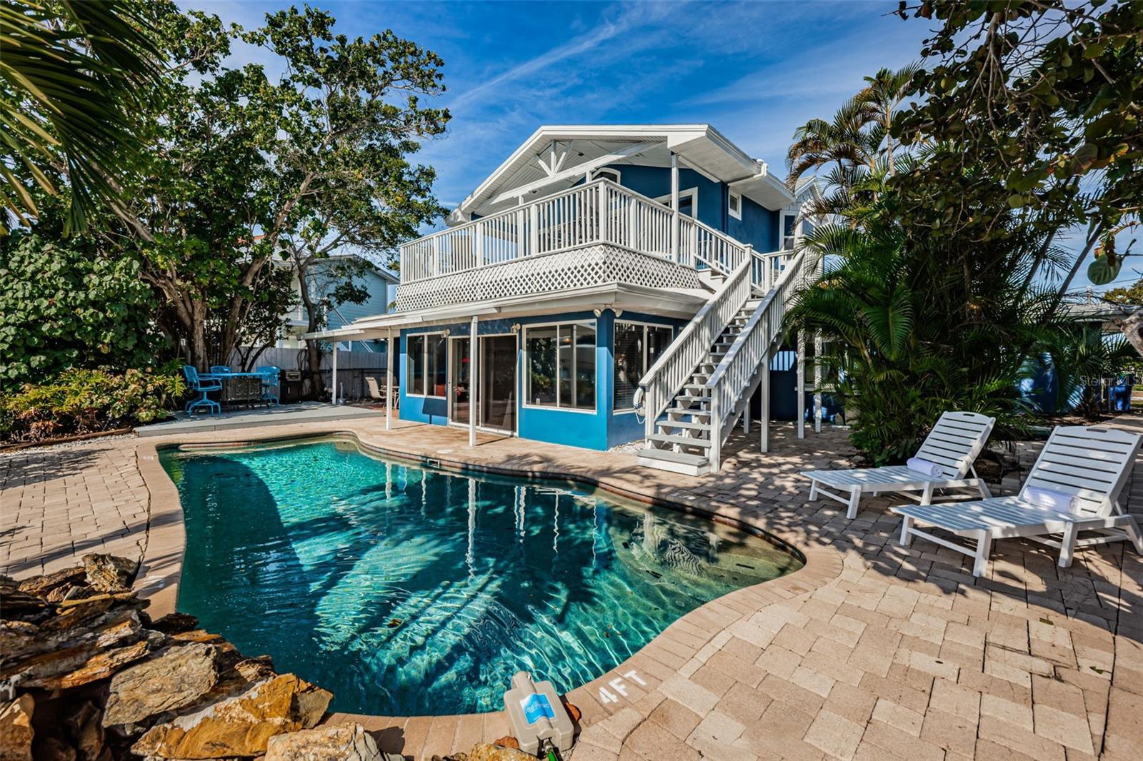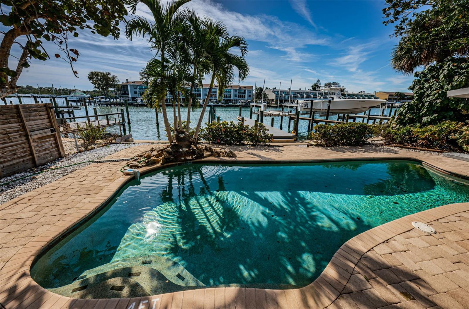 ** Days on Market are higher due to limited showing availability ** This WATERFRONT gem is ready to embrace its new owner. A piece of PARADISE awaits! Own for personal use or as an INVESTMENT. ** Owner FINANCING may be an option ** 2023 gross RENT was just under $94,000 at 78% occupancy through SHORT TERM rental w/ bookings into 2024. This stunning fully FURNISHED POOL home on ~1/4 of an ACRE (.19) features 3 bedrooms, 3 baths (two en-suite baths), with an additional room downstairs, which could be utilized as an office or 4th bedroom, a one car garage, ample room to entertain by the pool, an upstairs deck, which connects to the master suite, & a boat dock with room for multiple boats or jet skis. The floorpan is open, well lit, and inviting! You’ll be captivated the moment you step inside with views of the tropical oasis backyard. The kitchen is spacious with ample cabinetry & opens up to the foyer and dining area. Adjacent to the kitchen, is the washer, dryer, & utility sink. The west side of the home hosts two bedrooms with large closets & two baths. One bedroom faces the water & includes sliding glass doors, which lead to the pool & patio, & an en-suite bath. The other bedroom is towards the front of the home. The optional 4th room is located next to the dining area, & has easy access to plumbing should you desire to renovate this space. Step into the living room, which is wrapped with windows and two sliders, providing you views from every angle. Downstairs flooring consists of tile & terrazzo. Additional storage space is under the stairs & in the hallway between the bedrooms. Upstairs, you’ll find a generous master suite that overlooks the canal & intracoastal waterway, & includes its very own deck, a vaulted ceiling, dual sinks, garden tub, shower, & walk-in closet. Stairs are connected to the deck for easy access to & from the pool area, providing you freedom to enjoy the backyard without disturbing your family downstairs. Relaxation at its best with this PRIVATE & lusciously landscaped & fenced backyard. Stretch out in a lounge chair, take a dip in the pool, or enjoy an afternoon of BBQ & football. The pebble tec POOL is HEATED by solar panels (no payment due). It’s time to hit the water! The boat dock will accommodate two boats and jet skis. The 10K boat lift has electric & water, & is suitable for jet skis (bunks installed), a boat, or a pontoon boat (bunks stored in the garage). UPDATES: downstairs AC (2023), sewer lateral-west side of home (2023), laminate flooring-master & stairs (2023), dock was rebuilt with Trex & new joists (2022), roof (2017), exterior painting (2017), water heater (2017), upstairs AC (2016), 10K boat lift (2015), aluminum back porch (2015), seawall (2014), electrical panel (2000). Indian Rocks Beach is a laid-back, quiet destination with 26 public beach access points, located within minutes to larger cities such as the famous Clearwater Beach, Tampa, & St. Petersburg. Tampa International Airport is ~40 minutes away. The city is golf cart friendly, & hosts a variety of restaurants, shops, parks, fishing piers, tennis courts, a dog park, & more! Nestled towards the end of the cul-de-sac, this non-HOA beauty is the perfect place to unwind. Why wait when you can capture this BOATERS PARADISE today! 3D tour and floorpan are available upon request. Measurements are approximate. Buyer to verify dimensions. Home is rented through Vacasa with 33 reviews (4.5 star rating).