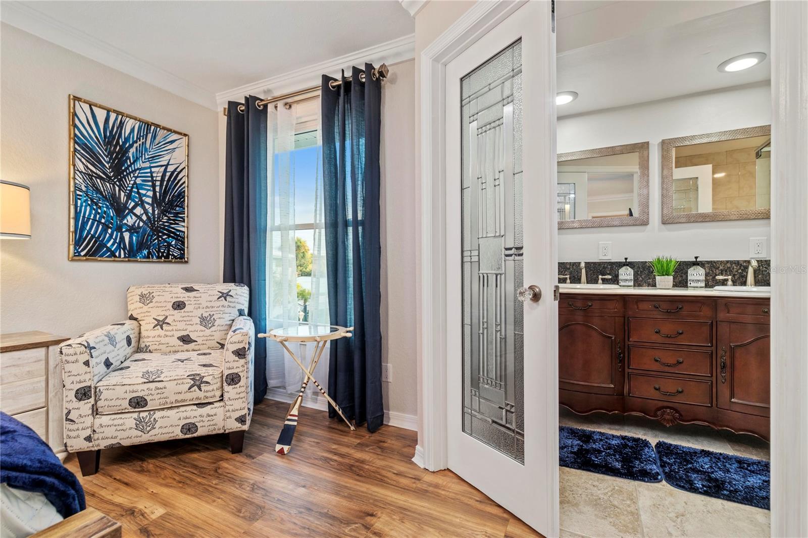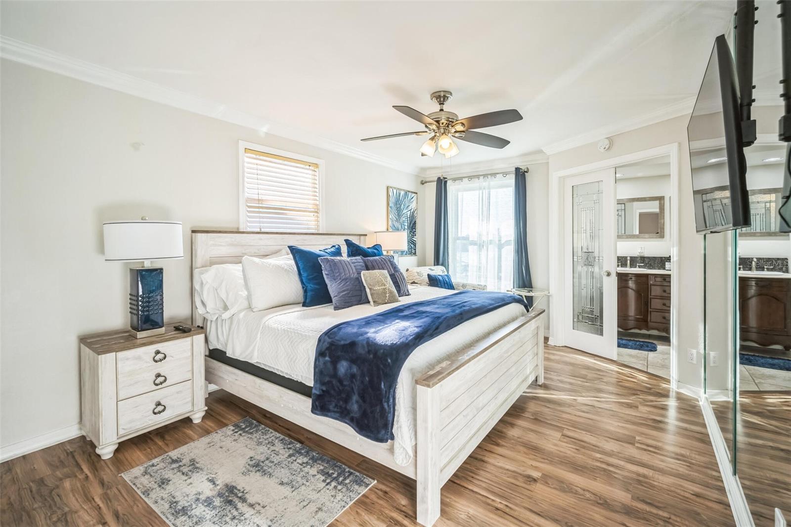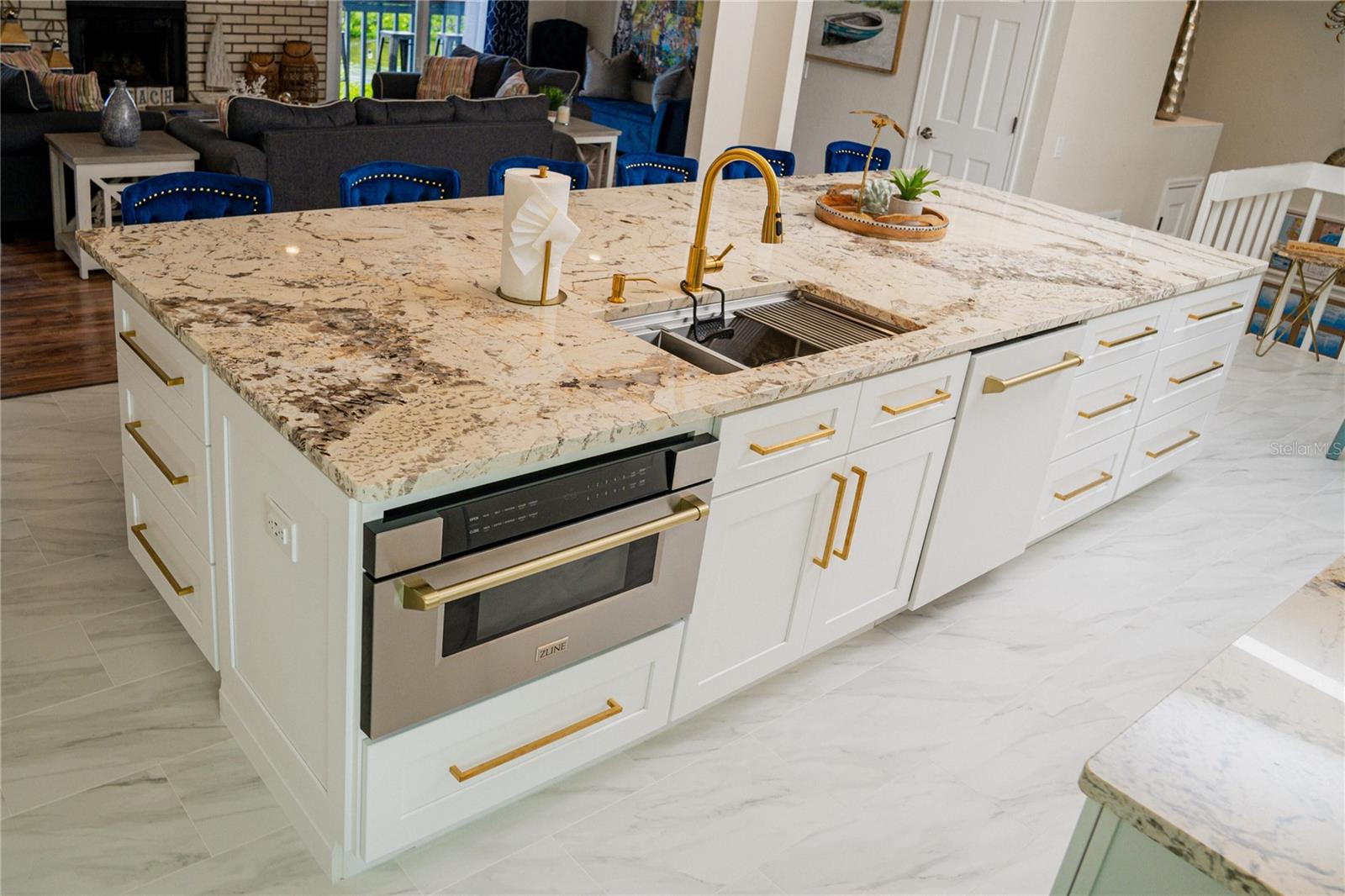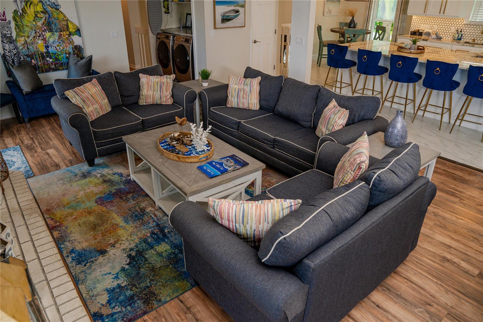 This is an extremely rare home, it has incredible water views from both the front and back of the home. It’s fully furnished and managed by a top-tier operator. It boasts a multiyear proven track record as a rental. It features a spectacularly remodeled, stunning chef’s kitchen featuring a 60” wide fridge, double sinks, a 48” dual fuel gas range and electric double ovens and a massive 13’ x 5.5’ island with bar seating for 7. Positioned on a saltwater canal, the property features a heated pool and a dock equipped with both above and underwater lighting. The seawall has been recently updated, and the boat access has been newly dredged, complemented by a whole-home generator for added convenience. Nestled on a quiet, dead-end street alongside other upscale residences, this home has a balanced blend of tranquility and accessibility, being just moments away from the beach, dining, nightlife, shopping, and a water park. Enjoy leisurely strolls to witness stunning sunsets or dine at nearby beachside restaurants. For the fishing enthusiast, cast a line off your dock or set sail to the Gulf, which is only minutes away via the Clearwater Inlet. This location is great for families of all ages seeking enjoyment. Upon entry through the covered double doors, you are greeted by a marble-tiled foyer leading to a thoughtfully designed interior. The expansive 27-foot family room features a fireplace, built-in shelves, and panoramic water views, with double sliding doors on both sides of the fireplace, that open to a spacious balcony. The kitchen showcases elegant, all wood shaker cabinetry, granite countertops, finished stainless steel appliances, a marble tile backsplash and ceramic tile flooring. Adjacent to the kitchen, the dining room is a part of the great room that has the kitchen, dining and family room, all has views of the intracoastal waters. Even the loft/breakfast area provides additional water views. High end LVP waterproof flooring extends through the family room, hallway, and bedrooms, complemented by ceramic tiles in the kitchen and bathrooms. The master en-suite boasts a walk-in closet with French doors leading to a luxurious master bath, which includes a double vanity with granite countertops, a tiled walk-in shower with a glass enclosure, dual shower heads, a stained glass window, and a jacuzzi tub. The guest bath features a beautifully tiled walk-in shower with a glass door and a stylish vanity. Downstairs, a generous 24'x16' bonus room with sliding glass doors opens to the pool and lanai area. The pool, heated and surrounded by elegant travertine pavers, overlooks the dock and waterway. Additional features include a brand new Generac natural gas full house generator, brand new roof, a new gas pool heater, and a tankless gas water heater. The expansive backyard offers ample space for both covered and uncovered entertaining. Numerous enhancements and upgrades to this home are too extensive to list. This property is a must-see! Your dream of Florida living awaits!.