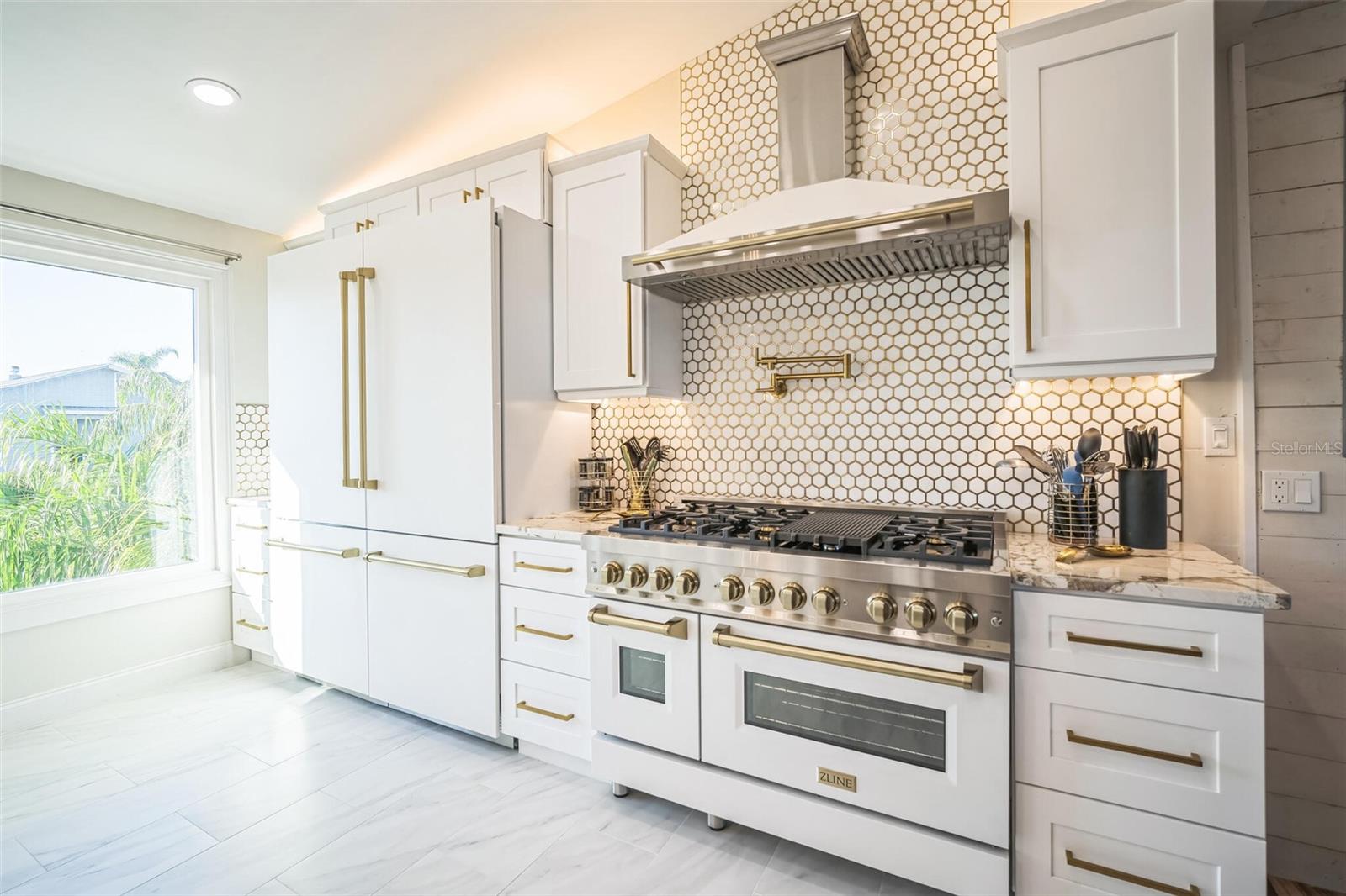 150k kitchen remodeled, just finished – Fully Furnished & Turnkey Rarely available waterfront home with beautiful water views from both the front and back. Fully furnished and professionally maintained with a strong rental history. Located on a quiet dead-end street just minutes from the beach, dining, shopping, and local attractions. Freshly painted on the exterior in a tasteful cream color, the home has a chic and coastal aesthetic that complements its waterfront setting. Situated on a saltwater canal, the property includes a heated pool, private dock with above- and underwater lighting, dredged boat access, an updated seawall, and a whole-home Generac generator. Inside, a 27-ft family room features a fireplace and sliding doors opening to a large balcony overlooking the water. The remodeled chef’s kitchen includes a 60” built-in refrigerator, 48” dual-fuel range with double ovens, double sinks, granite countertops, marble backsplash, and a massive 13’ x 5.5’ island with seating for seven. The kitchen flows into the dining and family areas, all with views of the Intracoastal. The primary suite includes a walk-in closet, double vanity with granite, tiled walk-in shower with glass enclosure, dual shower heads, jacuzzi tub, and a decorative stained-glass window. The guest bathroom is also fully updated. The lower level features a spacious 24’ x 16’ room with sliding doors that open to the pool and lanai area, finished with travertine pavers and plenty of space for outdoor entertaining. Major updates include: a brand-new roof, new natural gas pool heater, new tankless gas water heater, updated seawall, generator, and more. Too many upgrades to list—this turnkey property is a must-see!