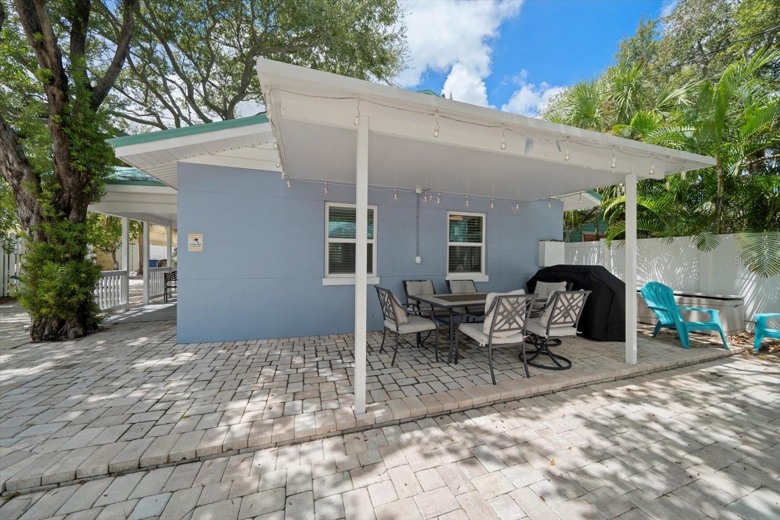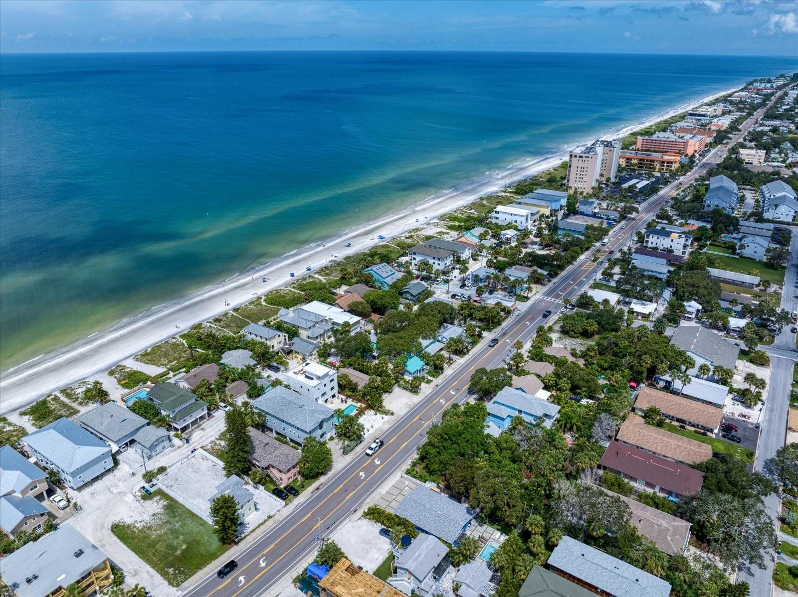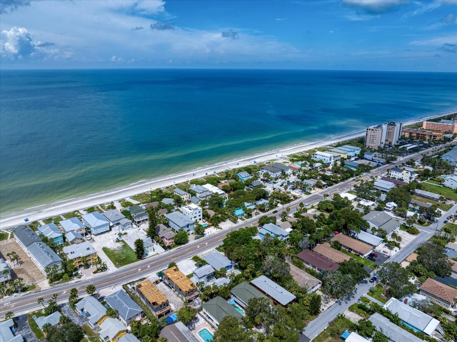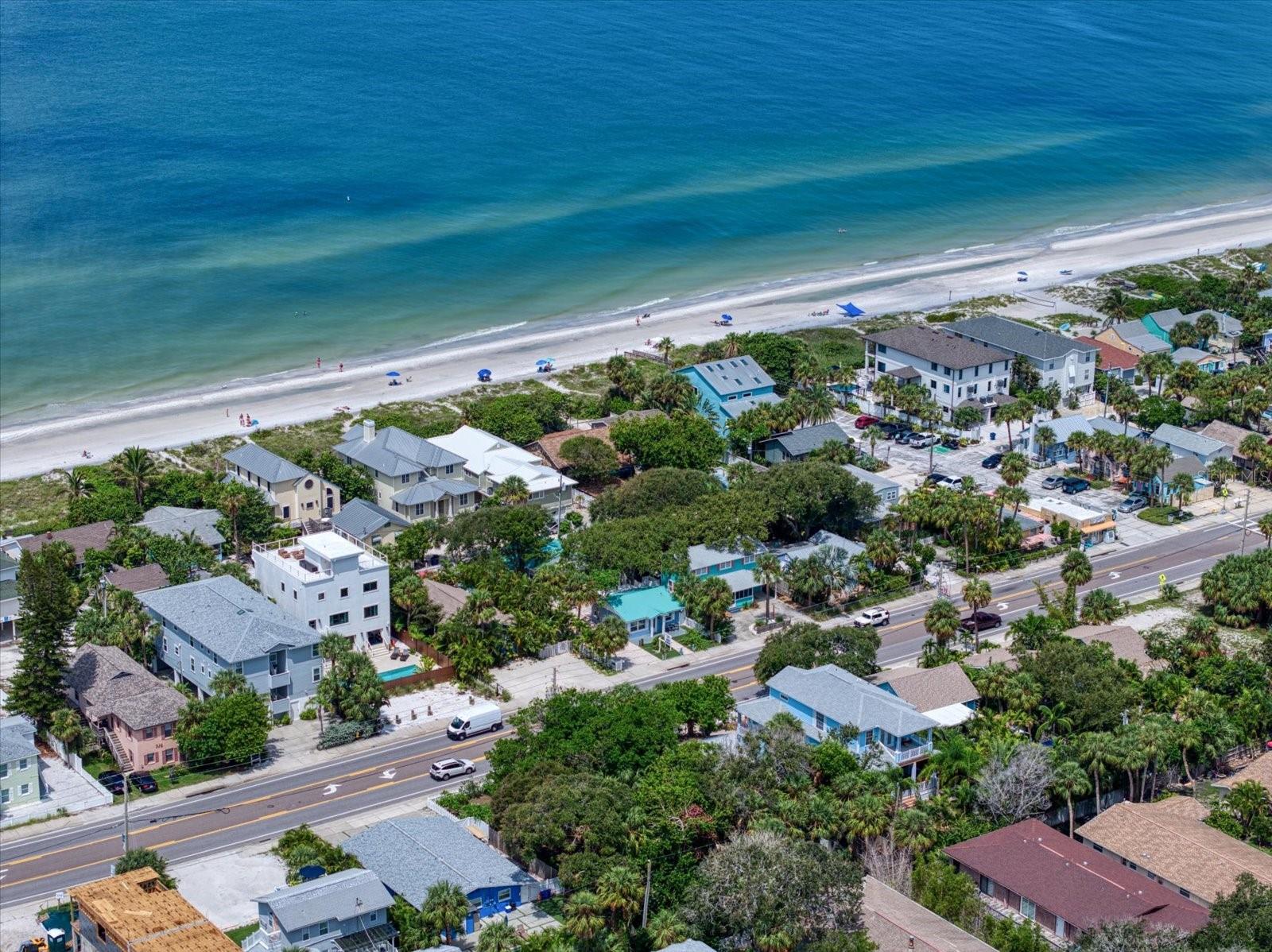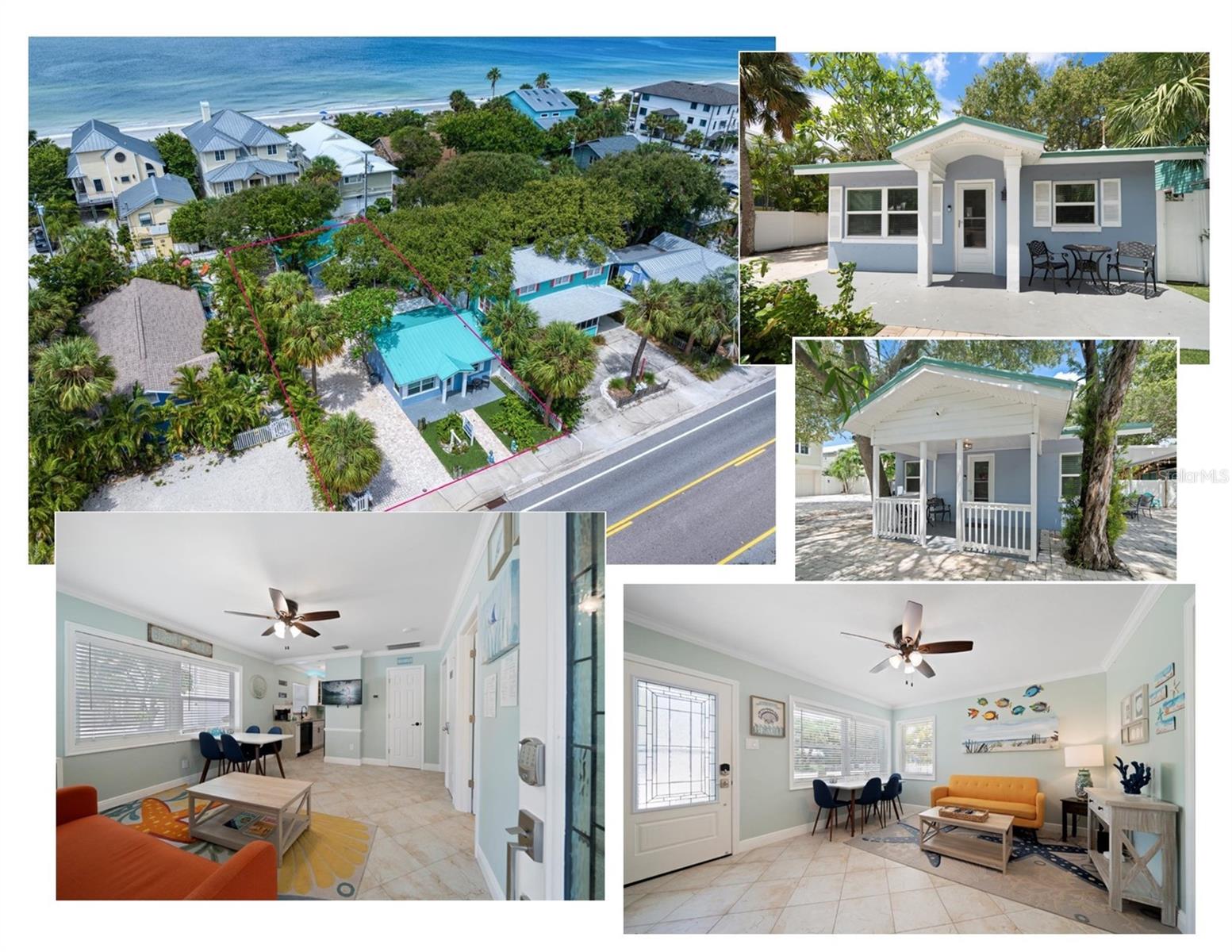 These two recently updated and turn-key, single-family beach cottages sit on the coveted West side of Gulf Blvd, surrounded by beautiful shade trees and lush tropical landscaping, offering a charming, Florida feel that is hard to come by. Just steps away from the pristine white sugar sands of Indian Rocks Beach, this property is the ideal retreat for both vacationers and owners seeking a tranquil getaway. Each cottage is fully furnished, featuring tile flooring throughout, newly remodeled bathrooms, and full kitchens that have been thoughtfully upgraded with custom shaker cabinetry, stunning waterfall edge counters, and graphite stainless-steel appliances. The kitchens are accented by a custom backsplash, adding a touch of modern elegance to these cozy, inviting spaces. For added convenience, the cottages are each equipped with front-loading washer and dryer units, making laundry a breeze. The outdoor space, surrounded with white privacy fence, was designed for relaxation and easy living. The maintenance-free turf ensures you spend more time enjoying your surroundings and less time on upkeep, while the pavered driveway provides a warm welcome as you arrive home. The metal roofs (only 2 years old) add extra charm to the Beach cottages. Guests and owners alike can lounge on their patios, savor the sea breeze, and dine al fresco after a day at the beach. An outdoor shower offers the perfect spot to rinse off after a sandy day by the shore. As evening falls, take a sunset stroll along the beach before heading out to enjoy live music and some of the best seafood the area has to offer. The unbeatable location allows you to venture out to nearby shopping, dining, and recreational activities, or hop on the beach trolley to explore the vibrant local scene. This property is not only a serene coastal escape but also a lucrative investment. The current owners rent both units short-term on Airbnb, boasting an excellent rental history and future revenue already on the books. Whether you choose to rent one unit and live in the other or enjoy the income from both, this stunning property is ready to go.
