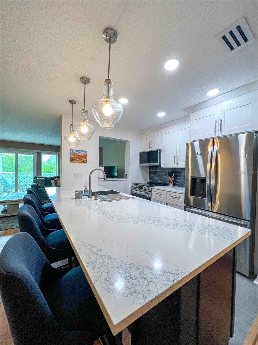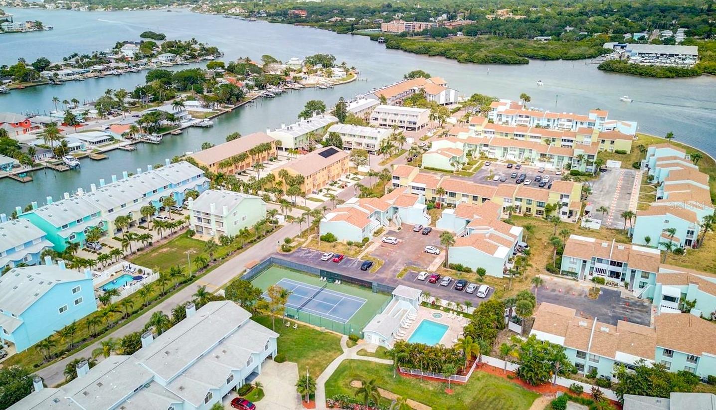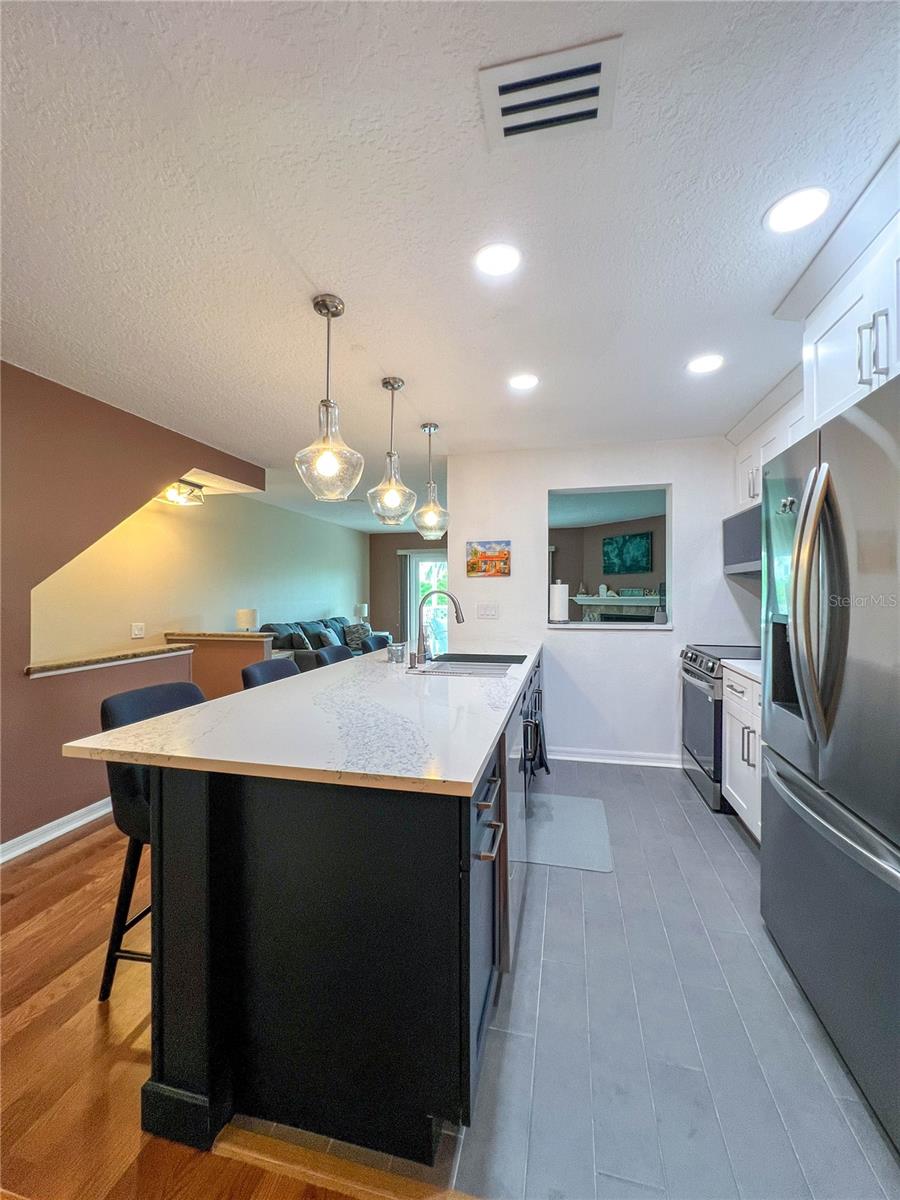 Welcome to the coastal vibe of Indian Rocks Beach and the waterfront community of Curlew Landings!!! This must see remodeled 3 bedroom, 2 and a half bath features a beautiful new kitchen with quartz countertops and large bar area with four chairs highlighted with elegant pendant lighting, custom white wood cabinets, recessed lighting, tile flooring and new stainless steel appliances! The dining room features plenty of space for a dining table that seats six and additional built-in custom white wood cabinets offering tons of storage! This massive 21’ x 13’.8” space is great for entertaining and flows into the 16’ x 17’ living room with its cozy corner fireplace, wood flooring, kitchen pass through, and hurricane rated sliding glass door that leads to the second-floor private balcony. The seller has already paid the $21K assessment for the new timber tech no maintenance balconies that are coming!!! Also on the second floor is a guest bedroom that features en-suite access to the guest bathroom, wood flooring, fan, beautiful custom window with lots of natural light and a large walk-in closet. On the ground floor is an oversized tiled one car garage with storage that opens through a sliding glass door into the massive 26’ x 17’ tiled room featuring a half bath and endless possibilities for an office, workout room, kid’s playroom or bedroom. Additional features include a utility sink, fan and a hurricane rated sliding glass door that opens onto a patio that has enough room for a grill and bench chair. The third floor is where the washer & dryer is conveniently located for the master bedroom and second guest room which both feature wood flooring and fans. The master bedroom has a nice size walk-in closet, and a hurricane rated sliding glass door to a private balcony with space to sit and enjoy the sunset! The large, tiled bathroom features a decorative bowl sink, plenty of storage, and tub/shower combination. Community amenities complement everything that the beach has to offer with its pool and sundeck, tennis and Pickleball courts, and a kayak launch for exploring the picturesque waterways. Located close to shops and restaurants, less than two blocks from the sandy beaches.