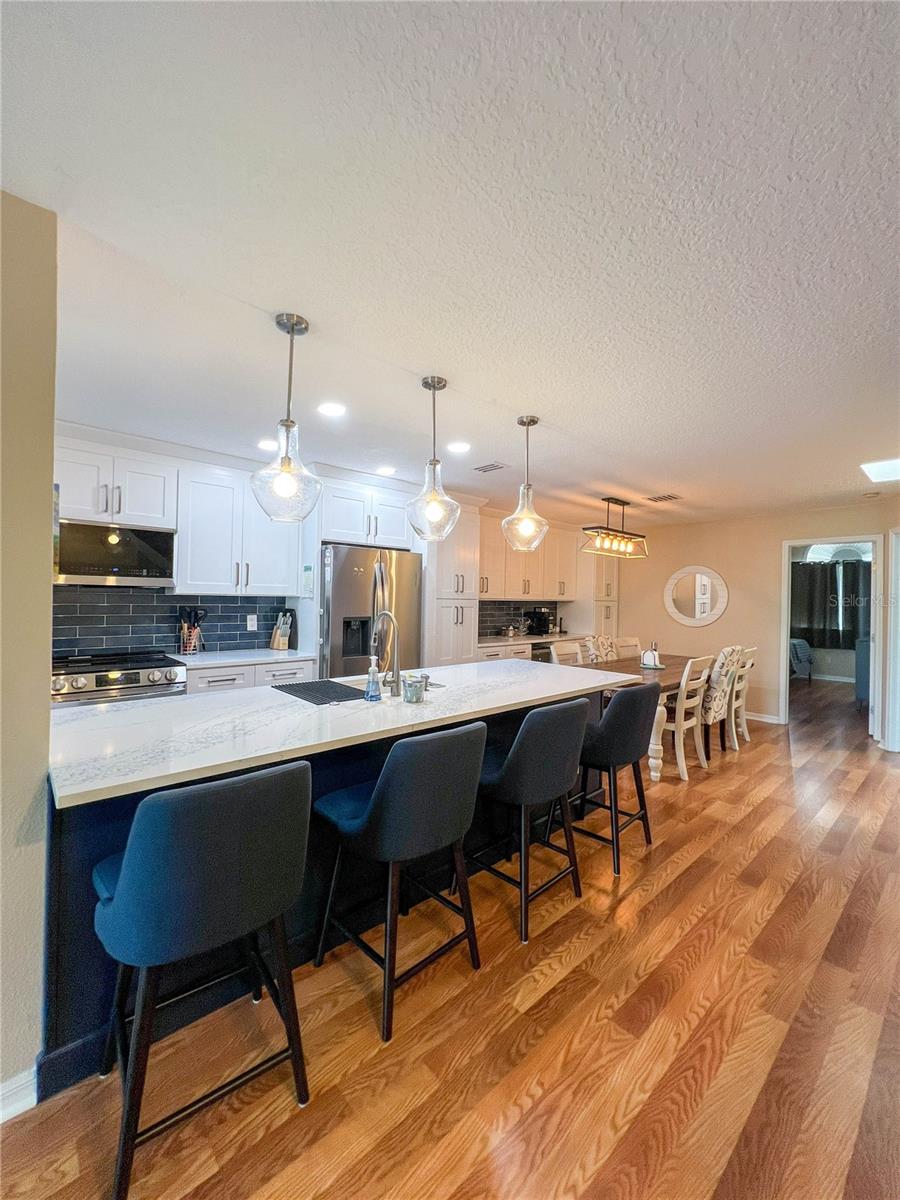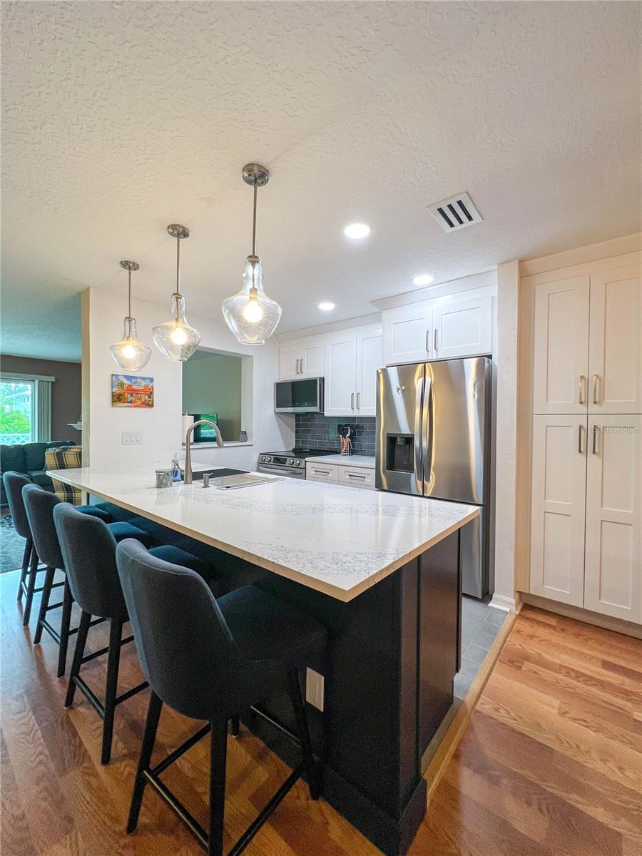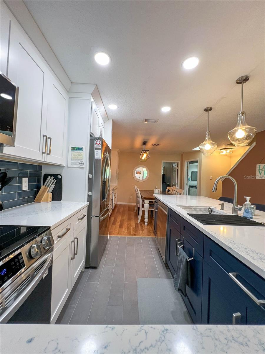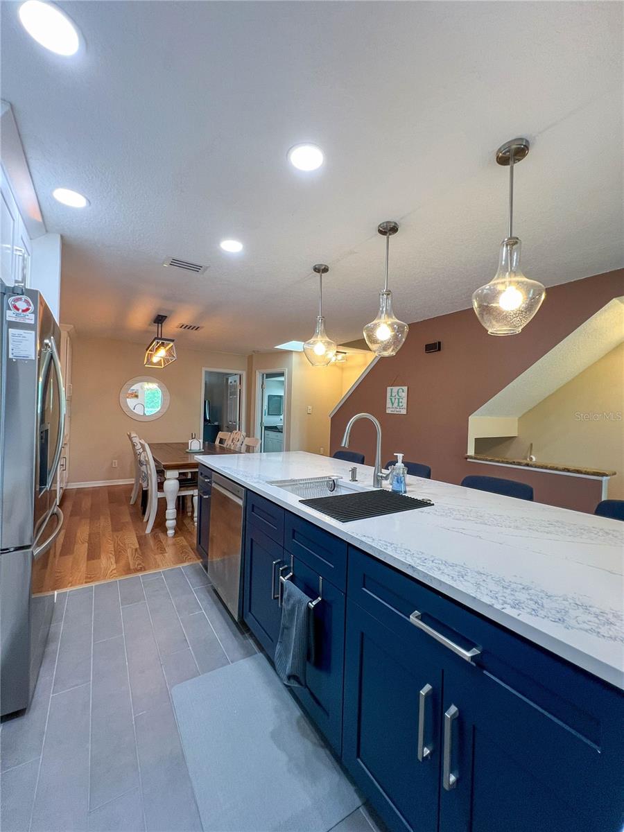Welcome to the coastal vibe of Indian Rocks Beach and the waterfront community of Curlew Landings!!! This must see remodeled 3 bedroom, 2 and a half bath features a beautiful new kitchen with quartz countertops and large bar area with four chairs highlighted with elegant pendant lighting, custom white wood cabinets, recessed lighting, tile flooring and new stainless steel appliances! The dining room features plenty of space for a dining table that seats six and additional built-in custom white wood cabinets offering tons of storage! This massive 21’ x 13’.8” space is great for entertaining and flows into the 16’ x 17’ living room with its cozy corner fireplace, wood flooring, kitchen pass through, and hurricane rated sliding glass door that leads to the second-floor private balcony. The seller has already paid the $21K assessment for the new timber tech no maintenance balconies that are coming!!! Also on the second floor is a guest bedroom that features en-suite access to the guest bathroom, wood flooring, fan, beautiful custom window with lots of natural light and a large walk-in closet. On the ground floor is an oversized tiled one car garage with storage that opens through a sliding glass door into the massive 26’ x 17’ tiled room featuring a half bath and endless possibilities for an office, workout room, kid’s playroom or bedroom. Additional features include a utility sink, fan and a hurricane rated sliding glass door that opens onto a patio that has enough room for a grill and bench chair. The third floor is where the washer & dryer is conveniently located for the master bedroom and second guest room which both feature wood flooring and fans. The master bedroom has a nice size walk-in closet, and a hurricane rated sliding glass door to a private balcony with space to sit and enjoy the sunset! The large, tiled bathroom features a decorative bowl sink, plenty of storage, and tub/shower combination. Community amenities complement everything that the beach has to offer with its pool and sundeck, tennis and Pickleball courts, and a kayak launch for exploring the picturesque waterways. Located close to shops and restaurants, less than two blocks from the sandy beaches.
