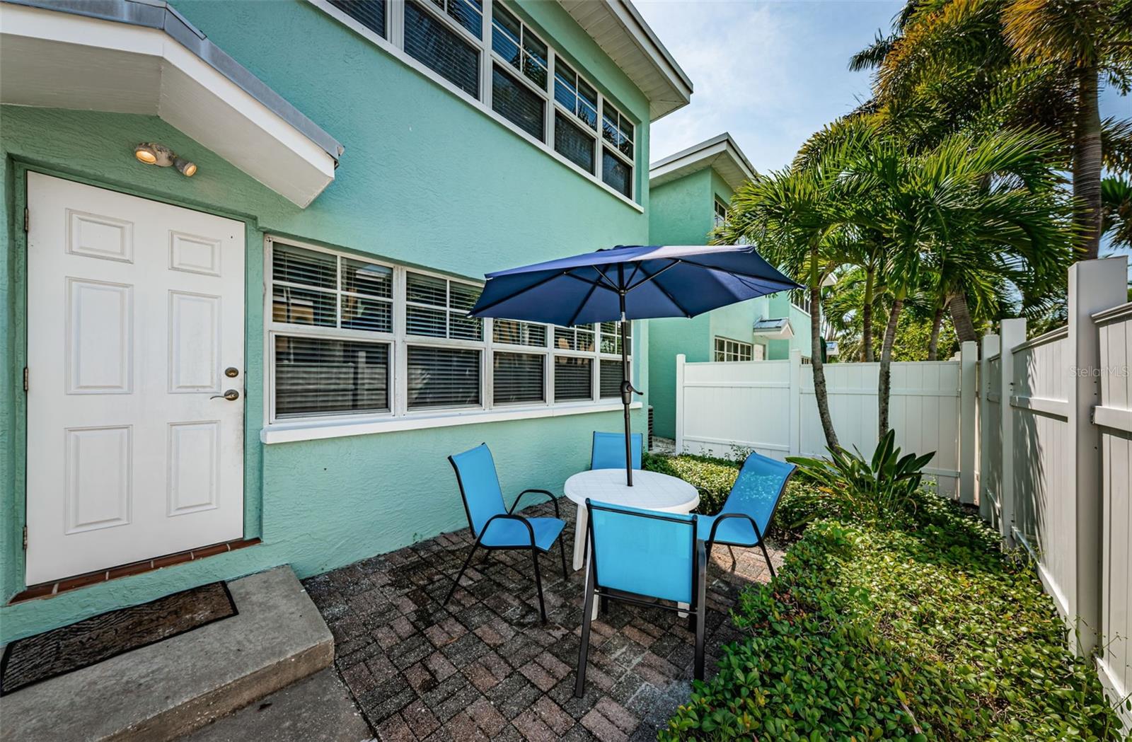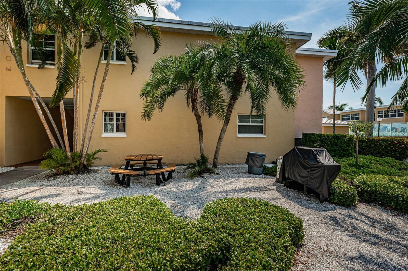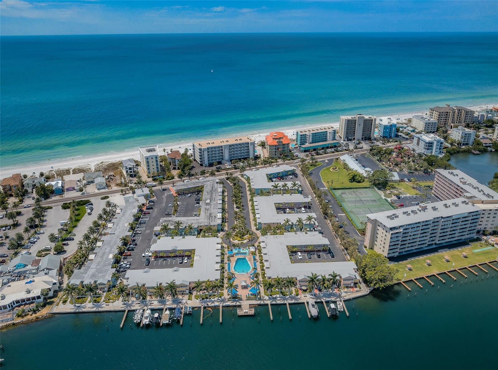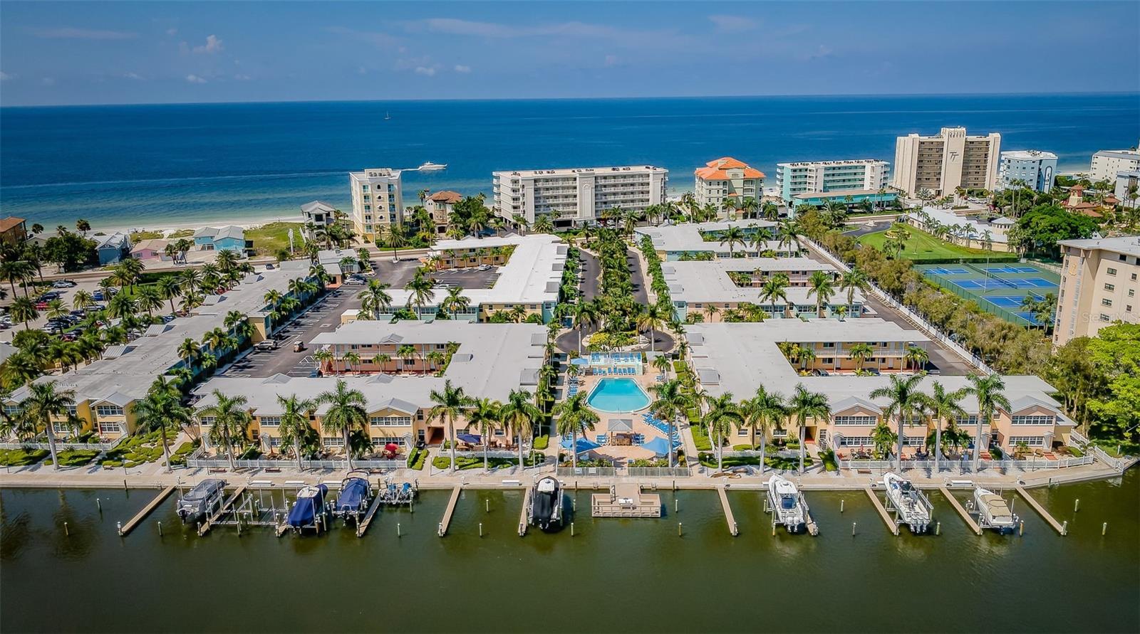 This ground-floor condo flooded on Sept. 27th, 2024 by Hurricane "Helene" but will be fully restored after remediation by Barefoot Beach Resort HOA. Short term rentals... with VINLY FENCED BACKYARD PATIO...GROUND FLOOR...NO STAIRS... YOU FOUND PARADISE in INDIAN SHORES - nestled between the Gulf of Mexico and the Intracoastal Waterway. NO PETS! All new tile flooring & newer A/C in this 2 Bedroom, 1 Bath (950 sqft) corner unit with BONUS SUNROOM offering to SLEEP 6 or more, and...AMAZING BACKYARD PATIO with PRIVATE GATE BACK ENTRY - just steps to white Gulf Beaches across Gulf Blvd. (privately deeded beach access and safe cross-walk)! Move-in ready & TURNKEY, OPEN FLOOR PLAN with attractive color scheme, ceramic tile floors & closets galore. Kitchen is fully equipped; Living Room & Dining Room feature built in wet bar with plenty of counter and cabinet space, plus flat screen TV. Bedrooms 1 & 2 are split, The SUNROOM can accommodate a pullout sofa or can be used as an OFFICE. BACK PATIO features outdoor lighting, table, chairs & umbrella - access to Sunroom. Barefoot Beach Resort is a true WATERFRONT OASIS with LUSH LANDSCAPE featuring HEATED POOL, SUN DECK, new community FISHING DOCK, BBQ GRILLS, outdoor picnic areas, multiple laundry rooms, bike storage, club room, PRIVATE BOAT SLIPS are subject to availability for rent or purchase. Cable & Internet, water, sewer, trash pick-up, insurance, maintenance and all common area are included in your HOA Fee (monthly $1,017.-). NO RENTAL PERIOD RESTRICTIONS: an ideal investment property, second home, or primary residence as this complex does not require or limit the days an owner can use their unit. In other words, you do not need to rent the unit, however, if you choose to rent, you may. For your convenience, there is an on-site rental / property management company, you can hire your own, or rent the unit yourself (AirBnB). So many FLEXIBLE OPTIONS at Barefoot Beach offering everything you could ever dream and more. Barefoot Beach Resort is located on 6 PRIME ACRES along 400 FEET of Intracoastal Waterway and is a completely refurbished development in 2006. Located in quaint BEACH TOWN of Indian Shores on the Gulf of Mexico with nearby dining, shopping, miniature golf and white sugar sand beach. Catch the Suncoast BEACH TROLLEY at the front of complex and it will take you up and down the Pinellas Beach Coast for a fun day of adventure. Close to famous John's Pass, Downtown St. Pete with restaurants, nightlife, museums and a pier with entertainment for all. 2 International Airports to serve you. TPA is 45 mins and PIE is 25 mins away. GREAT rental income and perfect for a 1031 tax-deferred Exchange. Hurry, this won't last!