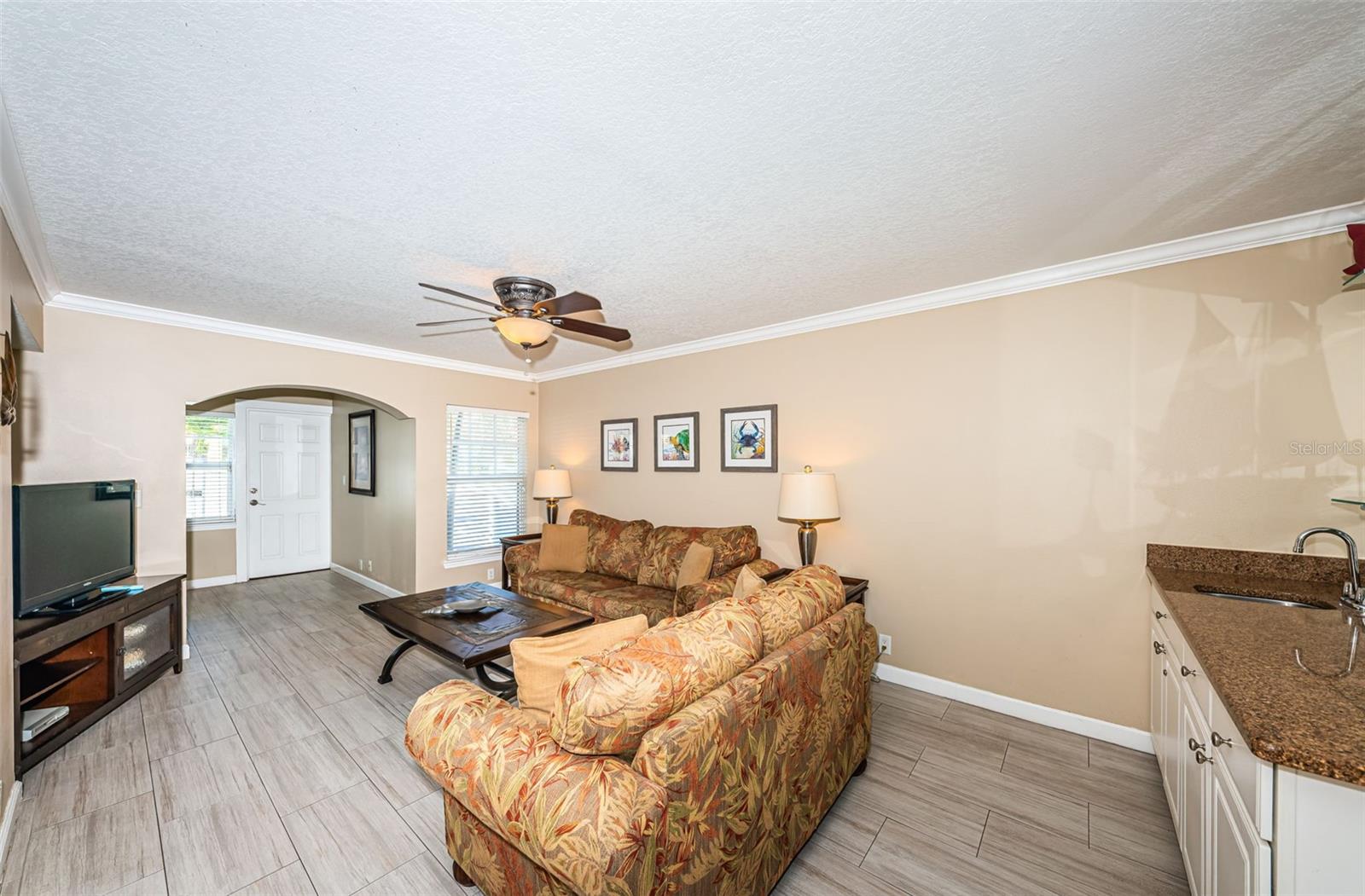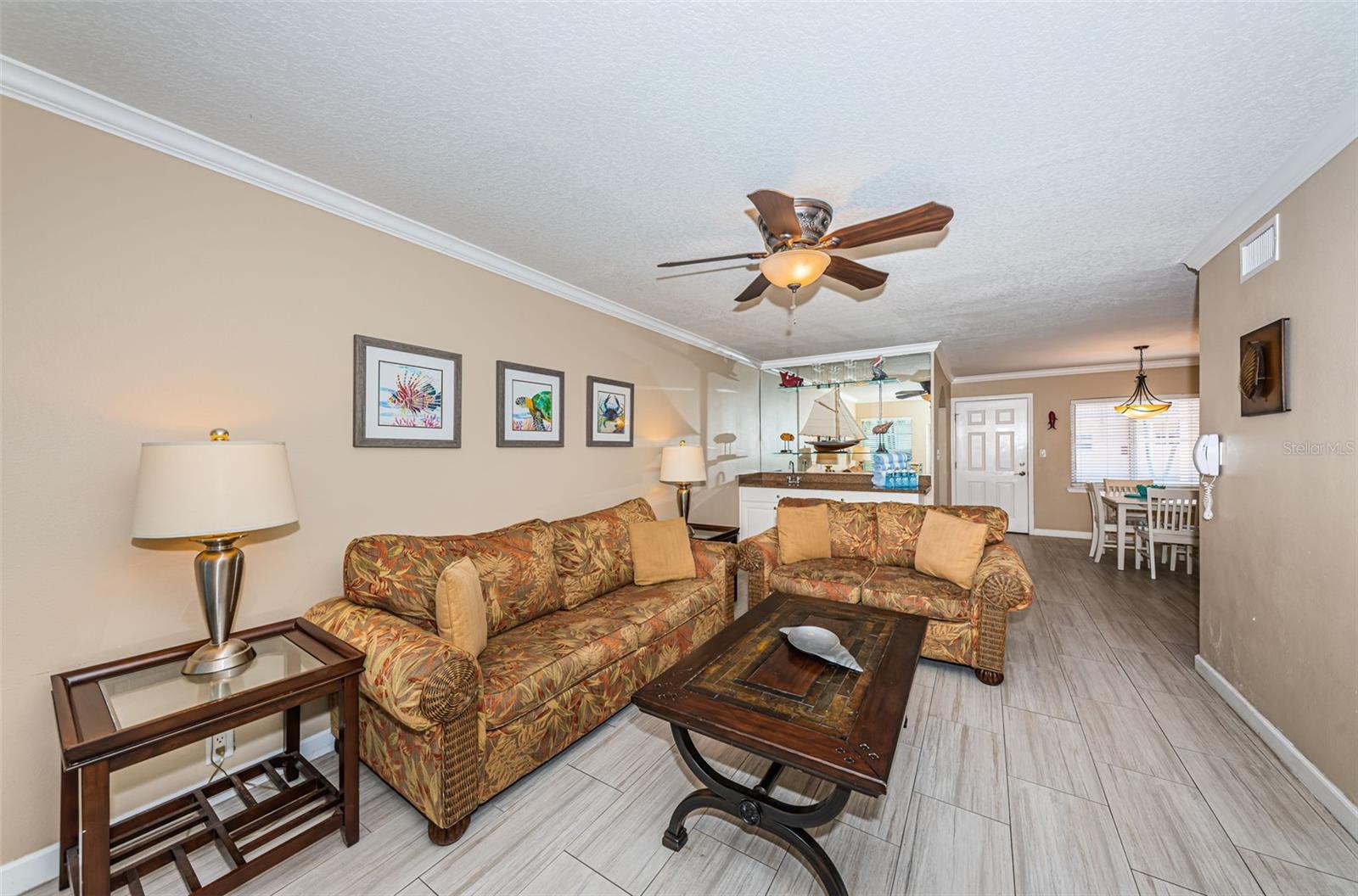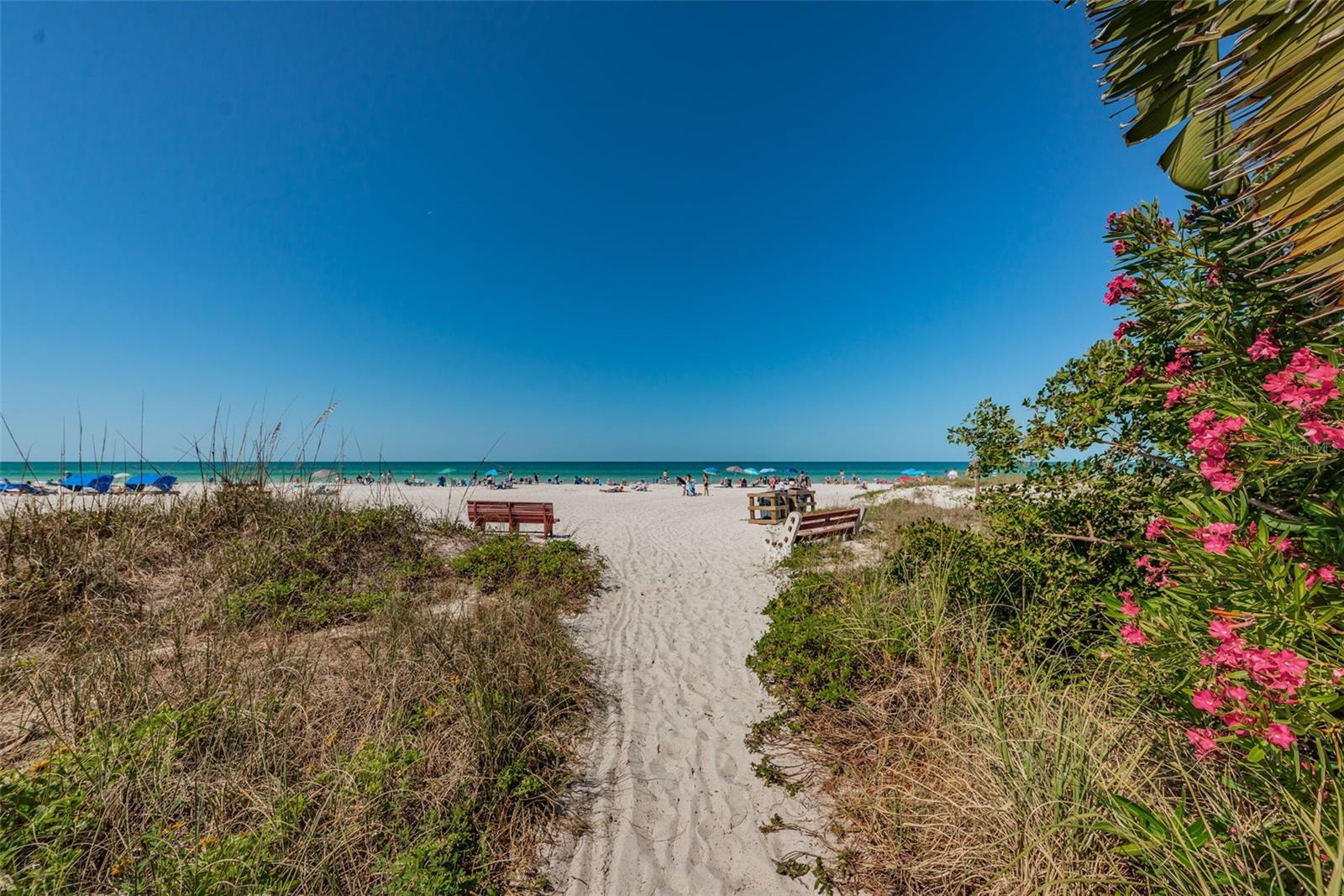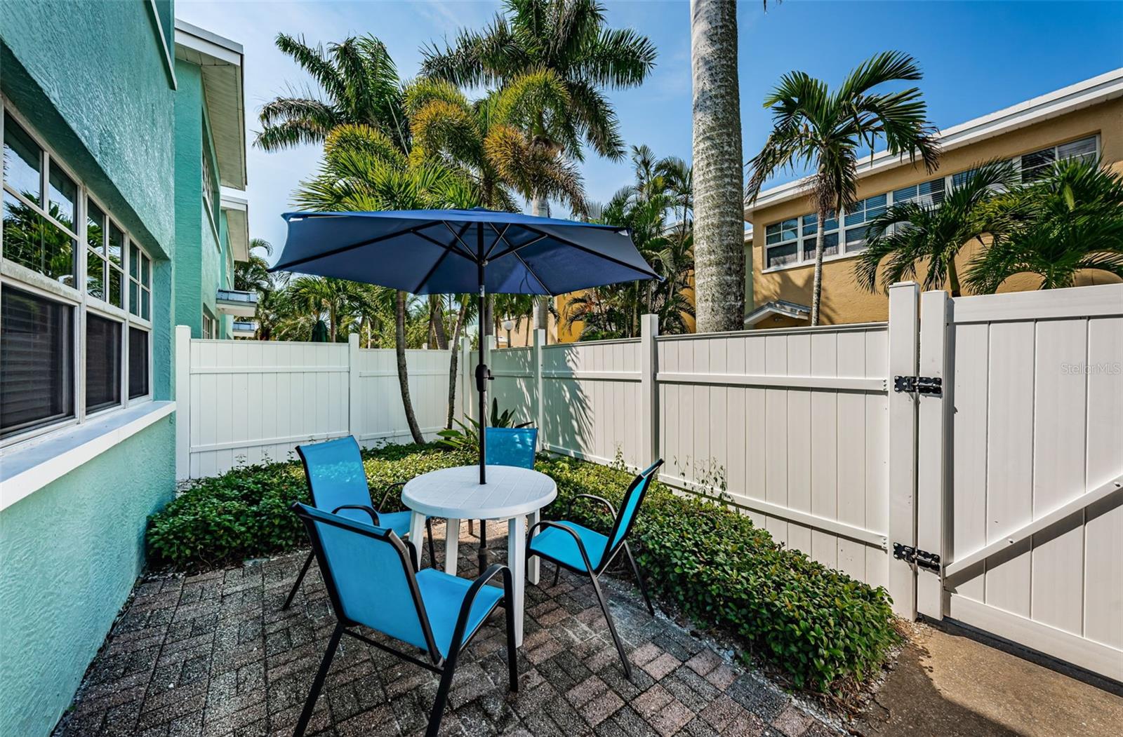 This ground-floor condo flooded on Sept. 27th, 2024 by Hurricane "Helene" but will be fully restored after remediation by Barefoot Beach Resort HOA. Short term rentals... with VINLY FENCED BACKYARD PATIO...GROUND FLOOR...NO STAIRS... YOU FOUND PARADISE in INDIAN SHORES - nestled between the Gulf of Mexico and the Intracoastal Waterway. NO PETS! All new tile flooring & newer A/C in this 2 Bedroom, 1 Bath (950 sqft) corner unit with BONUS SUNROOM offering to SLEEP 6 or more, and...AMAZING BACKYARD PATIO with PRIVATE GATE BACK ENTRY - just steps to white Gulf Beaches across Gulf Blvd. (privately deeded beach access and safe cross-walk)! Move-in ready & TURNKEY, OPEN FLOOR PLAN with attractive color scheme, ceramic tile floors & closets galore. Kitchen is fully equipped; Living Room & Dining Room feature built in wet bar with plenty of counter and cabinet space, plus flat screen TV. Bedrooms 1 & 2 are split, The SUNROOM can accommodate a pullout sofa or can be used as an OFFICE. BACK PATIO features outdoor lighting, table, chairs & umbrella - access to Sunroom. Barefoot Beach Resort is a true WATERFRONT OASIS with LUSH LANDSCAPE featuring HEATED POOL, SUN DECK, new community FISHING DOCK, BBQ GRILLS, outdoor picnic areas, multiple laundry rooms, bike storage, club room, PRIVATE BOAT SLIPS are subject to availability for rent or purchase. Cable & Internet, water, sewer, trash pick-up, insurance, maintenance and all common area are included in your HOA Fee (monthly $1,017.-). NO RENTAL PERIOD RESTRICTIONS: an ideal investment property, second home, or primary residence as this complex does not require or limit the days an owner can use their unit. In other words, you do not need to rent the unit, however, if you choose to rent, you may. For your convenience, there is an on-site rental / property management company, you can hire your own, or rent the unit yourself (AirBnB). So many FLEXIBLE OPTIONS at Barefoot Beach offering everything you could ever dream and more. Barefoot Beach Resort is located on 6 PRIME ACRES along 400 FEET of Intracoastal Waterway and is a completely refurbished development in 2006. Located in quaint BEACH TOWN of Indian Shores on the Gulf of Mexico with nearby dining, shopping, miniature golf and white sugar sand beach. Catch the Suncoast BEACH TROLLEY at the front of complex and it will take you up and down the Pinellas Beach Coast for a fun day of adventure. Close to famous John's Pass, Downtown St. Pete with restaurants, nightlife, museums and a pier with entertainment for all. 2 International Airports to serve you. TPA is 45 mins and PIE is 25 mins away. GREAT rental income and perfect for a 1031 tax-deferred Exchange. Hurry, this won't last!