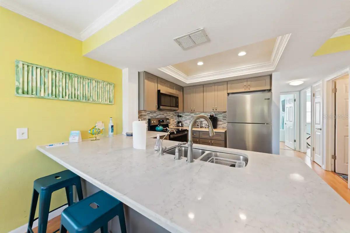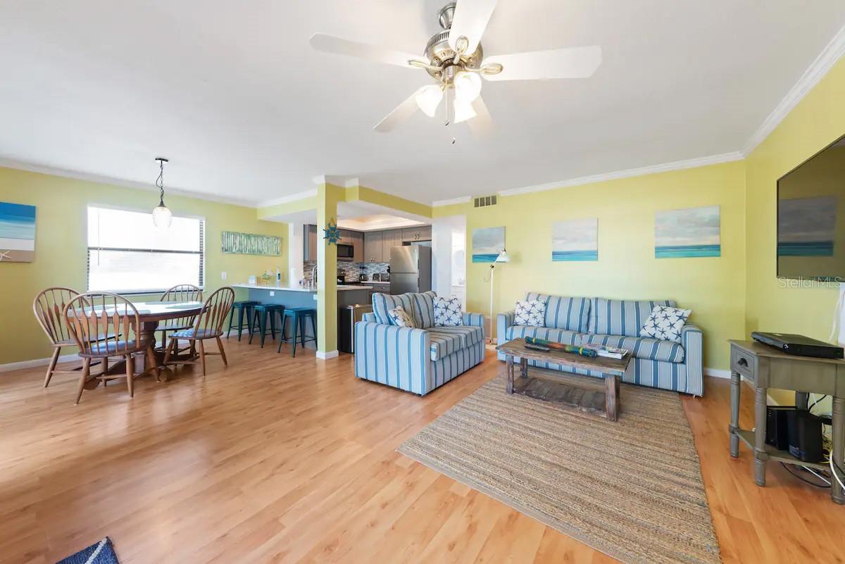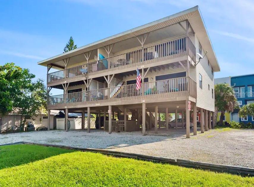 Currently, a well-booked vacation rental generating $55,000+ income for the last 2 years and projected to gross over $60,000 for 2025. This ELEVATED and beautifully furnished 2-bedroom condo is located on sought-after Indian Rocks Beach, just across from the beach, with a relaxed coastal vibe, perfect for enjoying the Florida lifestyle. Whether you're seeking a new primary home, vacation getaway, or a turn-key investment property, this fully stocked condo has it all, ready for you to enjoy. Highlights include an updated kitchen with stainless steel appliances, a spacious living area with tasteful coastal furnishings, in-unit washer & dryer, a west-facing private balcony with partial Gulf views, and an easy walk to the beach for some sunshine and calming waves. The covered parking spaces under the building offer convenience and shade from the sun. Brand new AC, new roof this year, and 2015 water heater. The unit has a proven history as a successful short-term rental with solid income potential. Indian Rocks is alive and well. Local businesses are quickly recovering from storm damage with many already open and welcoming guests. With local shops, restaurants, and attractions nearby, this is the ideal spot to enjoy everything Indian Rocks Beach has to offer for years to come. Don't miss your opportunity to own this turnkey, income-producing condo in one of the most desirable beach towns on the Gulf Coast!
