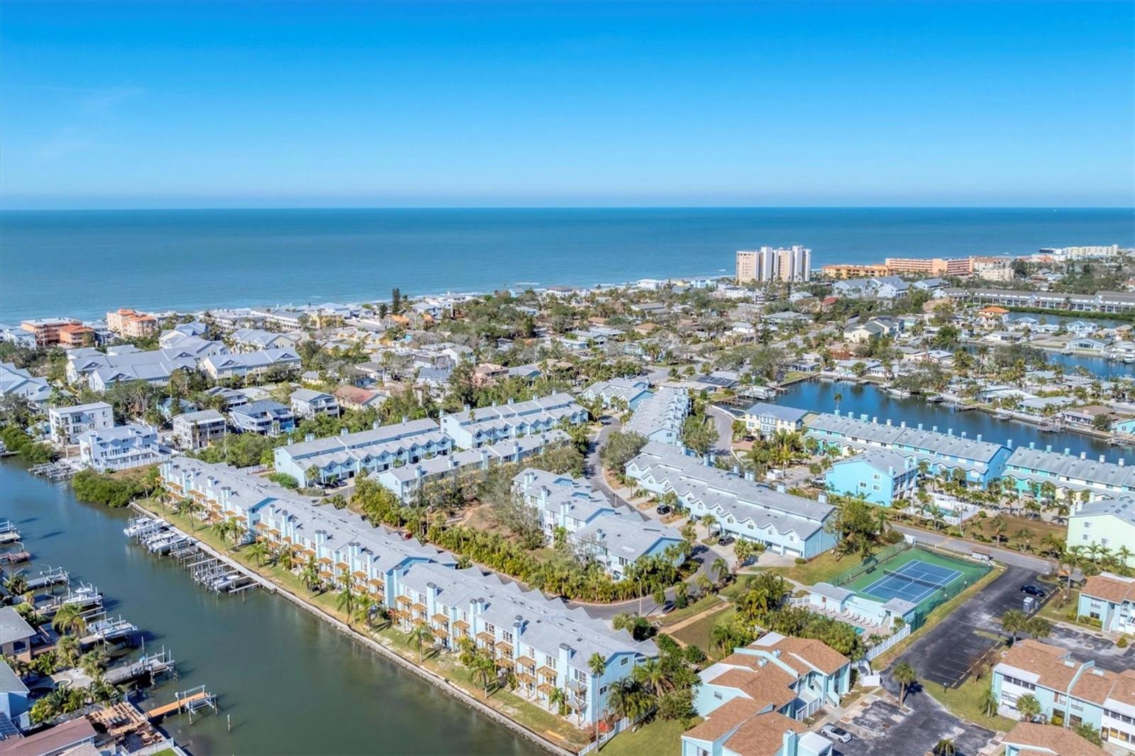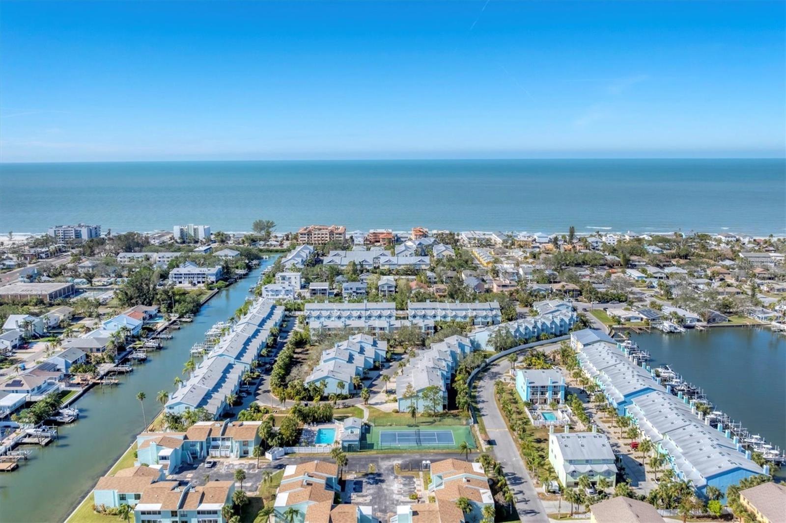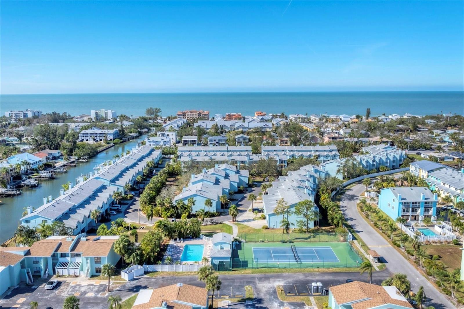 Beach lovers, welcome to your turnkey furnished home! This 2-bedroom, 2-bath townhouse with a 1-car garage offers the quintessential coastal lifestyle in the heart of Indian Rocks Beach. Nestled on the idyllic barrier island of Sand Key, this charming home is steps away from over two miles of pristine Gulf beaches and 26 public beach accesses. Indian Rocks Beach is a nostalgic, golf cart-friendly beach town known for its relaxed vibe and fantastic dining options. This townhouse features an open floor plan, vaulted ceilings, and water views from the living room and primary bedroom. The kitchen is a chef’s delight, complete with granite countertops, newer stainless steel appliances (refrigerator, microwave, dishwasher, and water softener), and freshly painted ceilings. A newer A/C (2022) ensures year-round comfort. Enjoy two brand-new balconies (completion expected in the spring) and a versatile bonus room downstairs that could double as additional living space or expand the garage. The community amenities enhance the Florida lifestyle, with a swimming pool, tennis court, 12 boat docks (available on a first-come, first-served basis), and a kayak launch just steps away. Need more? A marina with storage is conveniently located across the Intracoastal Waterway. Explore the area aboard the trolley, which runs from Clearwater Beach to Pass-a-Grille daily. Nature enthusiasts will love the nearby tranquil preserves, mangrove trails, and scenic pathways perfect for birdwatching and soaking in the serene vistas. Don’t miss this opportunity to experience the best of Indian Rocks Beach living!
